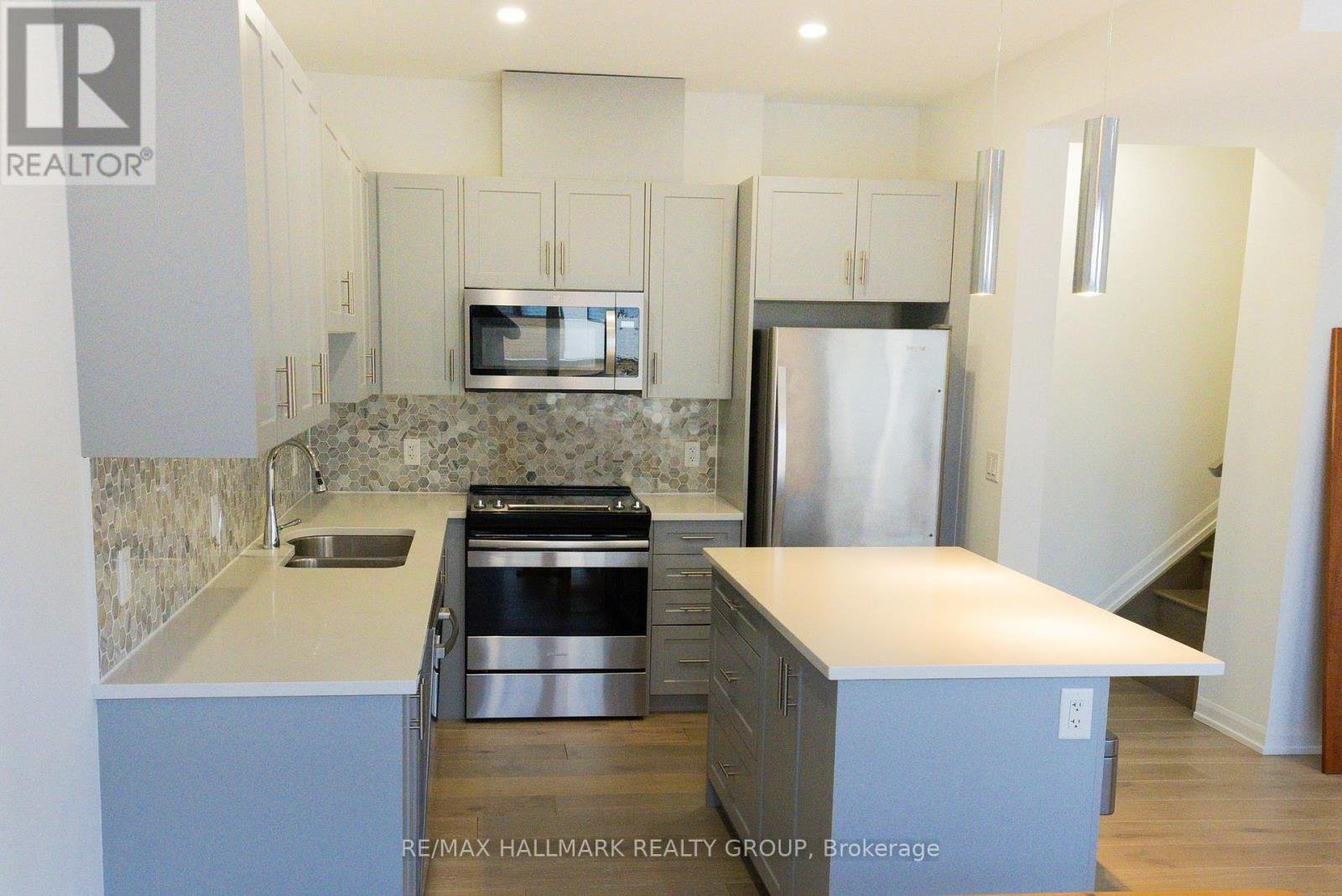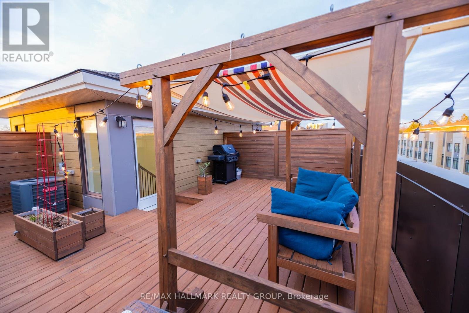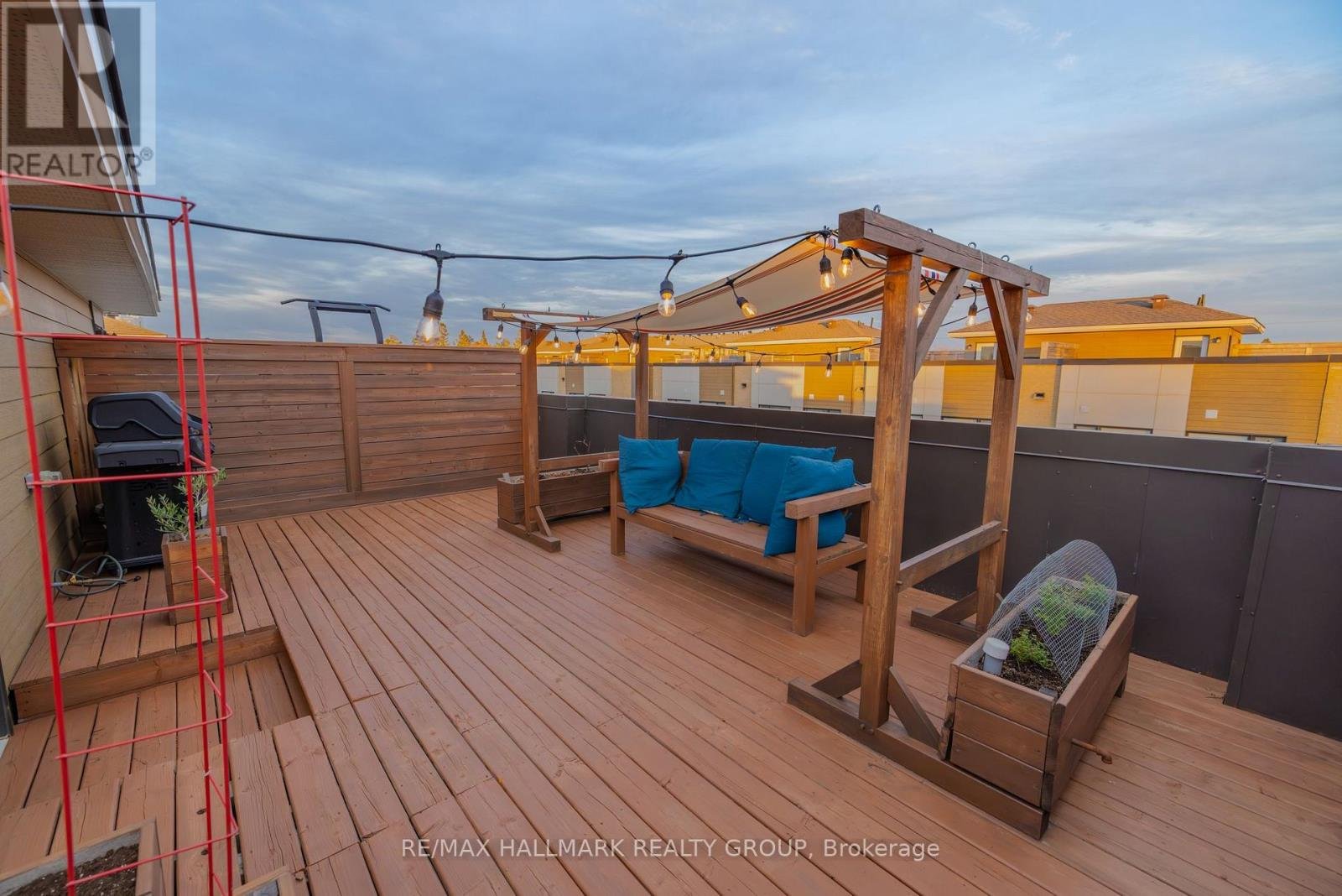 Step into this beautifully maintained 2020-built 3-storey townhome, offering modern finishes, abundant natural sunlight, and exceptional convenience in a prime location. The entry level features a flexible den space along with a full bathroom, perfect for a home office, guest area, or bonus family room.On the second level, enjoy hardwood flooring and a bright, sun-filled open-concept design that seamlessly connects the living room, dining area, and a stylish kitchen complete with a large island, ideal for both everyday living and entertaining. Large windows throughout allow for plenty of natural light, creating a warm and inviting atmosphere.The upper level offers two spacious bedrooms and a full bathroom, providing a comfortable and private retreat. Thoughtfully designed custom closet organization with built-in drawers and hanging systems enhances functionality and storage.One of the home's standout features is the impressive rooftop terrace with a gas hookup, perfect for outdoor dining, summer BBQs, or relaxing evenings.Complete with a 1-car garage equipped with a 30A outlet (240V, 24A), ideal for electric vehicle charging or workshop use, this home is ideally located just minutes to Bayshore Shopping Centre (approx. 8 minutes), Queensway Carleton Hospital (approx. 3 minutes), and the nearby power centre featuring IKEA, Indigo, and more (approx. 2 minutes). Enjoy easy access to major highways, making commuting across the city simple and efficient.POTL fee $121.72 includes snow removal and garbage pickup.