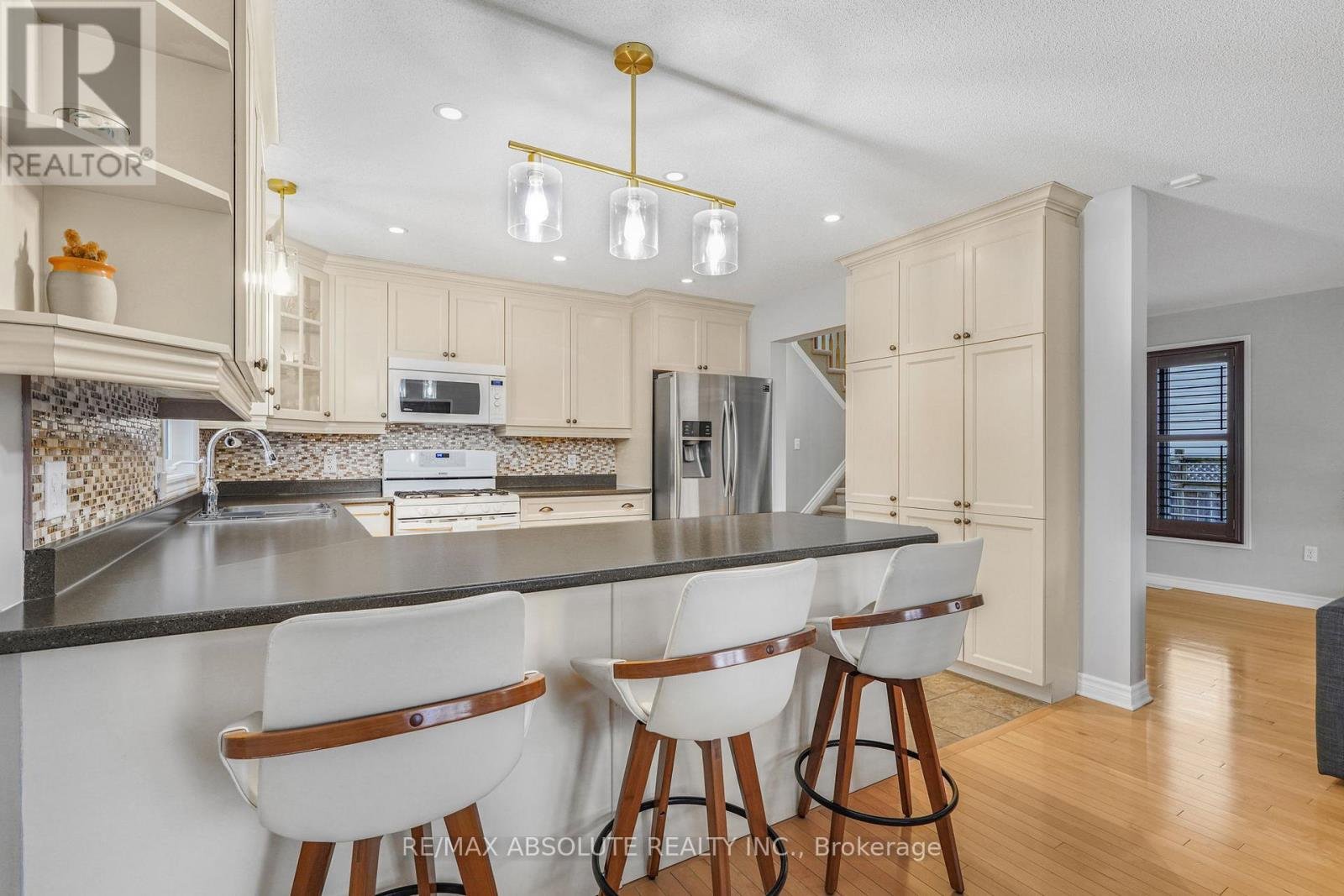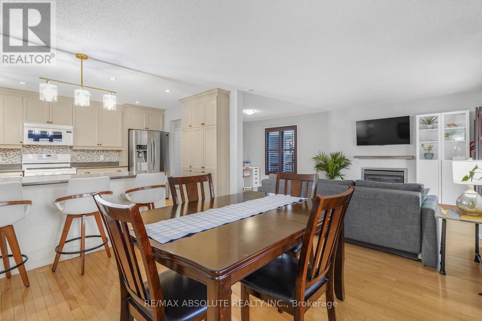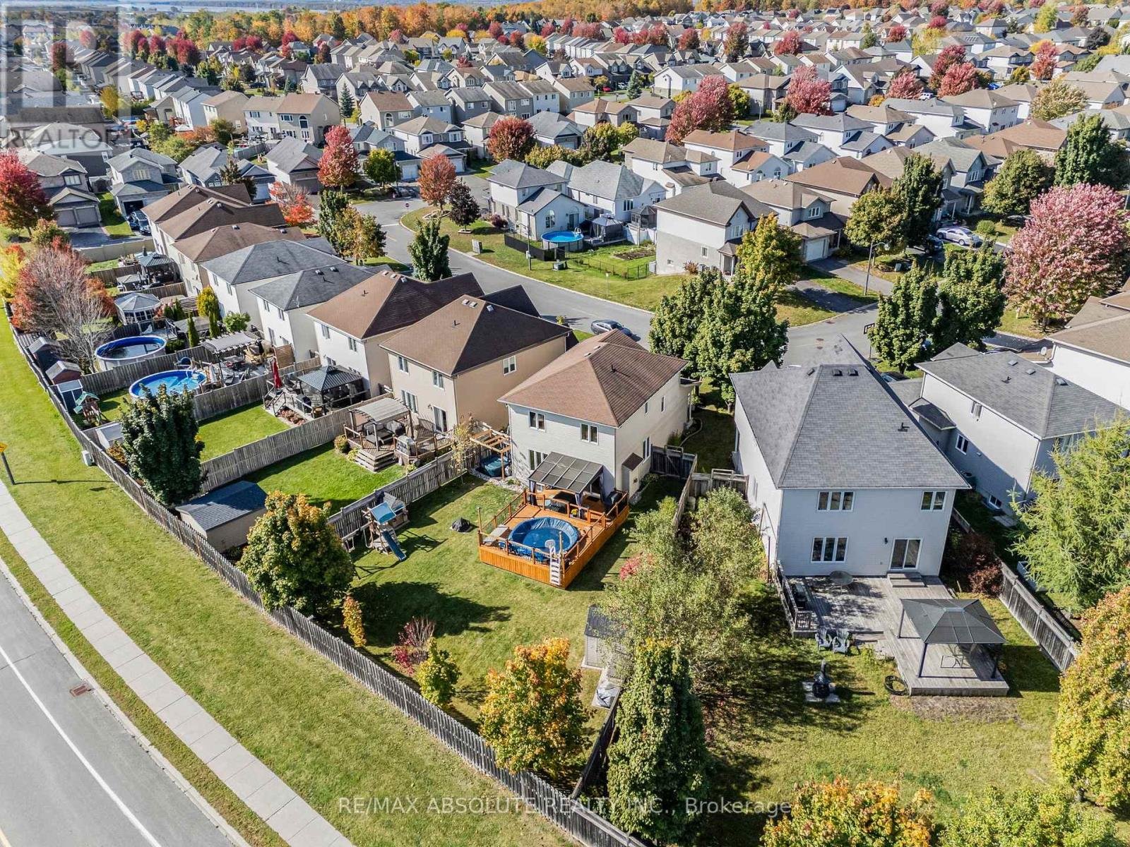 Beautifully maintained 3+1 bedroom family home nestled in the sought-after Morris Village community of Rockland, set on a large pie-shaped lot with no rear neighbours for added privacy. Thoughtfully designed with the perfect balance of modern sophistication and family-friendly comfort, this home offers stylish finishes and functional living spaces throughout. Gorgeous blonde hardwood flooring, neutral tones, custom blinds, and elegant shutters create a warm and inviting atmosphere from the moment you enter. The bright open-concept layout is ideal for everyday family living and entertaining alike. A cozy gas fireplace anchors the living room, adding both charm and comfort. The well-appointed kitchen features timeless cream-coloured cabinetry, a stunning statement backsplash, and a spacious peninsula with breakfast bar seating-perfect for meal preparation and casual dining. Patio doors from the living area provide seamless access to the backyard oasis. Set on one of the largest premium lots in the neighbourhood, the fully fenced backyard offers exceptional privacy and plenty of space to enjoy. Relax on the deck overlooking the beautifully finished yard, complete with a heated 12-foot above-ground pool-perfect for summer entertaining. The second level offers three generous bedrooms, convenient laundry, and a full family bathroom. The spacious primary suite includes a full wall of closet space and a private ensuite bath. The fully finished basement adds impressive versatility with a large recreation room ideal for movie nights, a play area, or home gym, along with a fourth bedroom perfect for guests, a teenager retreat, or home office. An exceptional opportunity to own a stylish and spacious family home in a fantastic community close to parks, schools, shopping, and everyday amenities.
