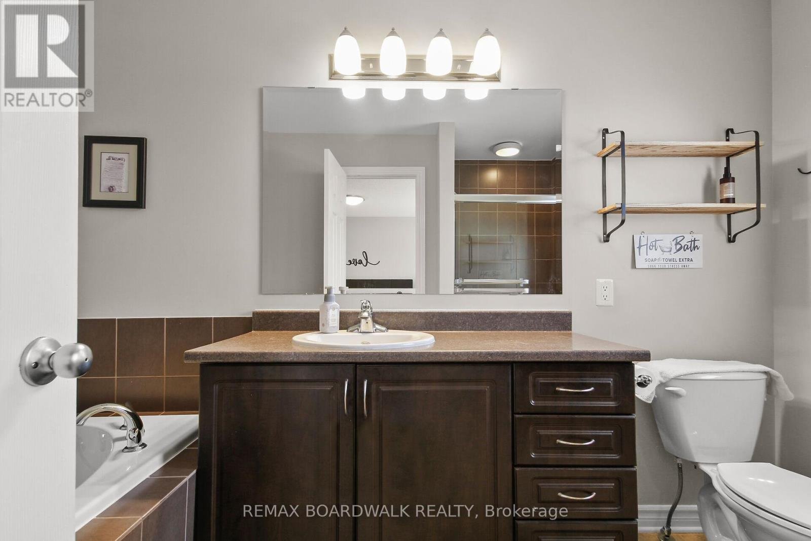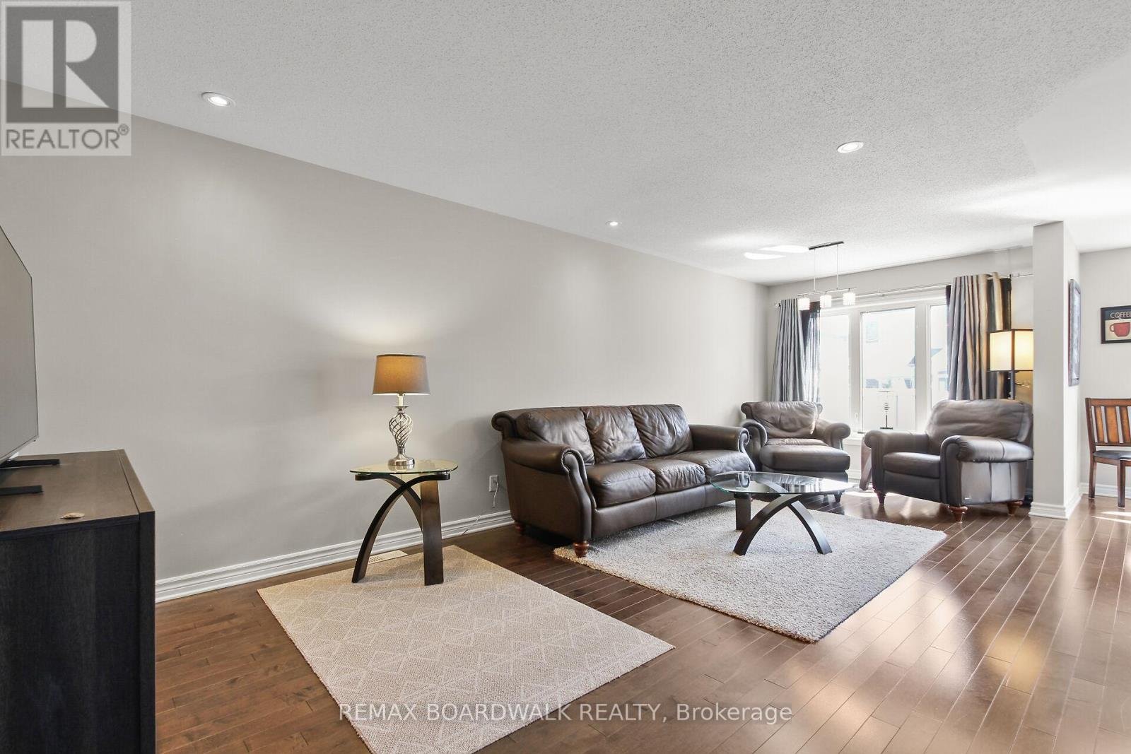 Welcome to this fully fenced, private end-unit townhome in the family-friendly community of Barrhaven. Situated on a good-sized lot with no right of way, this original owner, executive 3-bedroom, 3-bath residence offers many upgrades and thoughtful details throughout.The upgraded front door welcomes you inside to gleaming hardwood floors spanning the main level. The spacious living and dining area is bright and sunny, featuring a large window and an inviting open concept design with an elegant circular staircase. The eat-in kitchen is a chef's delight with crown molding, a designer backsplash, ample cabinetry, and a large island with double sinks and a dishwasher. Completing the main floor is a convenient guest bathroom.Upstairs, the primary bedroom is a peaceful retreat with a generous walk-in closet and a four-piece ensuite bathroom including a separate shower and relaxing soaker tub. Two additional good-sized bedrooms and another four-piece bathroom with a linen closet complete the upper level.The professionally finished lower level is bright and spacious, with a gas fireplace and upgraded flooring enhancing the large recreation room. A combined utility and laundry area plus a separate storage space add extra functionality.Additional features include fresh paint in 2026, central air conditioning, custom blinds, and an extended driveway allowing side-by-side parking. Both front and back yards boast custom interlock, perfect for outdoor enjoyment.This executive home combines comfort, style, and practicality in a sought-after neighborhood. Don't miss this opportunity! Property taxes to be verified.