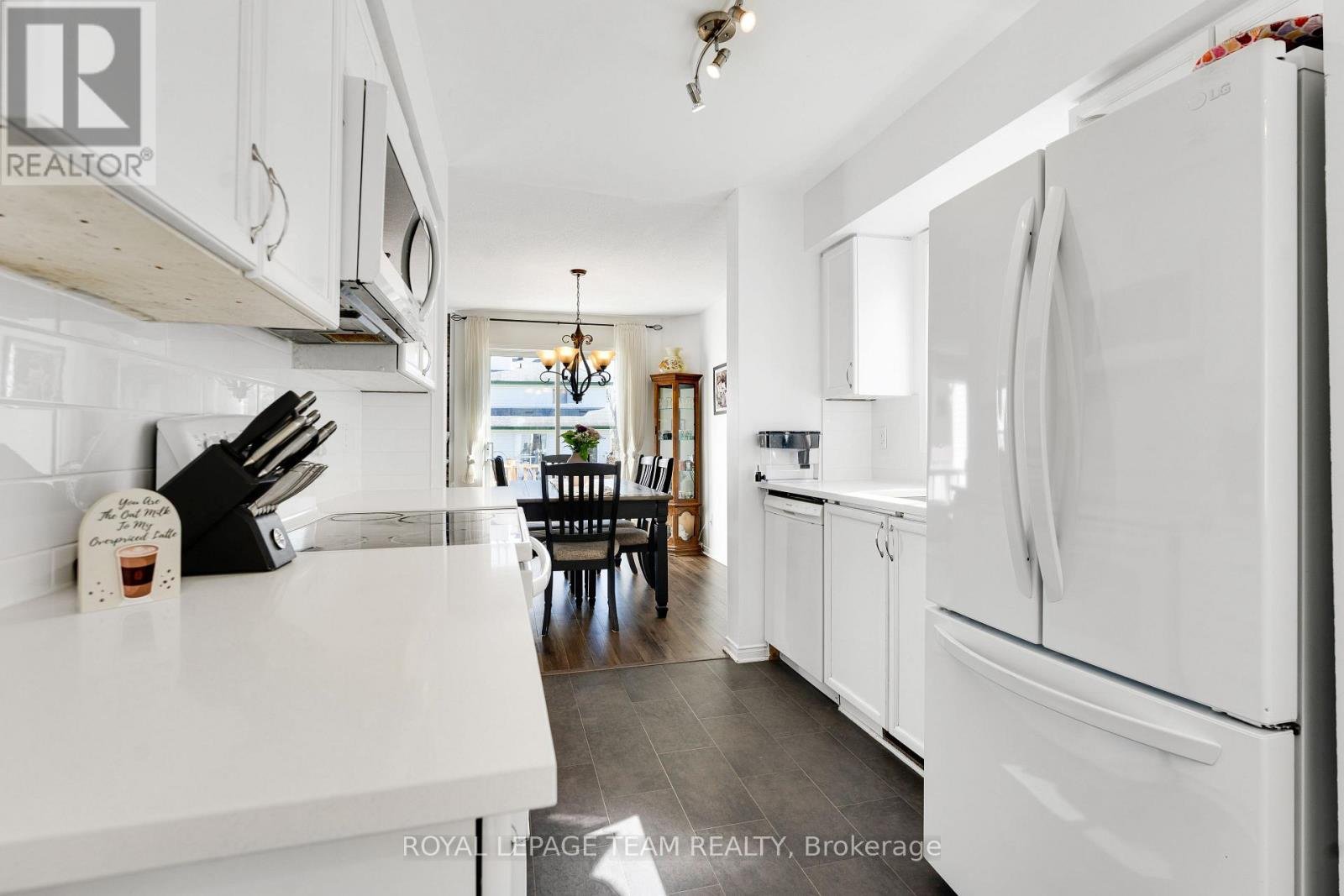 Welcome to easy living in the heart of Kemptville, this beautifully updated end-unit townhome is tucked away on a quiet cul-de-sac and offers the rare bonus of four parking spaces in the paved driveway. With a walk-everywhere lifestyle and trails, shops, and everyday conveniences just minutes away. Start your tour on the charming front porch, the perfect spot for morning coffee or unwinding at the end of the day. Step inside to a completely renovated and freshly painted interior that feels bright, modern, and move-in ready.The kitchen is both stylish and functional, featuring quartz countertops, a modern backsplash, new laminate flooring, an updated sink and fixtures (all updated 2025), newer appliances, and a bonus cozy eating nook. From here, the space flows effortlessly into the inviting living and dining rooms, where an upgraded stone gas fireplace creates a warm focal point. Patio doors lead to a tiered deck and fully fenced backyard, ideal for entertaining,relaxing, or letting kids and pets play freely.The main level also offers a thoughtfully updated powder room with new vanity and fixtures and a separate laundry room for added convenience. Upstairs, berber-carpeted stairs lead to a level finished with laminate flooring throughout.The primary bedroom includes a walk-in closet, while two additional bedrooms offer great size and ample storage. A 4-piece bathroom with ceramic tile flooring and a tub/shower combo serves this level, along with a handy office nook on the landing, perfect for working from home or homework time! The fully finished lower level adds even more living space, featuring a large recreation room with cozy berber carpet, oversized above-grade windows that flood the space with natural light, and a newly added bathroom-ideal for guests or growing families. Located close to the beautiful Ferguson Forest Centre trails and dog park, plus shopping and everyday amenities, this turnkey home offers the perfect blend of comfort, style, and convenience!