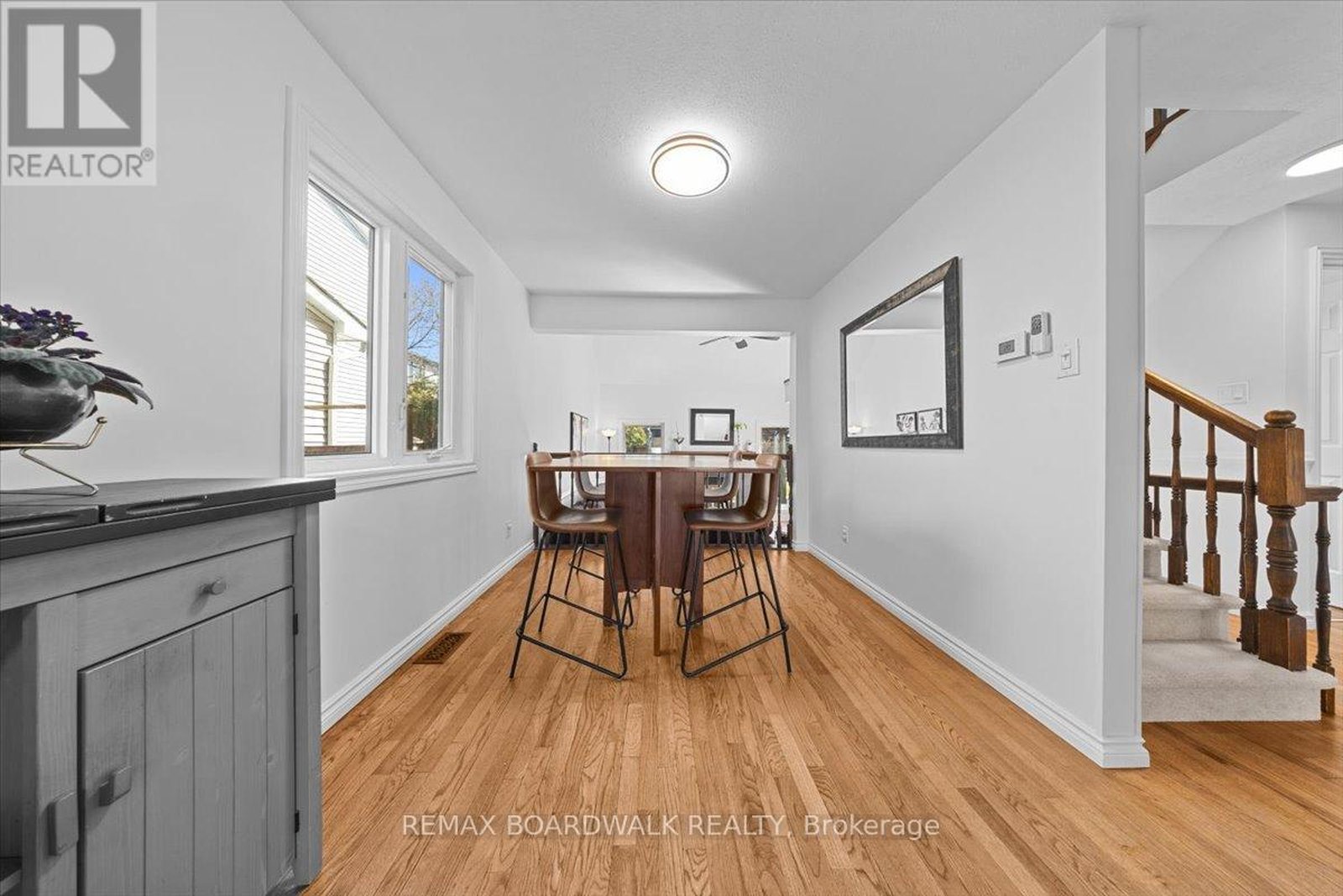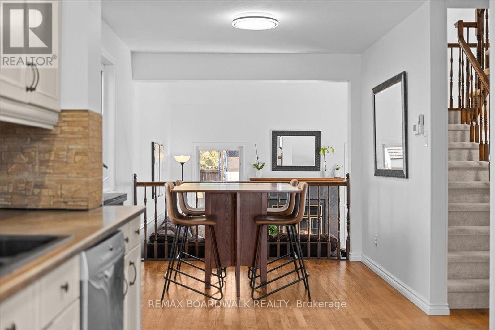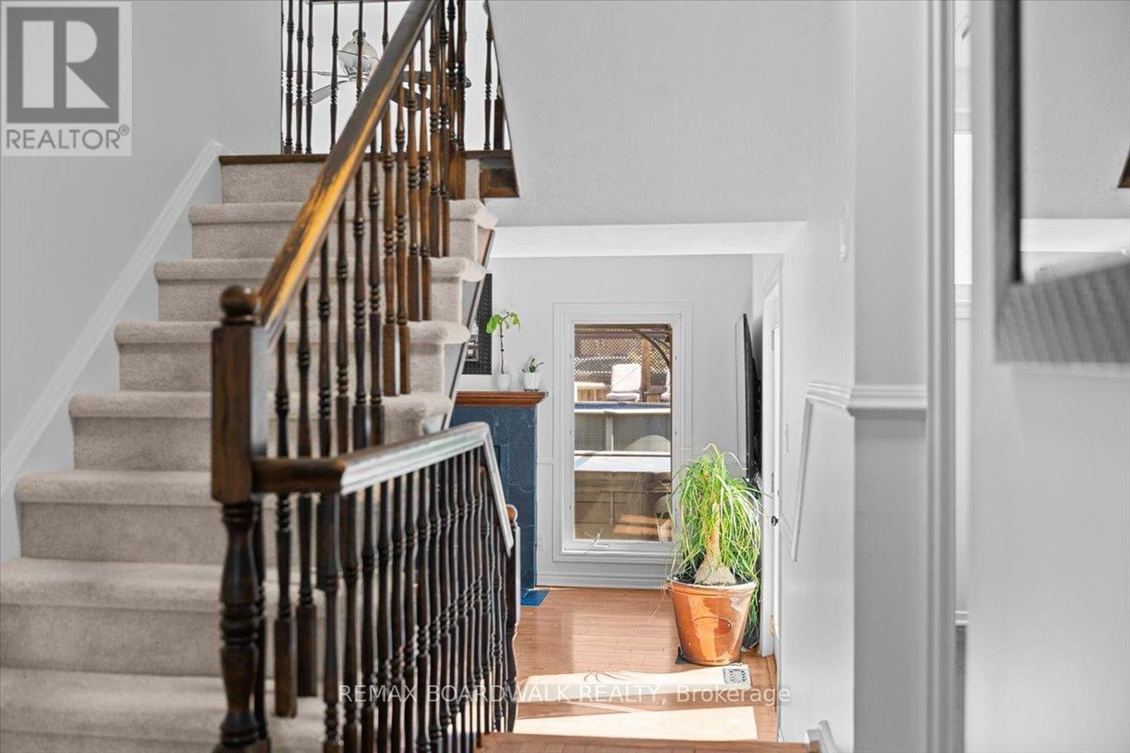 Set in the well-established community of Chapel Hill North, this beautifully maintained single-family home offers timeless curb appeal and a thoughtfully designed layout. A classic brick façade, interlock walkway, and covered front porch create a warm and inviting first impression, ideal for enjoying quiet outdoor moments. Inside, the functional main floor features a well-appointed kitchen with ample cabinetry and counter space, stainless steel appliances, pot lighting, and an elegant tray ceiling. The adjoining dining area showcases hardwood flooring and large windows that fill the space with natural light. Just beyond, the inviting sunken living room is anchored by a cozy wood-burning fireplace with a stone surround, complemented by soaring vaulted ceilings and patio doors that lead to the backyard. A convenient side entrance provides access to a practical mudroom and main floor laundry, while a powder room and interior access to the garage complete this level. Upstairs, you'll find three well-proportioned bedrooms, including a spacious primary suite with a walk-in closet and private 2-piece ensuite. A full 4-piece bathroom with a generous vanity completes the second level. The fully finished lower level extends the living space with a comfortable rec room, a modern full bathroom featuring a glass shower, and ample storage. Step outside to a private, fully fenced backyard designed for summer enjoyment, featuring a large deck, above-ground pool, and a covered gazebo/lounge area ideal for entertaining. A storage shed adds everyday convenience. Ideally located close to schools, parks, trails, and everyday amenities, this home offers comfort, function, and location. 24 Hour Irrevocable