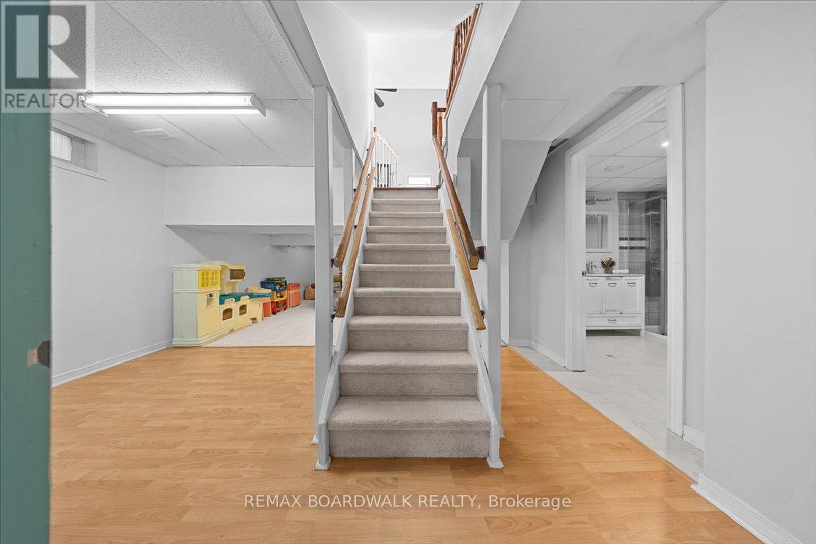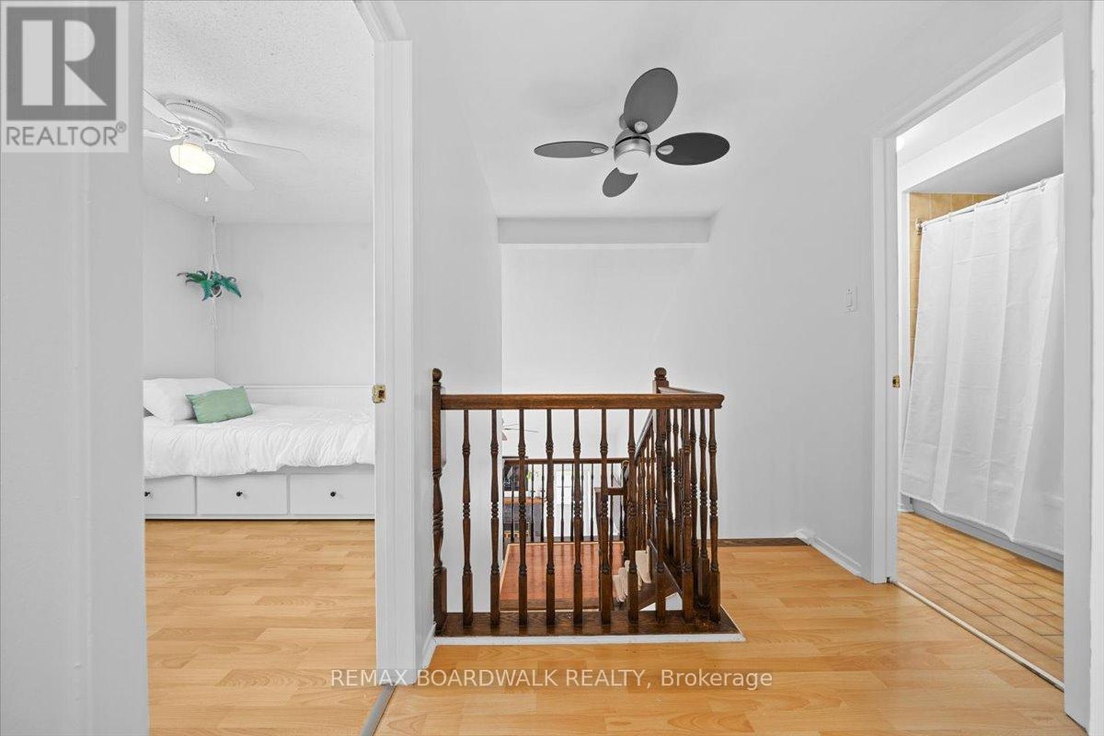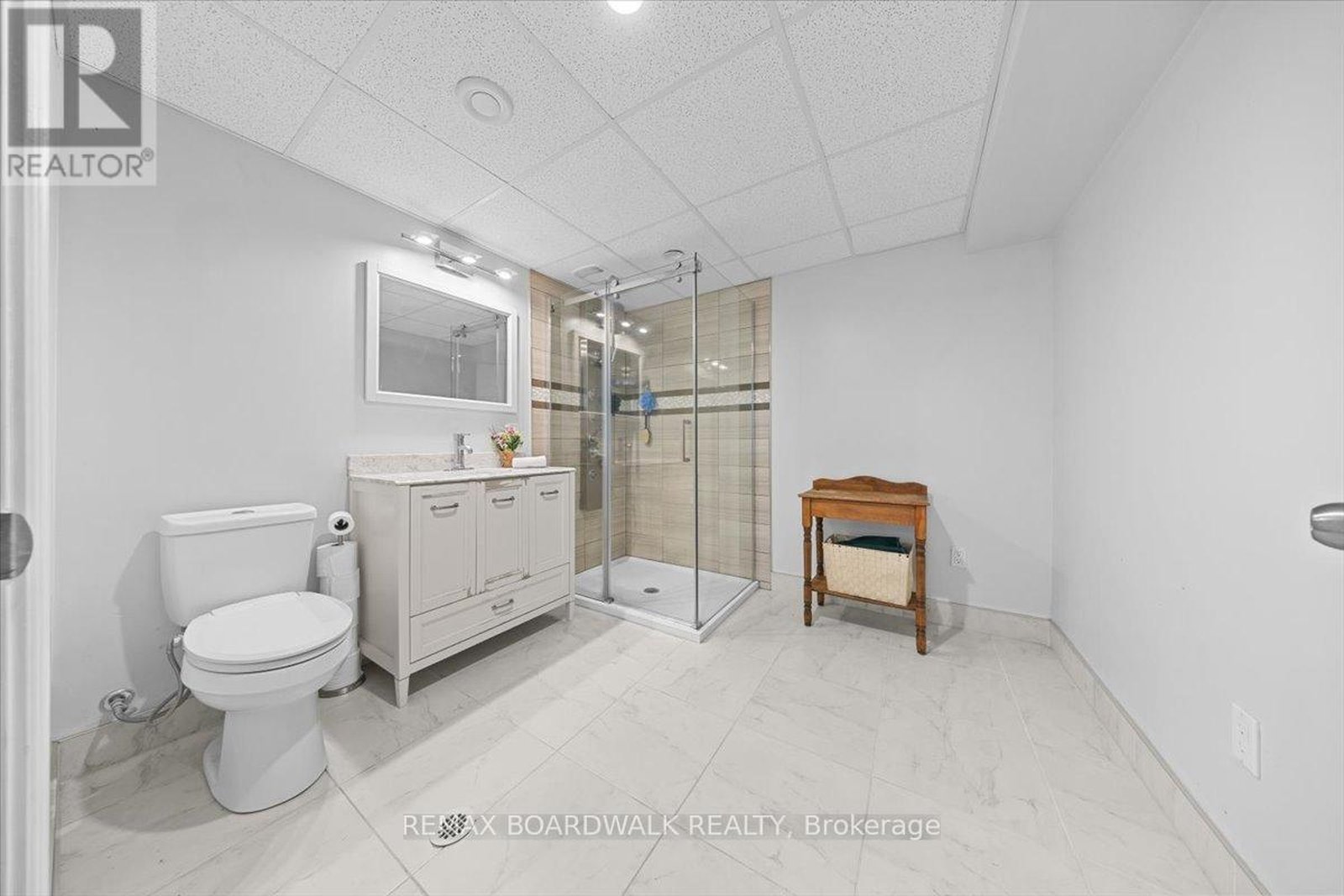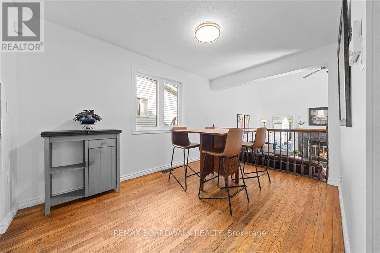 Set in the well-established community of Chapel Hill North, this beautifully maintained single-family home offers timeless curb appeal and a thoughtfully designed layout. A classic brick façade, interlock walkway, and covered front porch create a warm and inviting first impression, ideal for enjoying quiet outdoor moments. Inside, the functional main floor features a well-appointed kitchen with ample cabinetry and counter space, stainless steel appliances, pot lighting, and an elegant tray ceiling. The adjoining dining area showcases hardwood flooring and large windows that fill the space with natural light. Just beyond, the inviting sunken living room is anchored by a cozy wood-burning fireplace with a stone surround, complemented by soaring vaulted ceilings and patio doors that lead to the backyard. A convenient side entrance provides access to a practical mudroom and main floor laundry, while a powder room and interior access to the garage complete this level. Upstairs, you'll find three well-proportioned bedrooms, including a spacious primary suite with a walk-in closet and private 2-piece ensuite. A full 4-piece bathroom with a generous vanity completes the second level. The fully finished lower level extends the living space with a comfortable rec room, a modern full bathroom featuring a glass shower, and ample storage. Step outside to a private, fully fenced backyard designed for summer enjoyment, featuring a large deck, above-ground pool, and a covered gazebo/lounge area ideal for entertaining. A storage shed adds everyday convenience. Ideally located close to schools, parks, trails, and everyday amenities, this home offers comfort, function, and location. 24 Hour Irrevocable