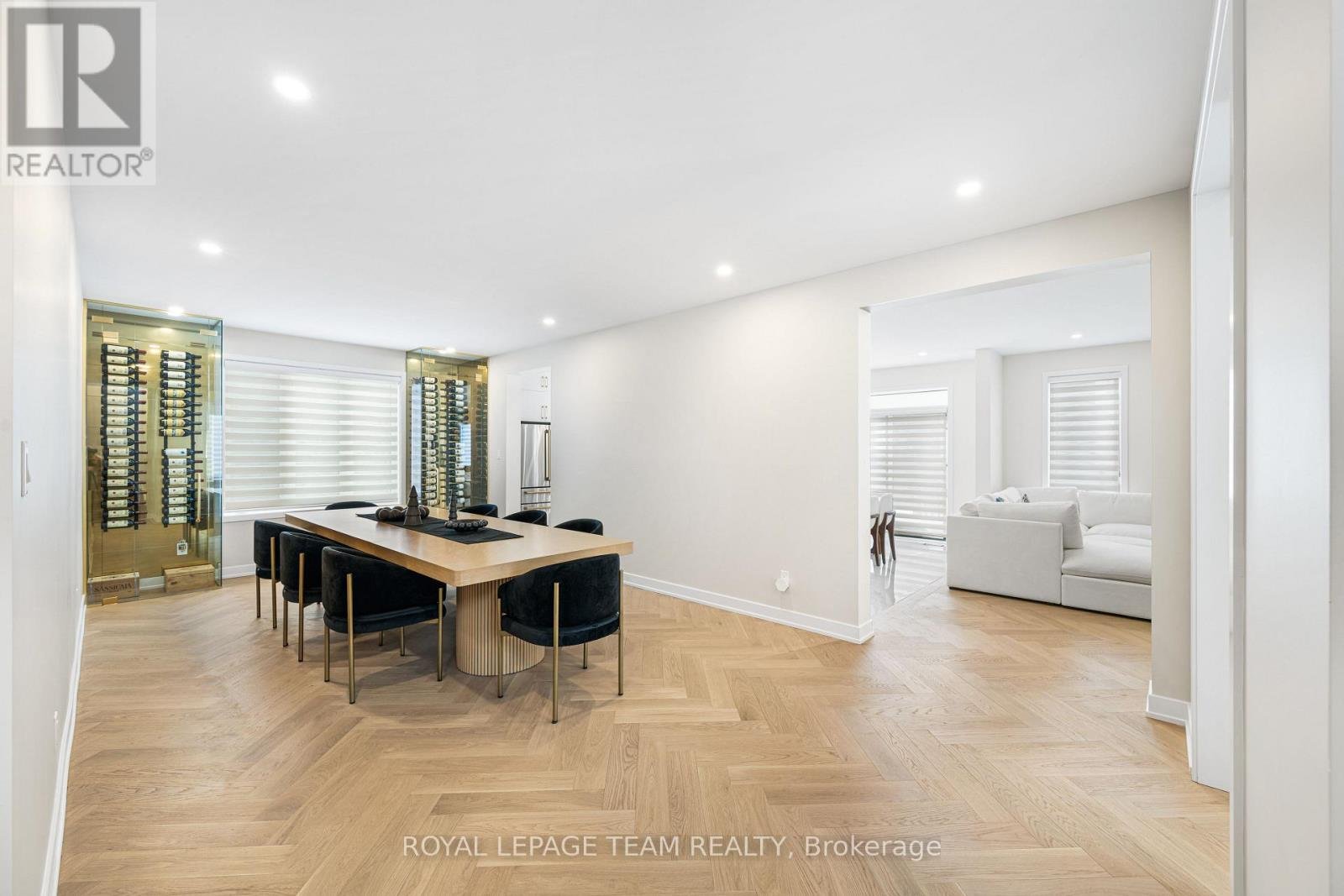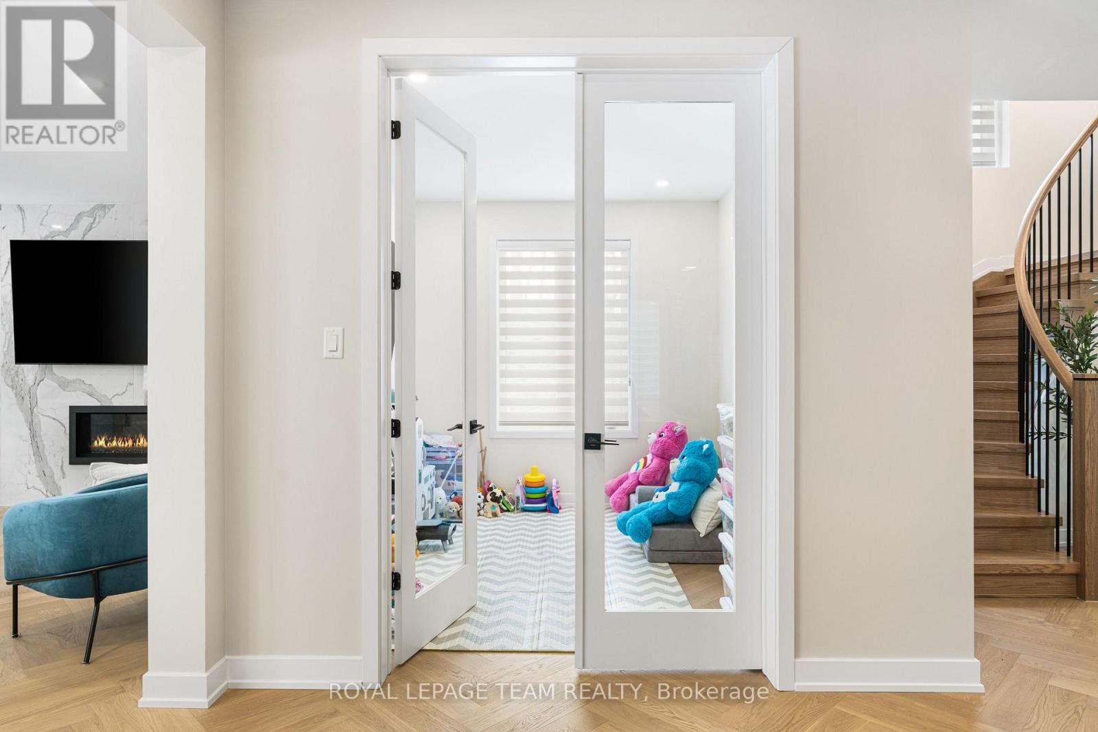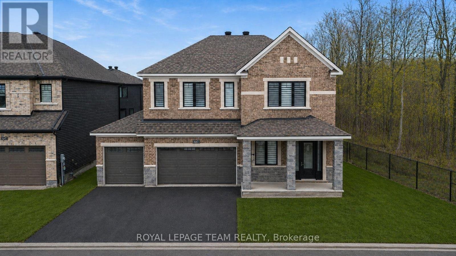 Welcome to 649 Bridgeport Avenue, a stunning newly built home with many homeowner upgrades. This Minto home is in the prestigious Mahogany community of Manotick, where luxury meets thoughtful design. Offering over 4,800 sq ft of finished living space, this residence is defined by upscale finishes and striking architectural details throughout. From the moment you step inside, you're greeted by soaring 9' ceilings, 8' doors, and a breathtaking curved staircase that extends to the ceiling. Elegant herringbone hardwood flooring flows seamlessly across the main and upper levels, leading into a show-stopping living space anchored by a dramatic floor-to-ceiling slab fireplace. The designer kitchen is equally impressive, featuring premium Café appliances, quartz countertops with a waterfall island, a quartz backsplash, upgraded cabinetry, and a sleek chimney hood fan. Designed for both everyday living and entertaining, the home showcases a refined dining area with twin floor-to-ceiling glass wine cellars and a seamless flow of luxurious finishes. Upstairs, the primary suite offers a spa-inspired retreat with floor-to-ceiling tile, a glass-enclosed shower, and elevated finishes, while additional bathrooms feature oversized designer tile selections. A fully finished basement provides expansive additional living space, perfect for recreation or extended family. The exterior is equally impressive with full stone columns and a rare 3-car garage on a premium lot. With pot lights throughout, upgraded paint, hardware, and quartz surfaces in all bathrooms, every detail has been carefully considered-delivering a true turnkey luxury lifestyle in one of Ottawa's most sought-after communities.
