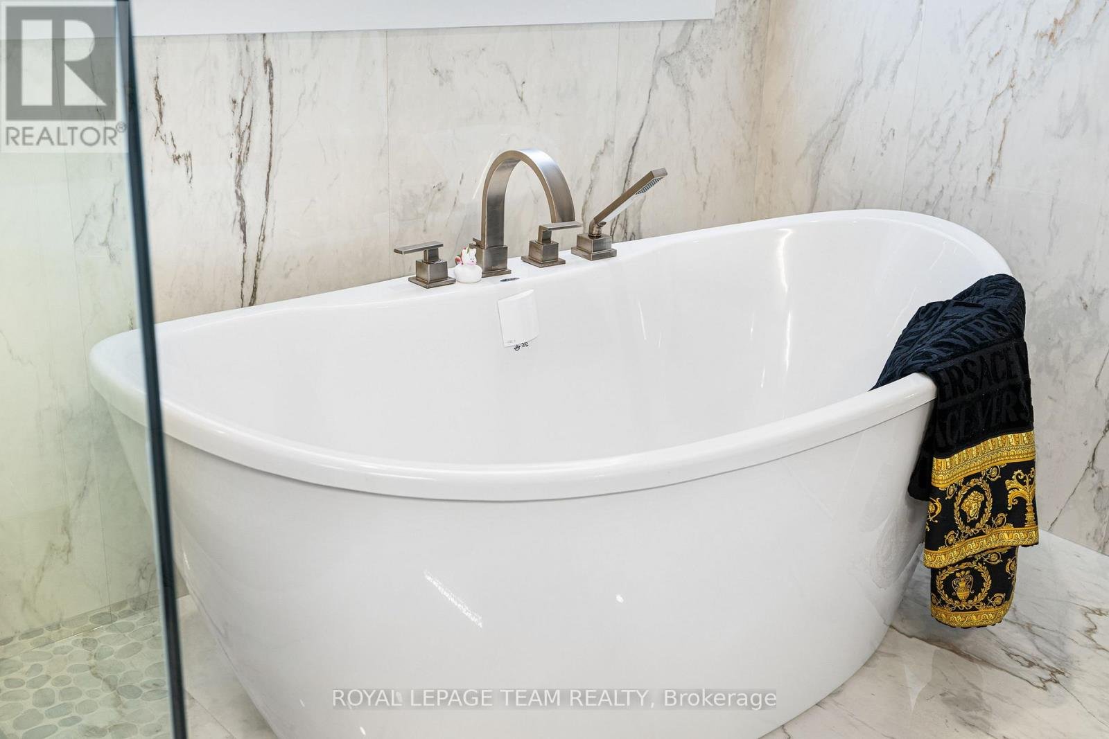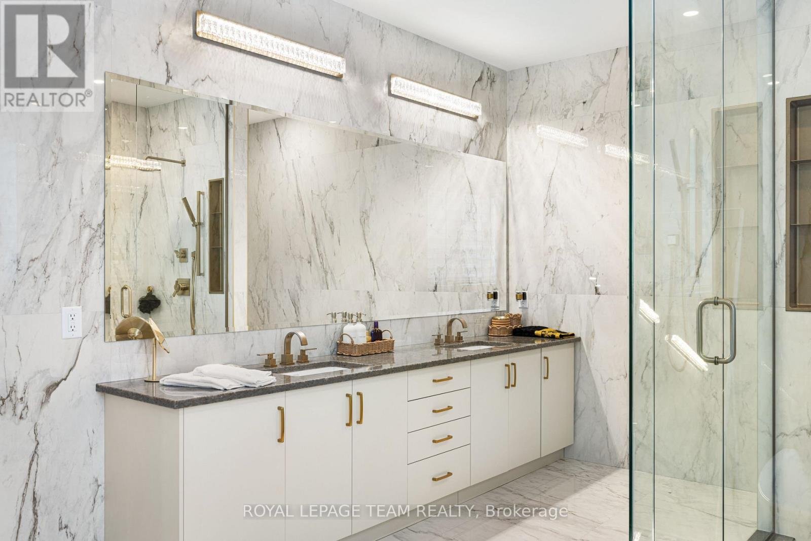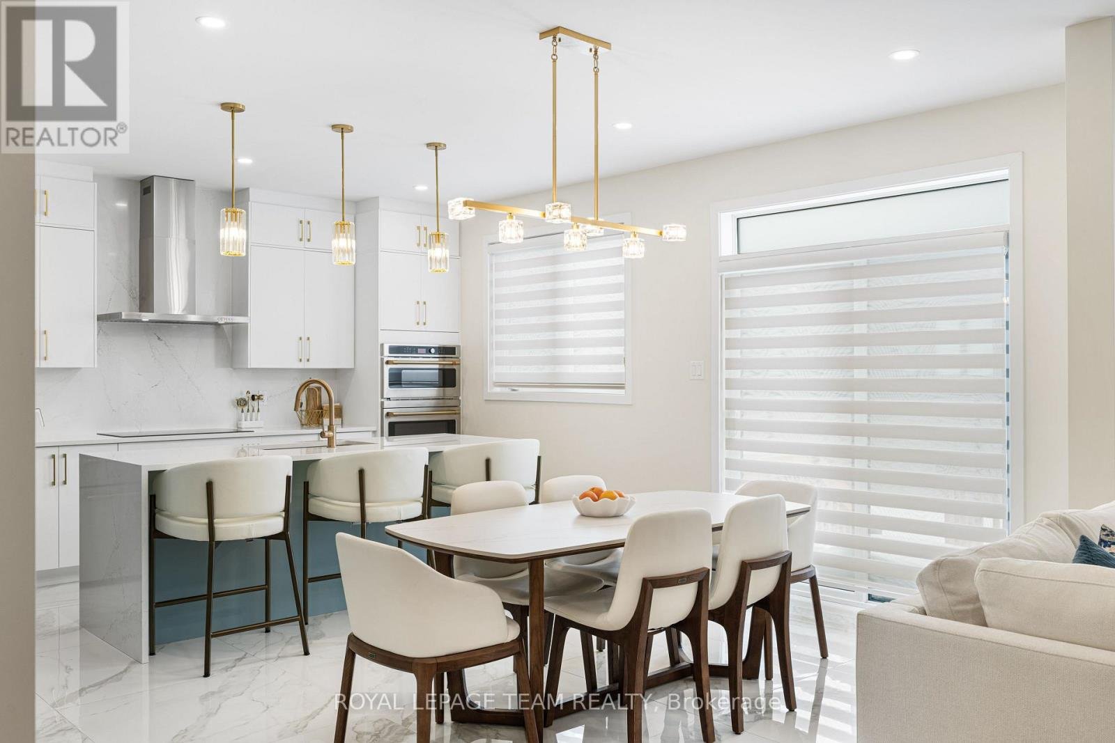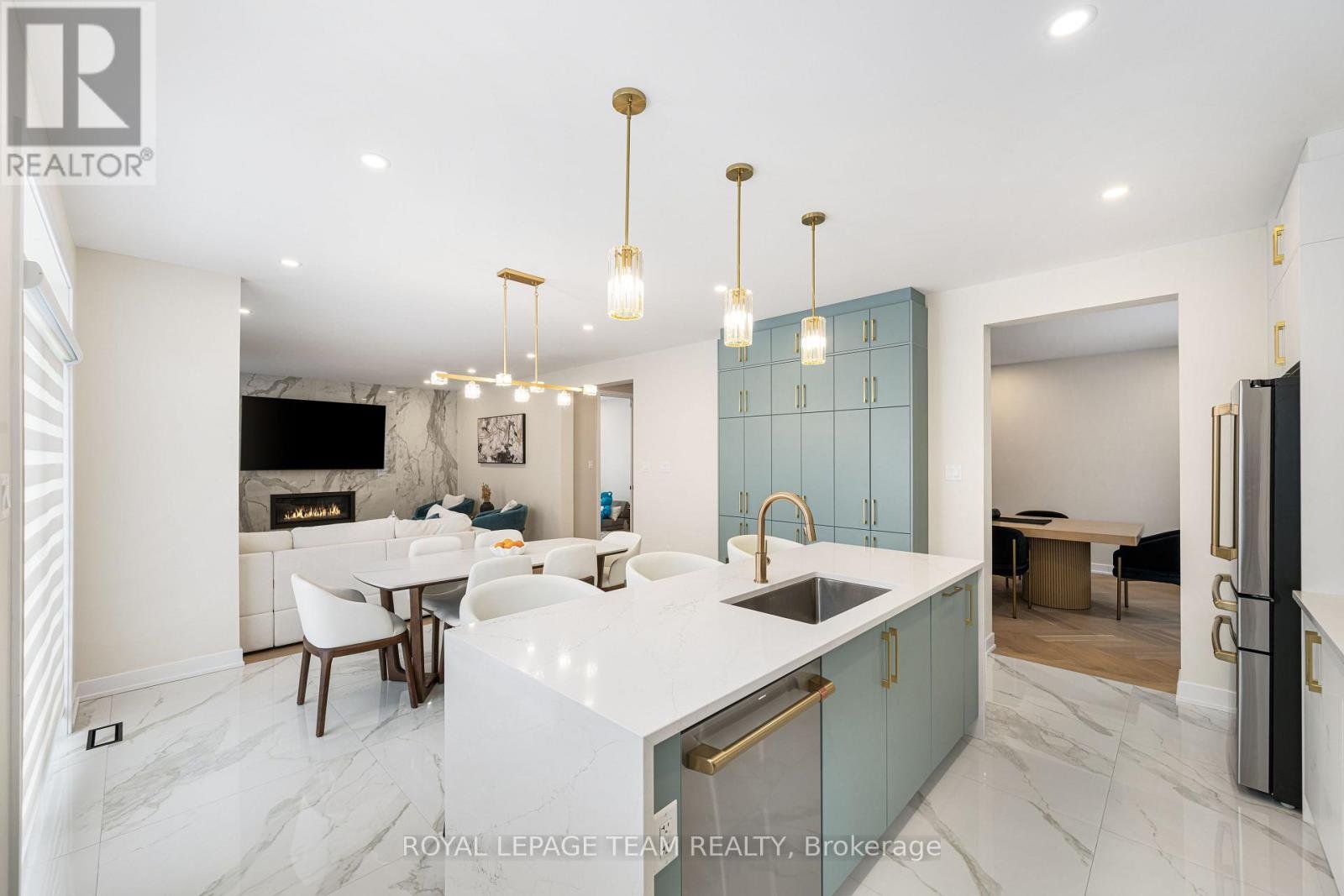 Welcome to 649 Bridgeport Avenue, a stunning newly built home with many homeowner upgrades. This Minto home is in the prestigious Mahogany community of Manotick, where luxury meets thoughtful design. Offering over 4,800 sq ft of finished living space, this residence is defined by upscale finishes and striking architectural details throughout. From the moment you step inside, you're greeted by soaring 9' ceilings, 8' doors, and a breathtaking curved staircase that extends to the ceiling. Elegant herringbone hardwood flooring flows seamlessly across the main and upper levels, leading into a show-stopping living space anchored by a dramatic floor-to-ceiling slab fireplace. The designer kitchen is equally impressive, featuring premium Café appliances, quartz countertops with a waterfall island, a quartz backsplash, upgraded cabinetry, and a sleek chimney hood fan. Designed for both everyday living and entertaining, the home showcases a refined dining area with twin floor-to-ceiling glass wine cellars and a seamless flow of luxurious finishes. Upstairs, the primary suite offers a spa-inspired retreat with floor-to-ceiling tile, a glass-enclosed shower, and elevated finishes, while additional bathrooms feature oversized designer tile selections. A fully finished basement provides expansive additional living space, perfect for recreation or extended family. The exterior is equally impressive with full stone columns and a rare 3-car garage on a premium lot. With pot lights throughout, upgraded paint, hardware, and quartz surfaces in all bathrooms, every detail has been carefully considered-delivering a true turnkey luxury lifestyle in one of Ottawa's most sought-after communities.