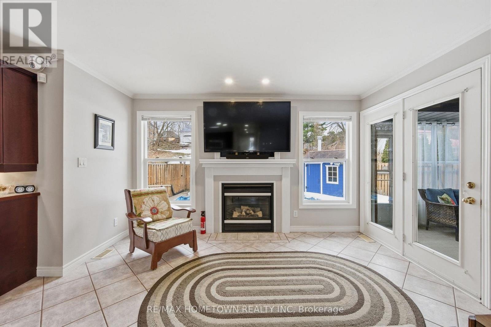 Welcome to 125 Butlers Crescent, a beautifully maintained end-unit home located on one of Brockville's most sought-after streets. Offering the perfect balance of comfort, functionality & lifestyle, this inviting property is ideal for downsizers, retirees, or families seeking flexible living space in a prime location. The main level features convenient carpet-free living with a bright open-concept layout connecting the kitchen, dining & living areas. The kitchen showcases rich cherry cabinetry and Corian countertops, while the inviting living room is anchored by a natural gas fireplace, creating a warm and welcoming space. A major highlight of this home is the main-floor primary bedroom featuring new waterproof laminate flooring with a luxurious 4-piece ensuite. This thoughtful layout makes the home especially appealing for those seeking main-level living or mobility-friendly design. Additional main-floor spaces include a versatile den-perfect for a home office w/ French doors, a convenient powder room, and a stunning 3-season sunroom that provides a peaceful retreat overlooking the backyard. The fully finished lower level expands the living space with two generously sized bedrooms, a full 4-piece bathroom, a large recreation room with a second natural gas fireplace, laundry/utility area, and ample storage. Step outside to your private backyard oasis. The fully fenced yard features a beautiful kidney-shaped in-ground pool and spacious patio area, creating the perfect setting for summer relaxation and entertaining. Ideally located just minutes from the St. Lawrence River, the Brock Trail, Swift Waters Elementary School, and the Brockville Country Club, this home offers the perfect combination of peaceful neighbourhood living and convenient access to recreation and amenities. Complete with an attached car garage, this property offers comfort, space, and lifestyle in one of Brockville's most desirable neighbourhoods. Don't miss this unique opportunity!