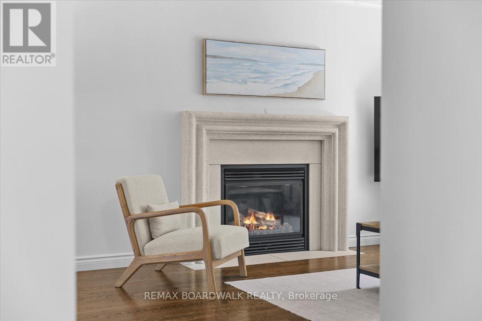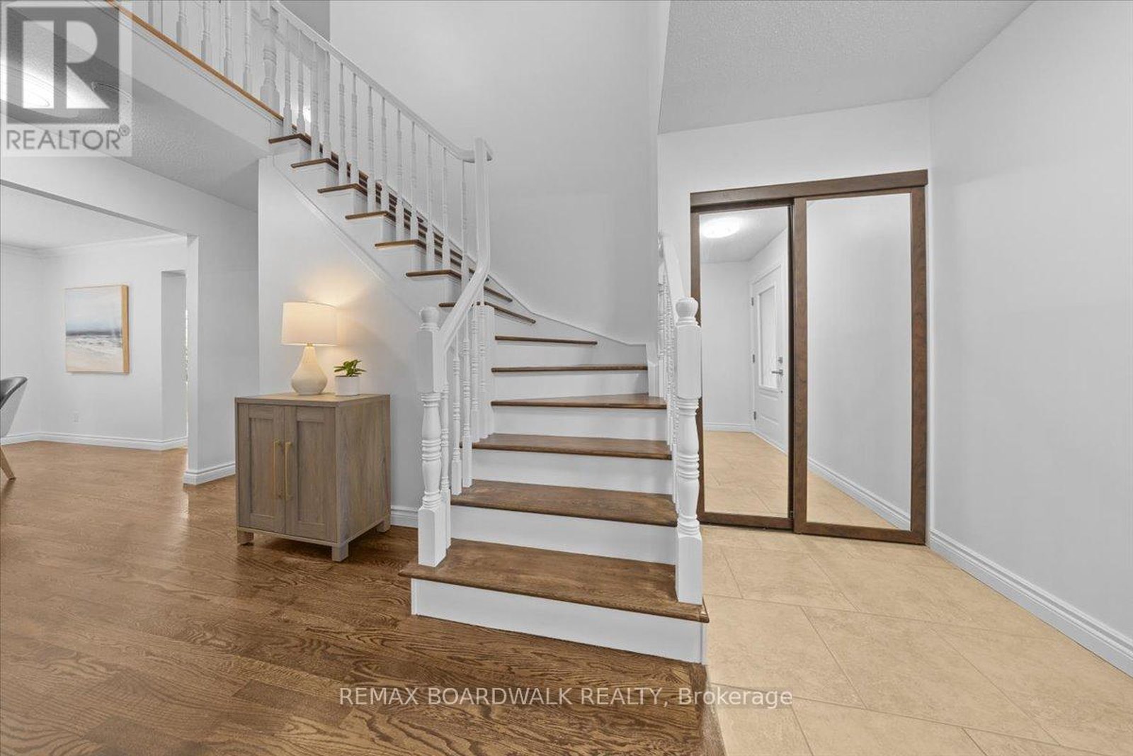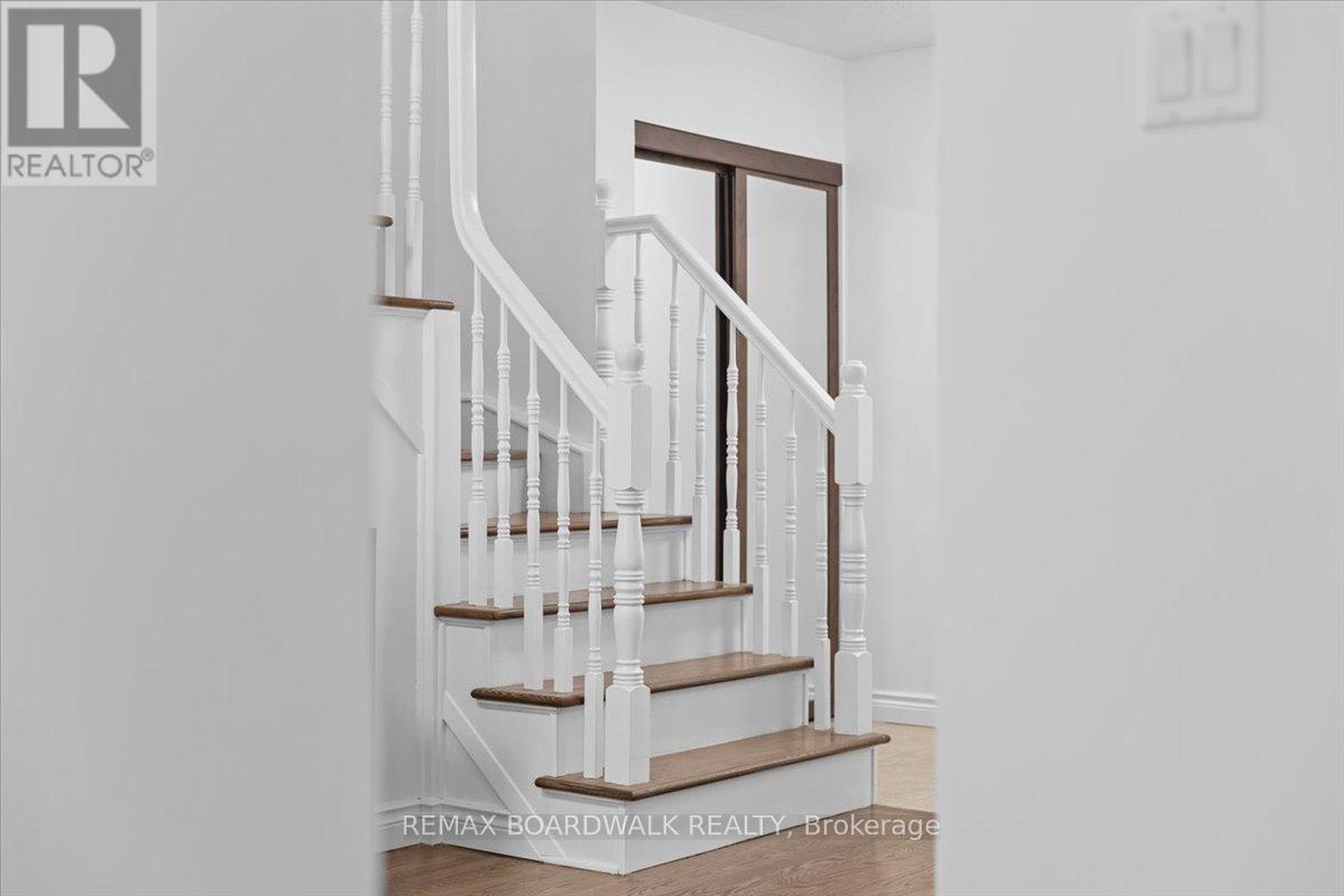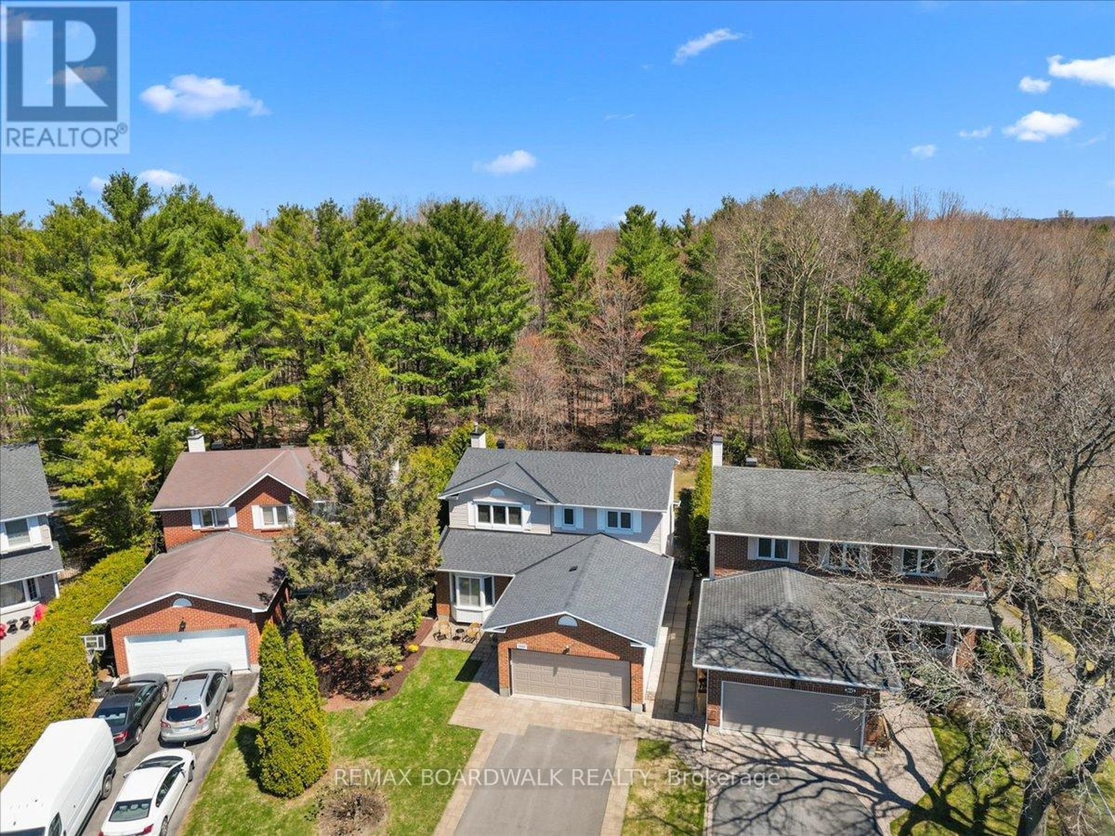 Tucked away in a quiet, mature neighbourhood, this exceptional home offers NO REAR NEIGHBOURS and a stunning treed backdrop creating a private, nature-filled setting. Interlock front walkway and surrounding driveway set the tone for the pride of ownership throughout. Step inside to front entrance with tiled flooring that seamlessly transitions into rich hardwood. The layout immediately draws your eye straight through to the serene backyard views. A striking two-tone staircase adds character, while the traditional dining room provides the perfect space for hosting. The extended living area is warm and welcoming, complete with a natural gas fireplace and flooded with natural sunlight. The modern kitchen is timeless, featuring granite countertops, square-tiled backsplash, stainless steel appliances, ample cabinetry, shelving and upgraded overhead lighting. Sliding patio doors offer direct access to the backyard while showcasing peaceful views. Conveniently located off the kitchen is the main flr laundry area, a tucked-away 2-piece powder rm, and inside entry to the dble car garage. Upstairs hardwd flooring continues to 3 spacious bedrms. The updated 4-piece main bath includes a quartz vanity (2026) with sleek horizontal tile. The generous primary bdrm features a deep walk-in closet and a private 3-piece ensuite with tile flooring, a standalone tiled shower, and a heated towel rack for added comfort. The finished basement expands your living space with a large open recreation room, offering endless flexibility for family living, a home gym, or entertainment. Step outside to a truly rare backyard retreat. Enjoy a composite deck, gazebo, flagstone landscaping, and river rock accents, all framed by privacy hedges and backed by natural greenery, your own private escape. Ideally located close to all major amenities, top schools, walking paths, parks, and recreation. HWT (2023), Furnace (2010), A/C (2012), Stove (2024), Dishwasher (2025), Roof (2025), Electrical Panel (2026).