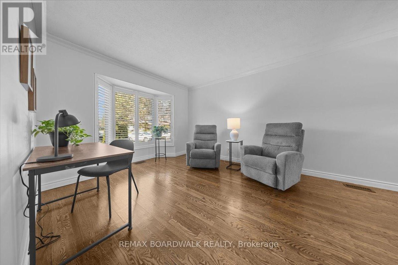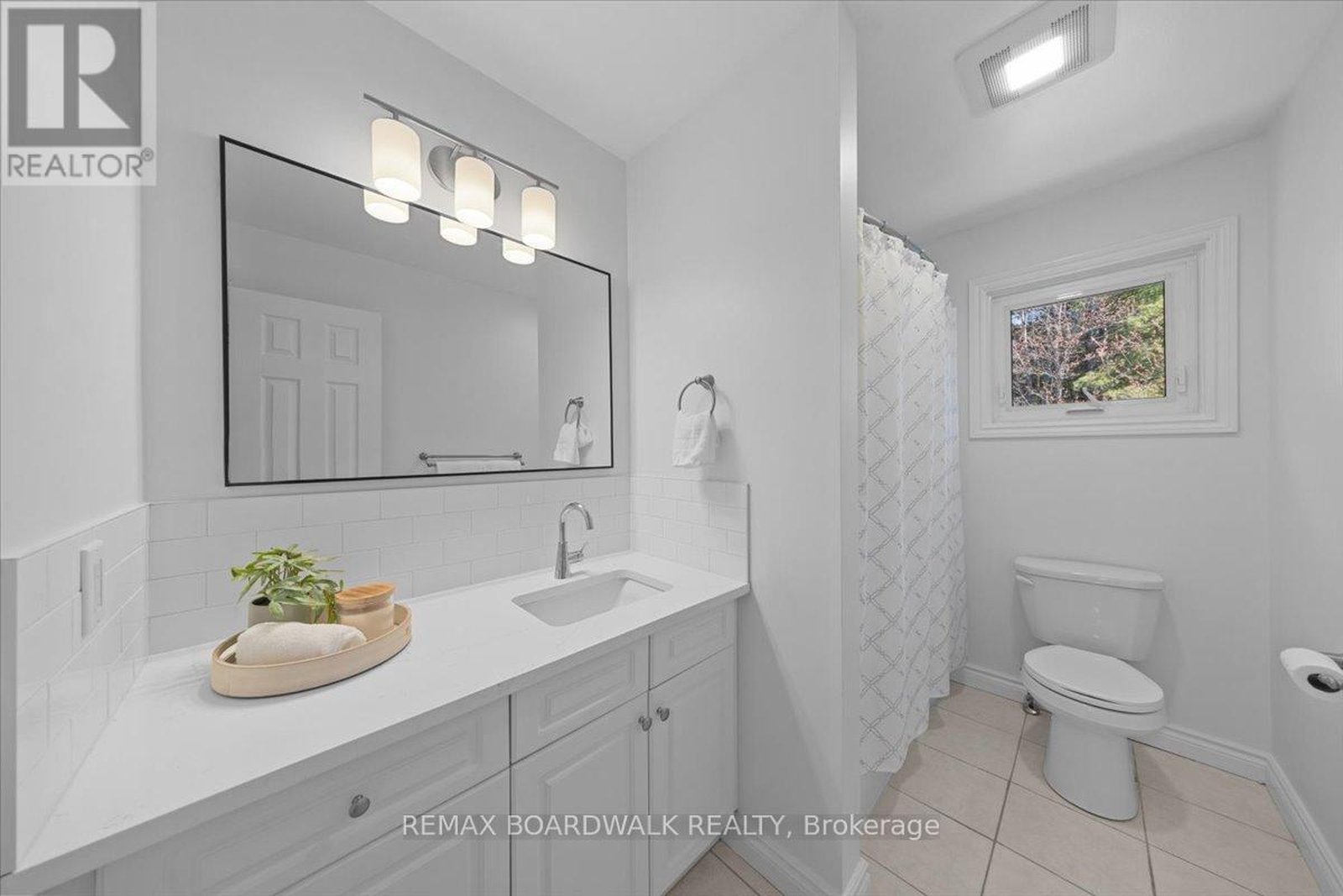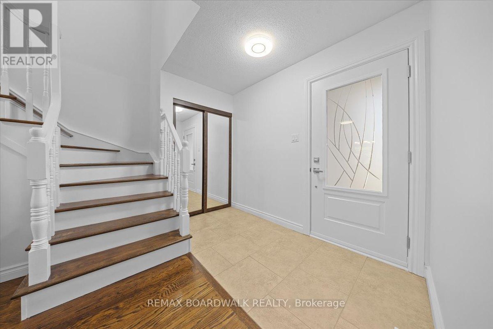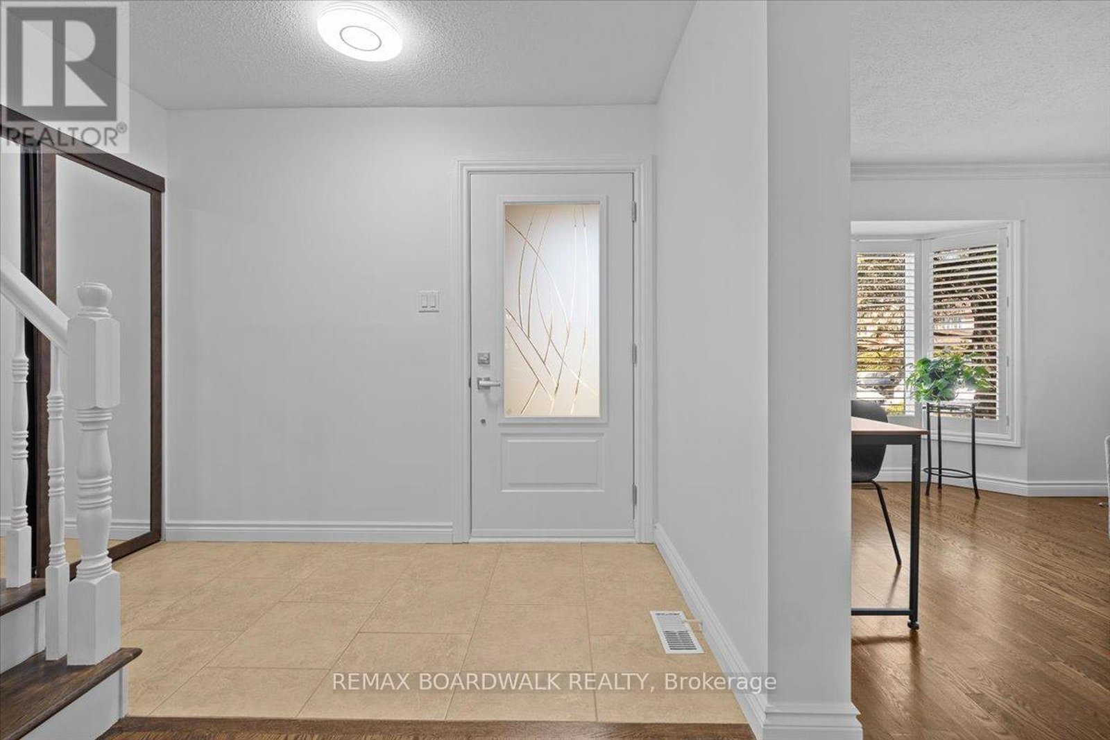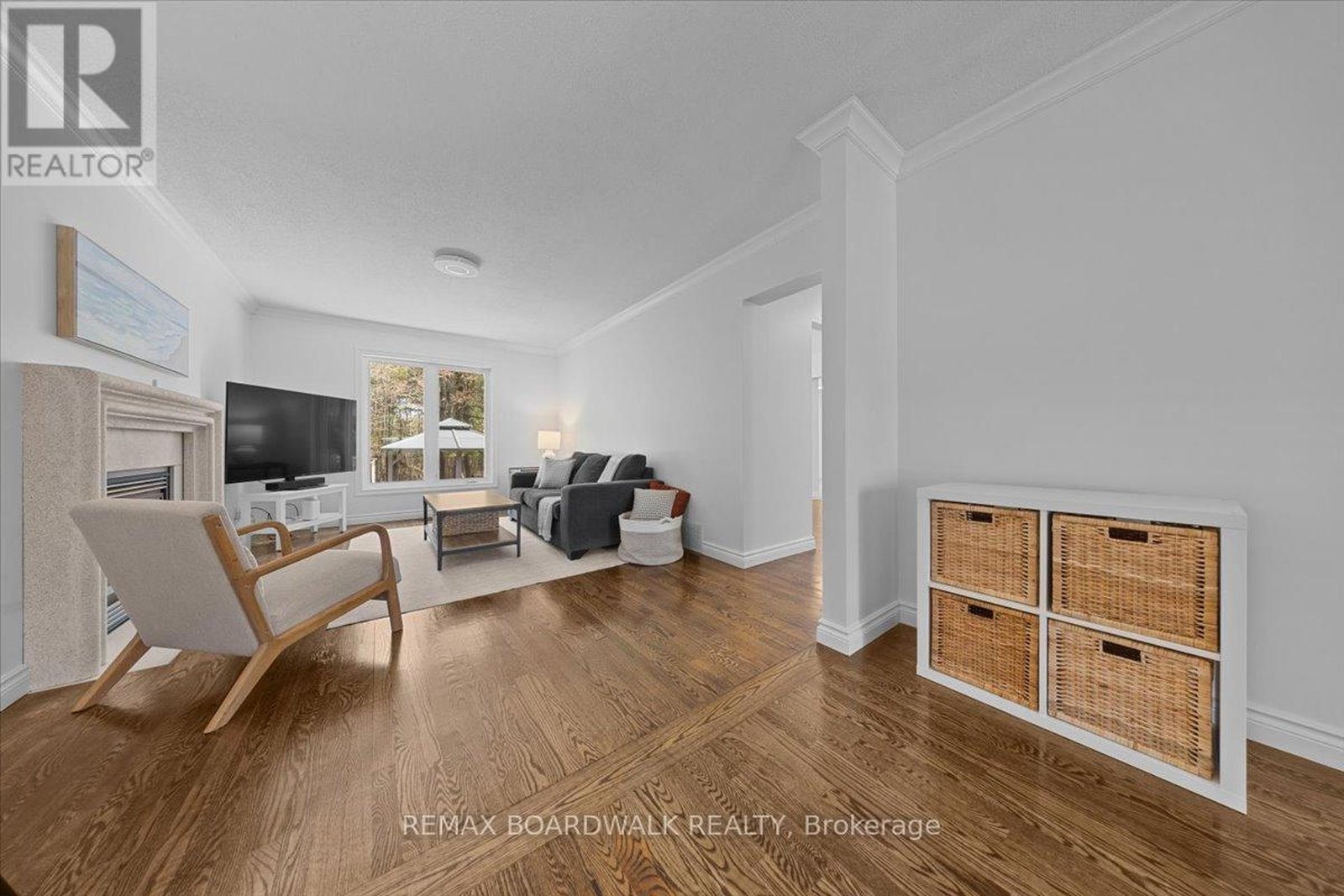 Tucked away in a quiet, mature neighbourhood, this exceptional home offers NO REAR NEIGHBOURS and a stunning treed backdrop creating a private, nature-filled setting. Interlock front walkway and surrounding driveway set the tone for the pride of ownership throughout. Step inside to front entrance with tiled flooring that seamlessly transitions into rich hardwood. The layout immediately draws your eye straight through to the serene backyard views. A striking two-tone staircase adds character, while the traditional dining room provides the perfect space for hosting. The extended living area is warm and welcoming, complete with a natural gas fireplace and flooded with natural sunlight. The modern kitchen is timeless, featuring granite countertops, square-tiled backsplash, stainless steel appliances, ample cabinetry, shelving and upgraded overhead lighting. Sliding patio doors offer direct access to the backyard while showcasing peaceful views. Conveniently located off the kitchen is the main flr laundry area, a tucked-away 2-piece powder rm, and inside entry to the dble car garage. Upstairs hardwd flooring continues to 3 spacious bedrms. The updated 4-piece main bath includes a quartz vanity (2026) with sleek horizontal tile. The generous primary bdrm features a deep walk-in closet and a private 3-piece ensuite with tile flooring, a standalone tiled shower, and a heated towel rack for added comfort. The finished basement expands your living space with a large open recreation room, offering endless flexibility for family living, a home gym, or entertainment. Step outside to a truly rare backyard retreat. Enjoy a composite deck, gazebo, flagstone landscaping, and river rock accents, all framed by privacy hedges and backed by natural greenery, your own private escape. Ideally located close to all major amenities, top schools, walking paths, parks, and recreation. HWT (2023), Furnace (2010), A/C (2012), Stove (2024), Dishwasher (2025), Roof (2025), Electrical Panel (2026).
