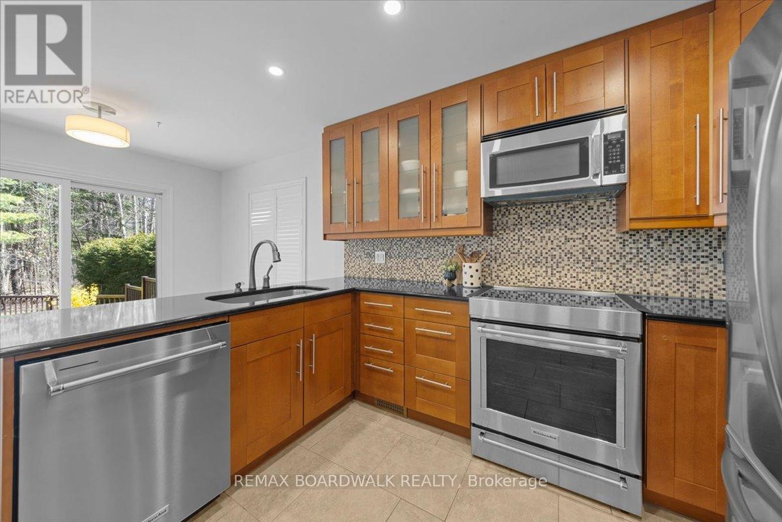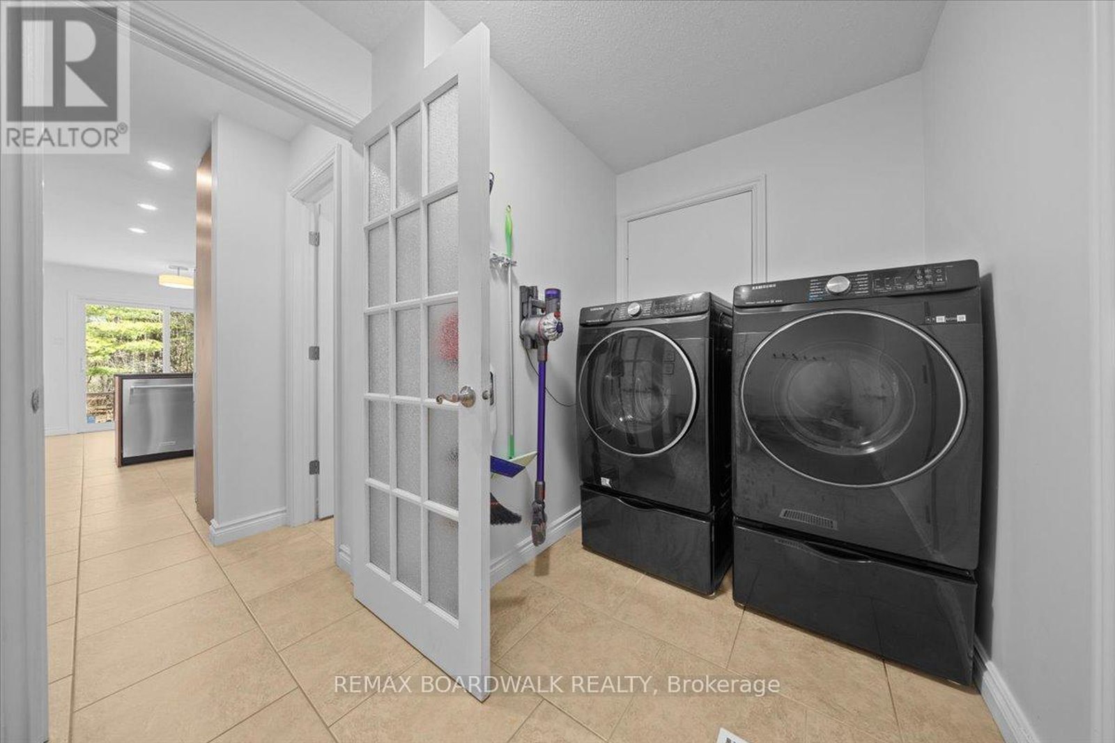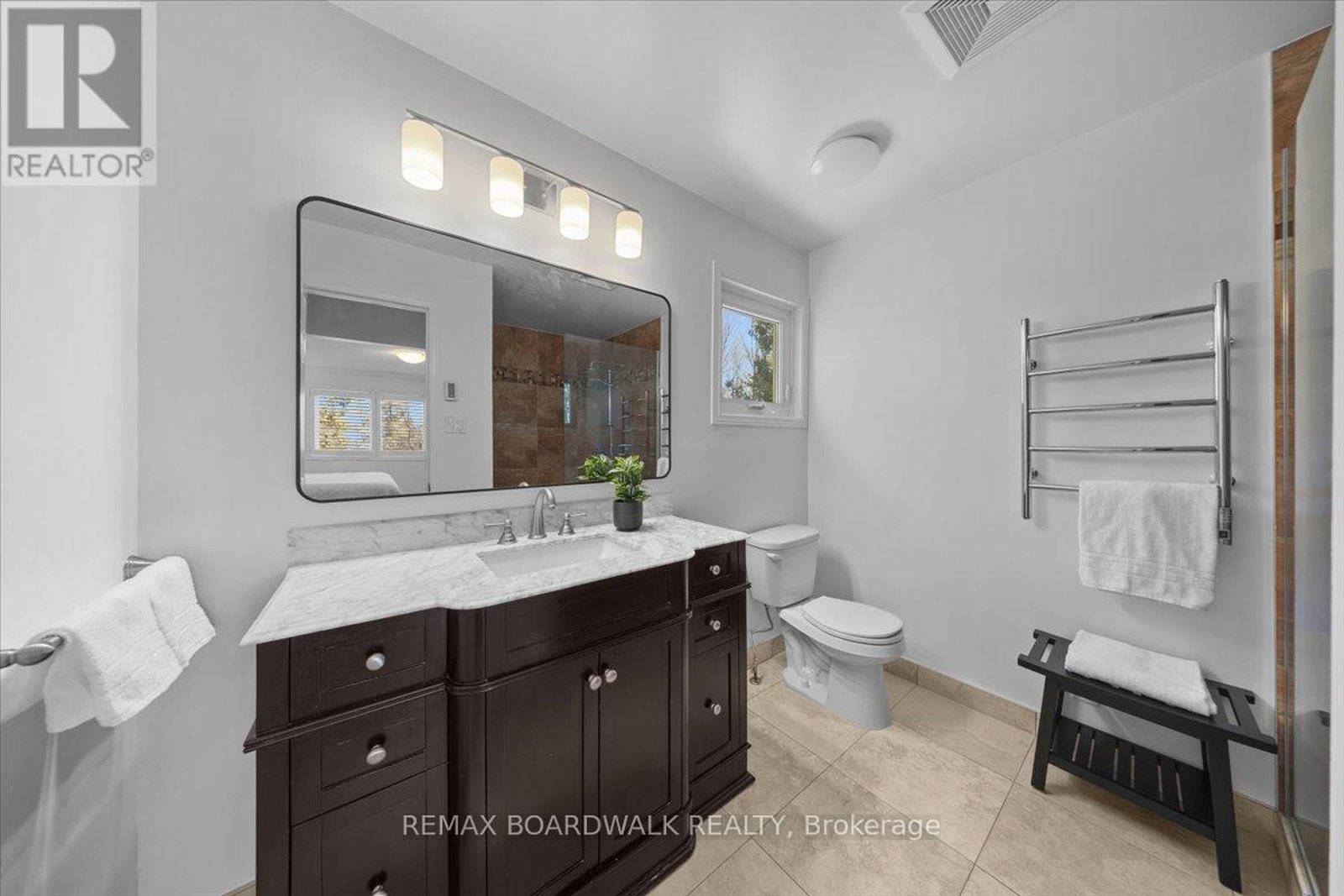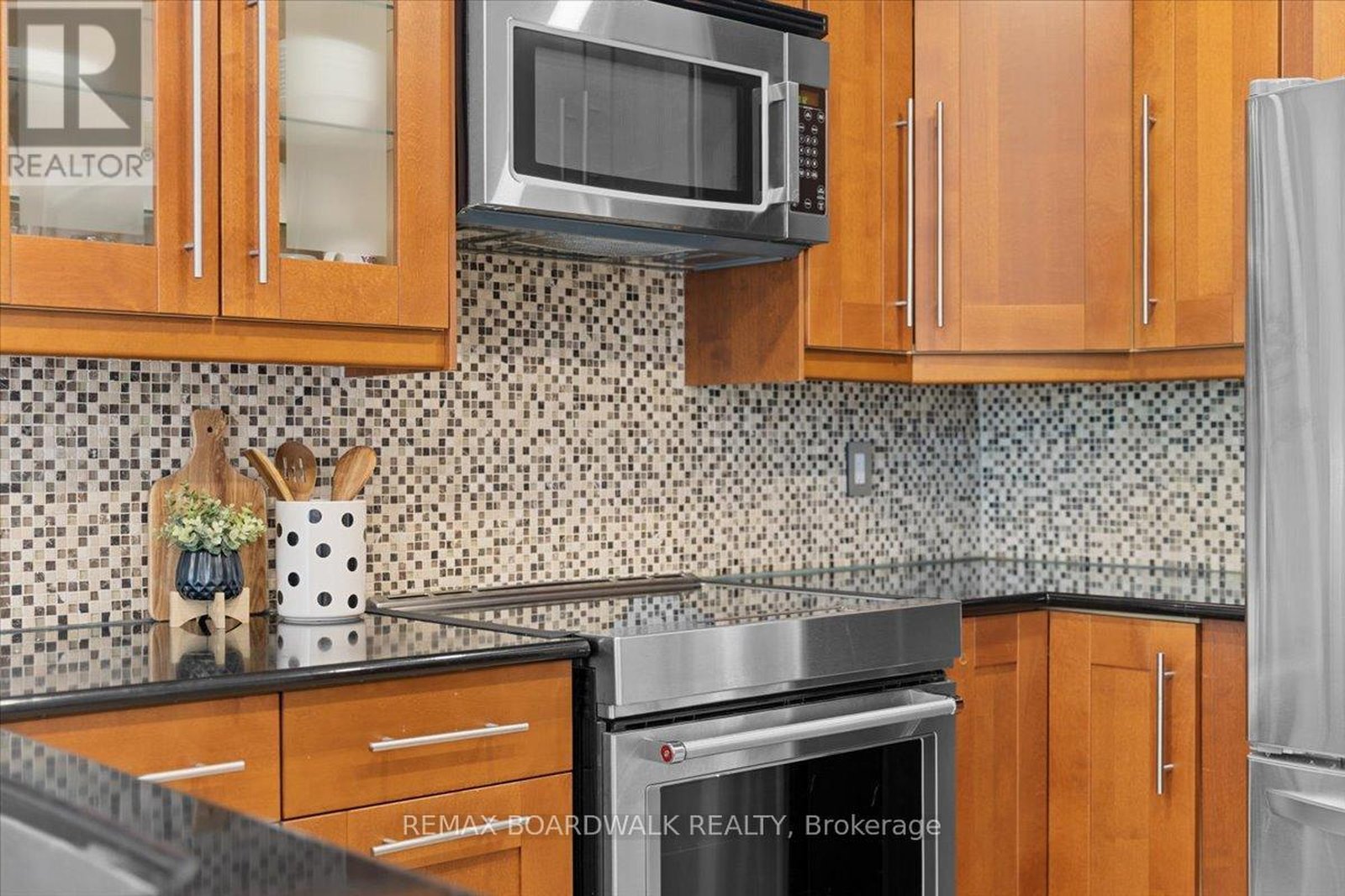 Tucked away in a quiet, mature neighbourhood, this exceptional home offers NO REAR NEIGHBOURS and a stunning treed backdrop creating a private, nature-filled setting. Interlock front walkway and surrounding driveway set the tone for the pride of ownership throughout. Step inside to front entrance with tiled flooring that seamlessly transitions into rich hardwood. The layout immediately draws your eye straight through to the serene backyard views. A striking two-tone staircase adds character, while the traditional dining room provides the perfect space for hosting. The extended living area is warm and welcoming, complete with a natural gas fireplace and flooded with natural sunlight. The modern kitchen is timeless, featuring granite countertops, square-tiled backsplash, stainless steel appliances, ample cabinetry, shelving and upgraded overhead lighting. Sliding patio doors offer direct access to the backyard while showcasing peaceful views. Conveniently located off the kitchen is the main flr laundry area, a tucked-away 2-piece powder rm, and inside entry to the dble car garage. Upstairs hardwd flooring continues to 3 spacious bedrms. The updated 4-piece main bath includes a quartz vanity (2026) with sleek horizontal tile. The generous primary bdrm features a deep walk-in closet and a private 3-piece ensuite with tile flooring, a standalone tiled shower, and a heated towel rack for added comfort. The finished basement expands your living space with a large open recreation room, offering endless flexibility for family living, a home gym, or entertainment. Step outside to a truly rare backyard retreat. Enjoy a composite deck, gazebo, flagstone landscaping, and river rock accents, all framed by privacy hedges and backed by natural greenery, your own private escape. Ideally located close to all major amenities, top schools, walking paths, parks, and recreation. HWT (2023), Furnace (2010), A/C (2012), Stove (2024), Dishwasher (2025), Roof (2025), Electrical Panel (2026).