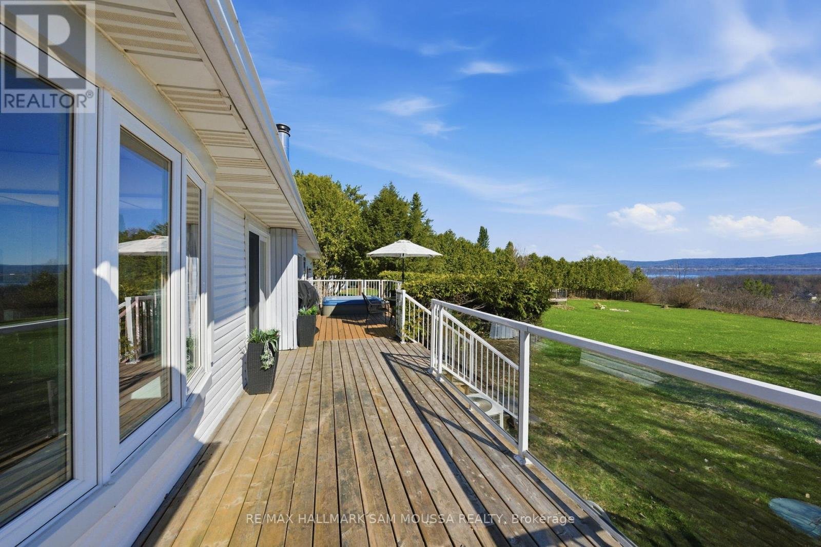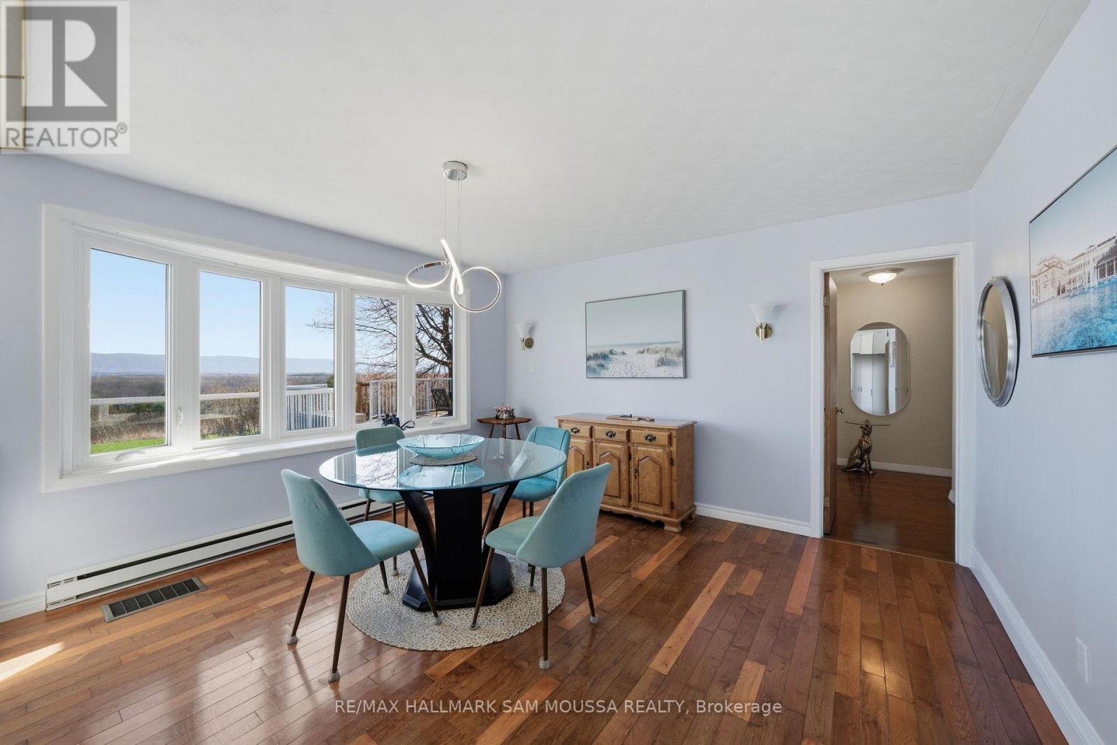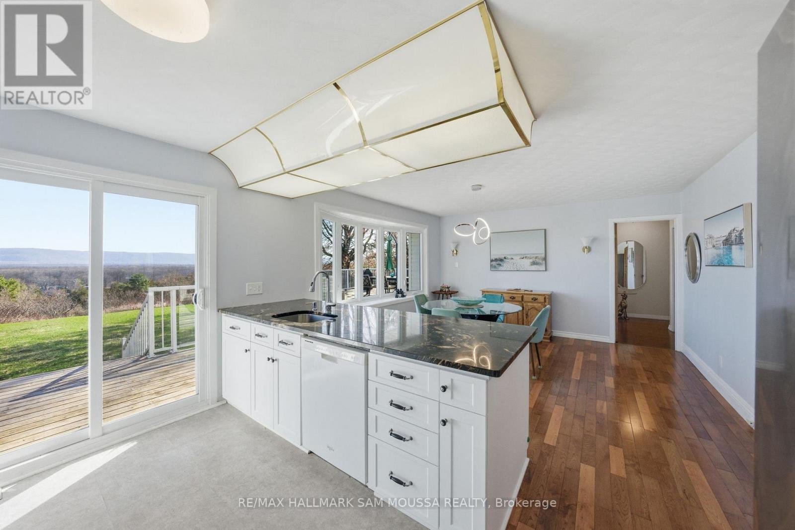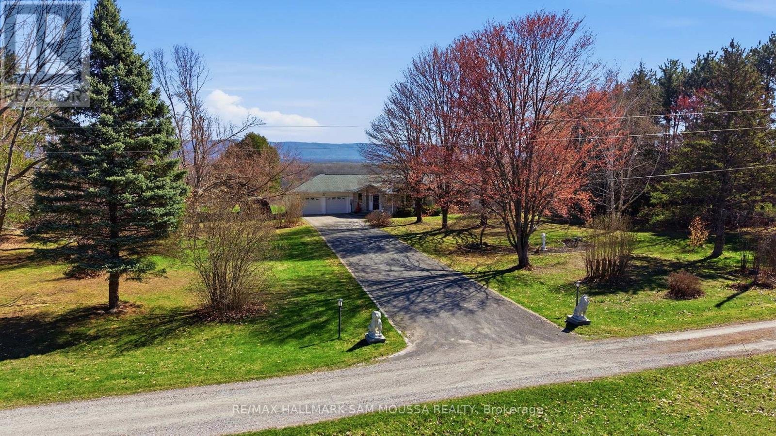 Beautiful bungalow offering rare privacy and sweeping views toward the Ottawa River and the Laurentian Mountains. Enjoy daily wildlife, stunning sunsets, and a peaceful natural setting just minutes from the city. The home features a bright, functional layout with 4 bedrooms and 3 bathrooms on the main level, a family room, and a full partially finished basement. The kitchen and dining areas flow well for everyday living, while a wood-burning fireplace insert and basement wood stove add warmth and character. Heating includes forced-air propane, and baseboard heaters. An attached garage and ample parking provide convenience. The expansive 17 acre lot is ideal for year-round outdoor enjoyment, from summer BBQs to winter cross-country skiing on your own property. Annual shared-road maintenance and snow removal: $900. New A/C installed in 2026.