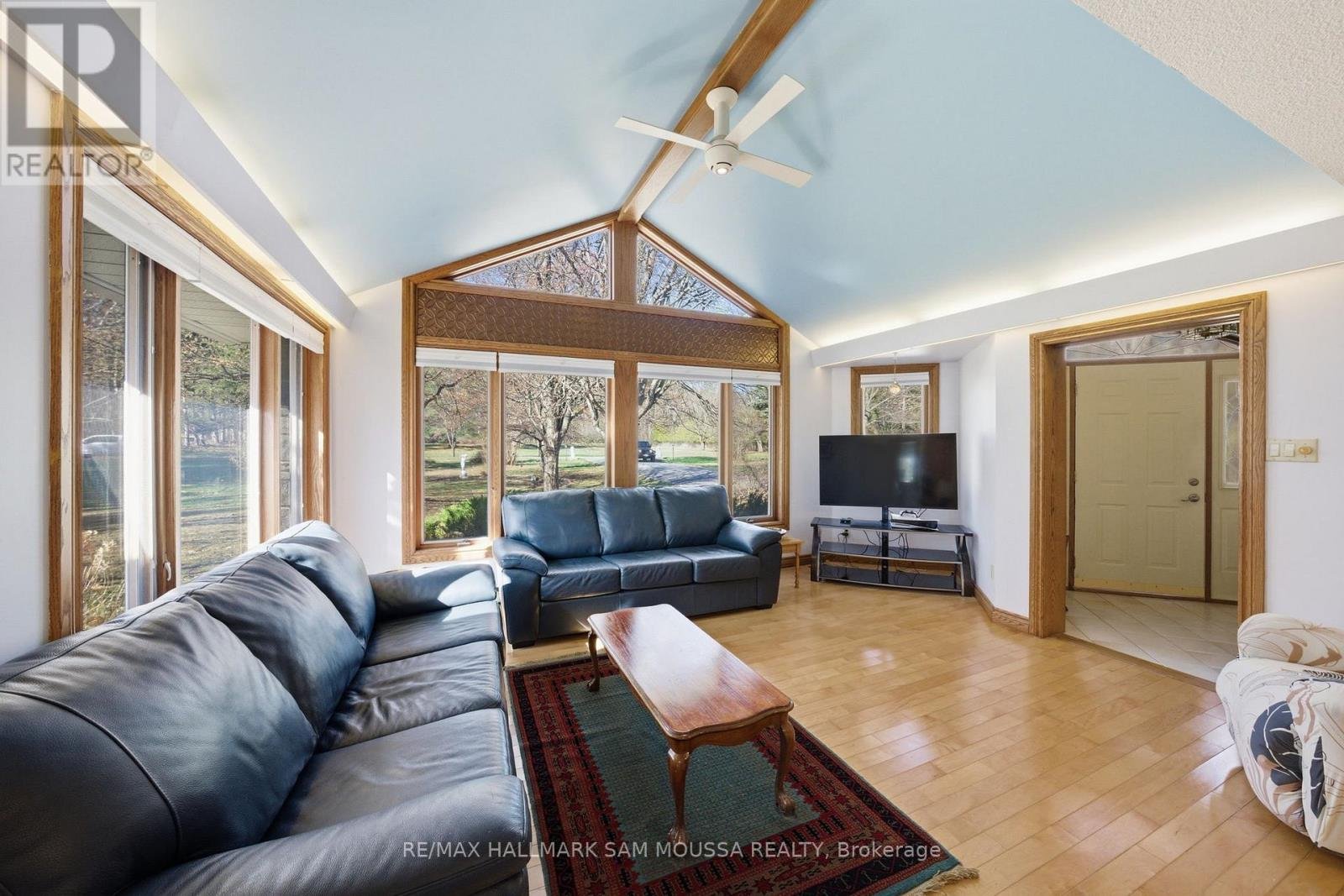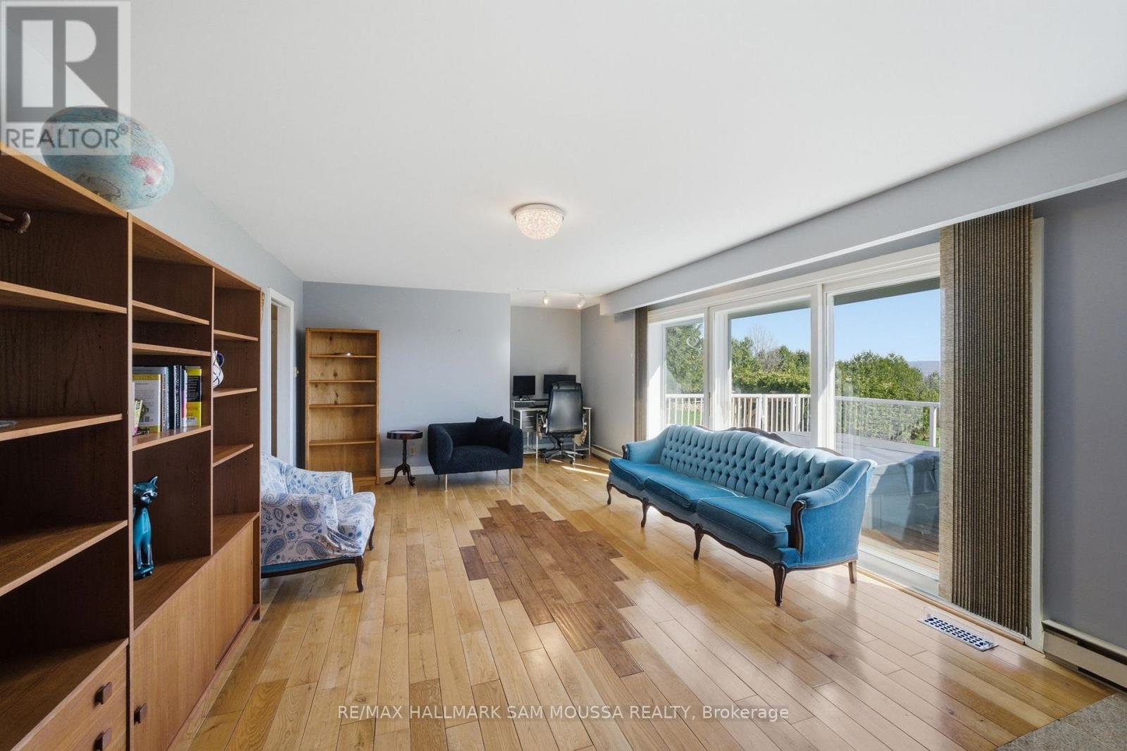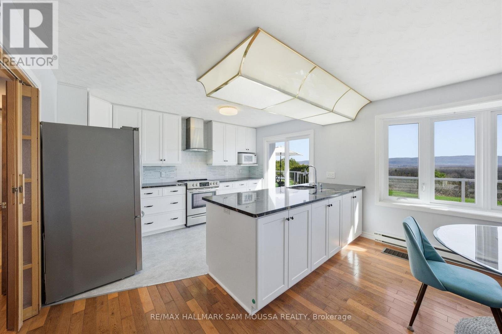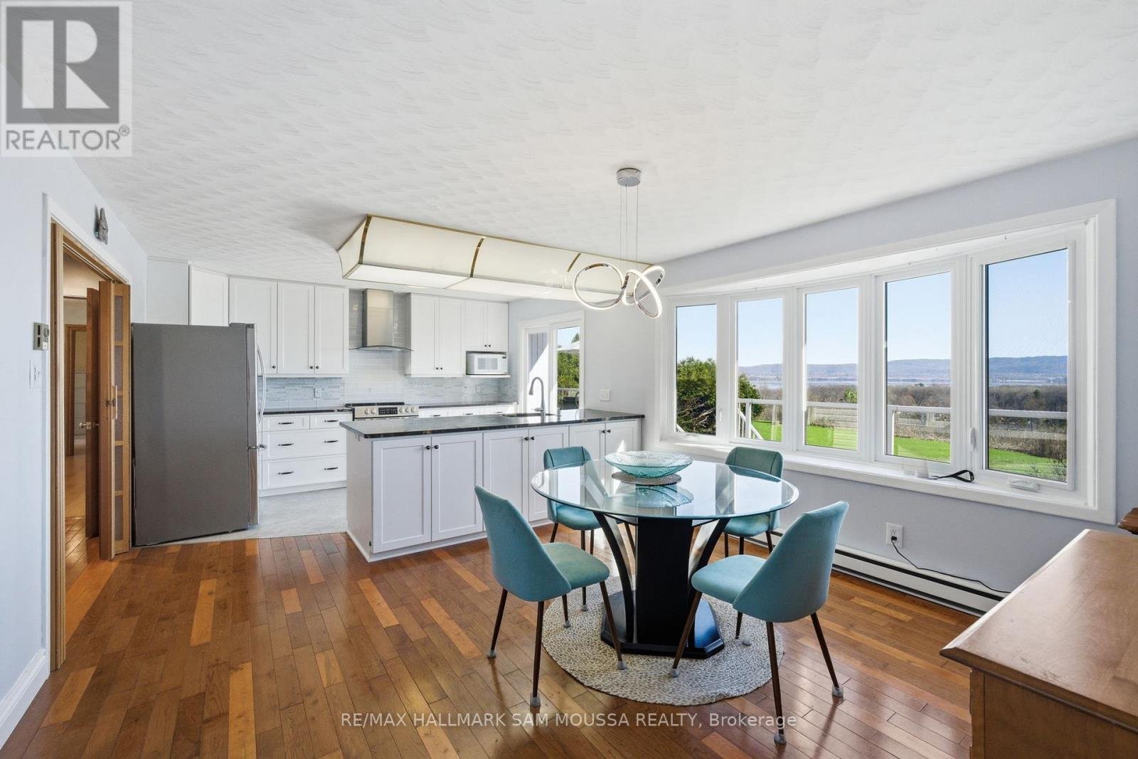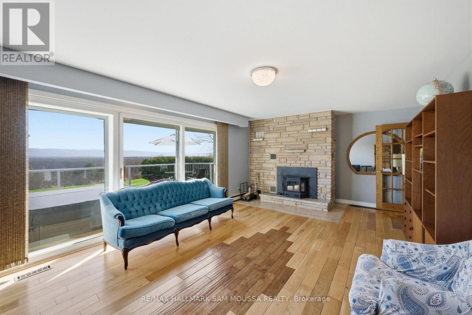 Beautiful bungalow offering rare privacy and sweeping views toward the Ottawa River and the Laurentian Mountains. Enjoy daily wildlife, stunning sunsets, and a peaceful natural setting just minutes from the city. The home features a bright, functional layout with 4 bedrooms and 3 bathrooms on the main level, a family room, and a full partially finished basement. The kitchen and dining areas flow well for everyday living, while a wood-burning fireplace insert and basement wood stove add warmth and character. Heating includes forced-air propane, and baseboard heaters. An attached garage and ample parking provide convenience. The expansive 17 acre lot is ideal for year-round outdoor enjoyment, from summer BBQs to winter cross-country skiing on your own property. Annual shared-road maintenance and snow removal: $900. New A/C installed in 2026.