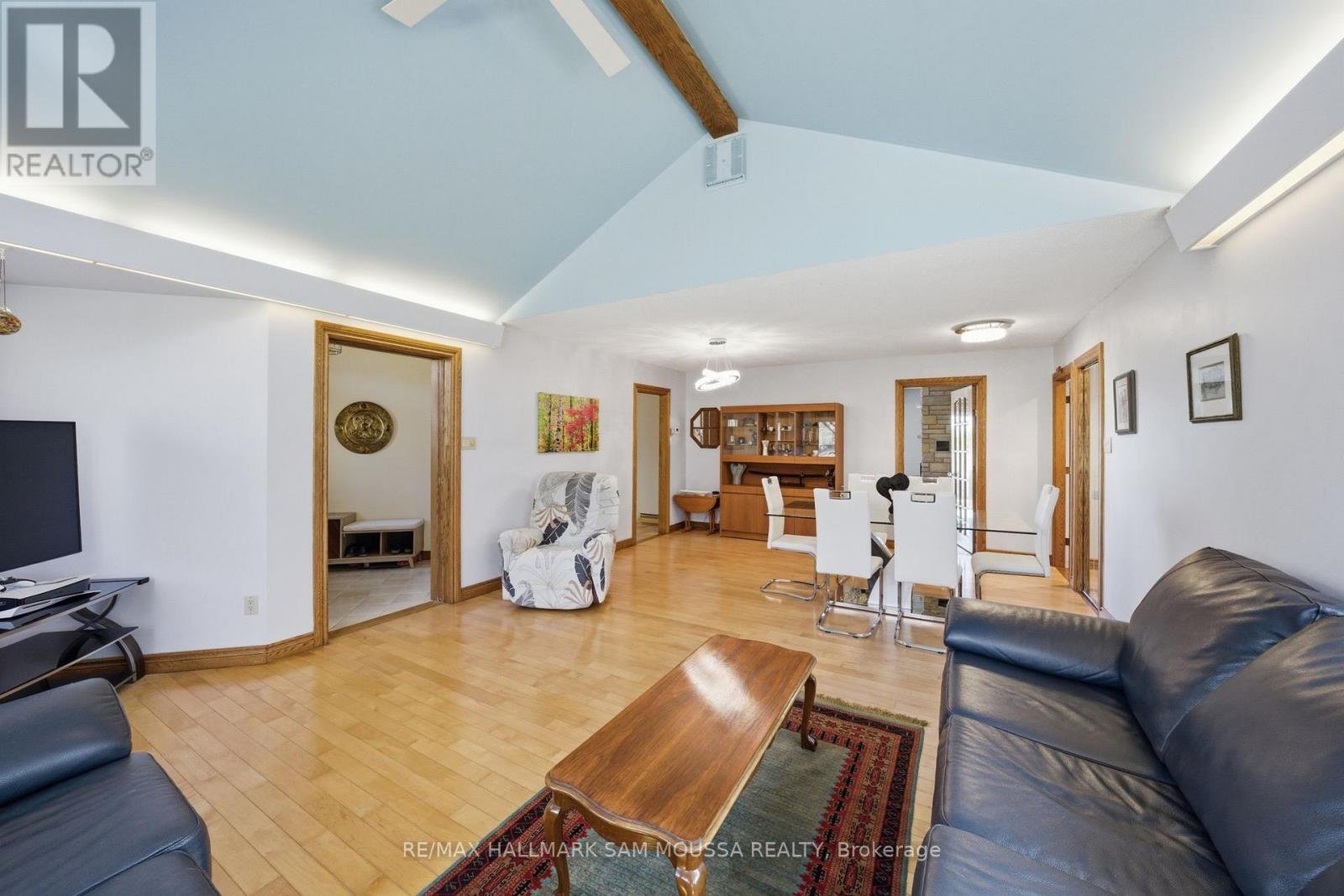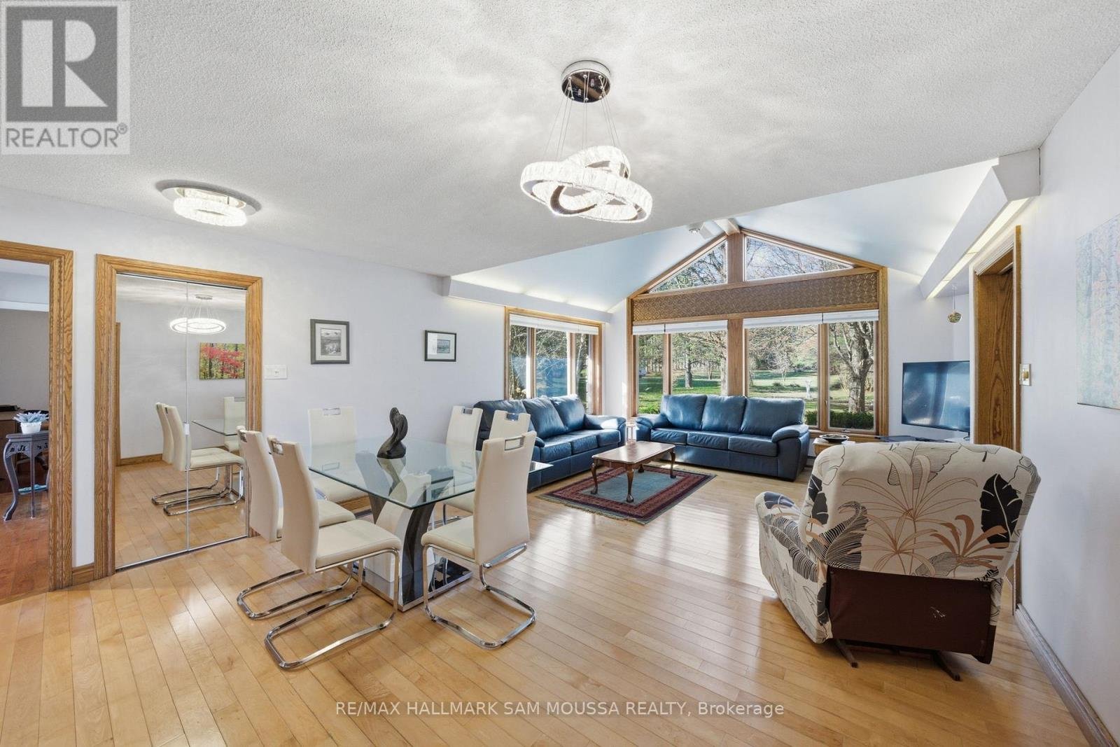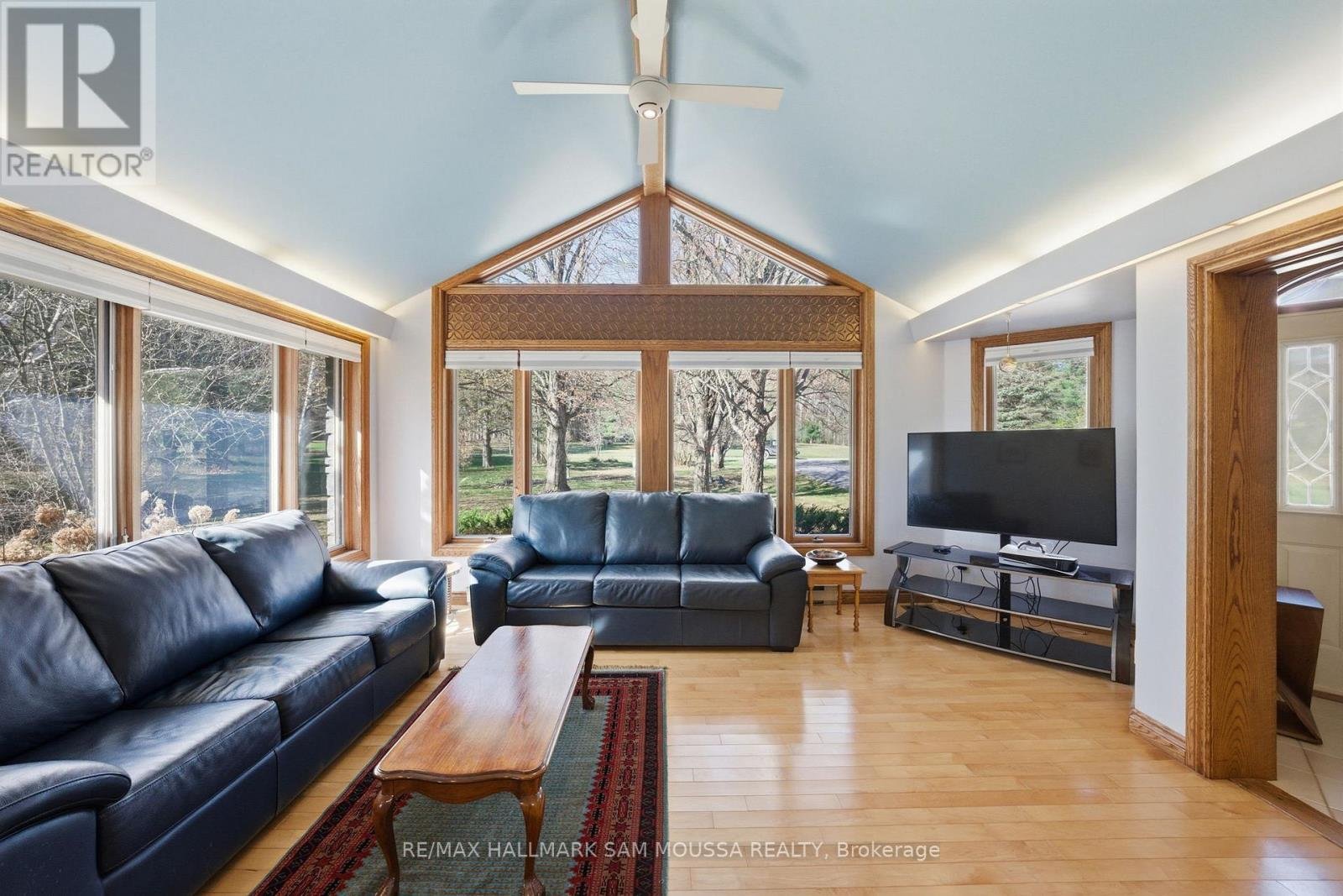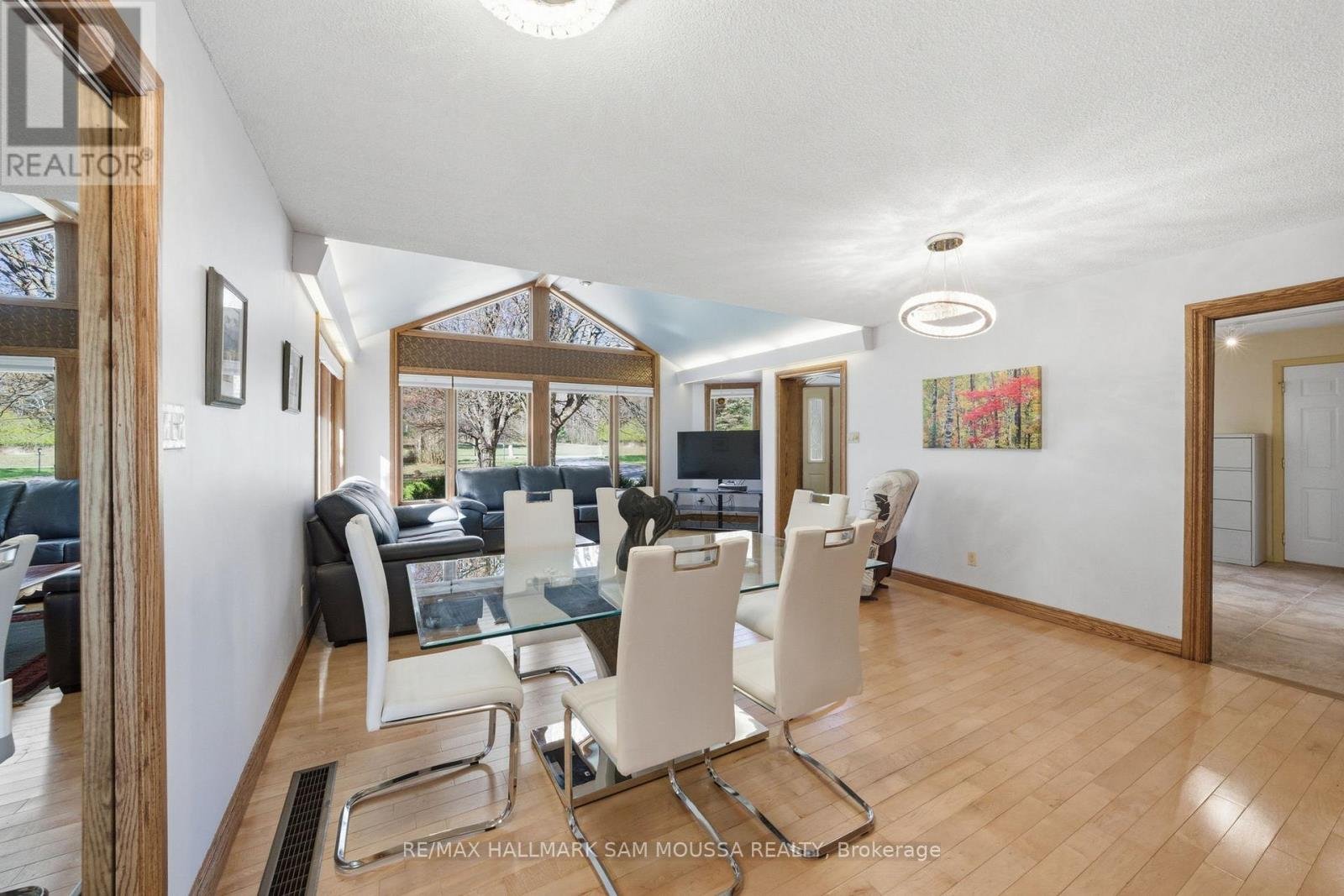 Beautiful bungalow offering rare privacy and sweeping views toward the Ottawa River and the Laurentian Mountains. Enjoy daily wildlife, stunning sunsets, and a peaceful natural setting just minutes from the city. The home features a bright, functional layout with 4 bedrooms and 3 bathrooms on the main level, a family room, and a full partially finished basement. The kitchen and dining areas flow well for everyday living, while a wood-burning fireplace insert and basement wood stove add warmth and character. Heating includes forced-air propane, and baseboard heaters. An attached garage and ample parking provide convenience. The expansive 17 acre lot is ideal for year-round outdoor enjoyment, from summer BBQs to winter cross-country skiing on your own property. Annual shared-road maintenance and snow removal: $900. New A/C installed in 2026.