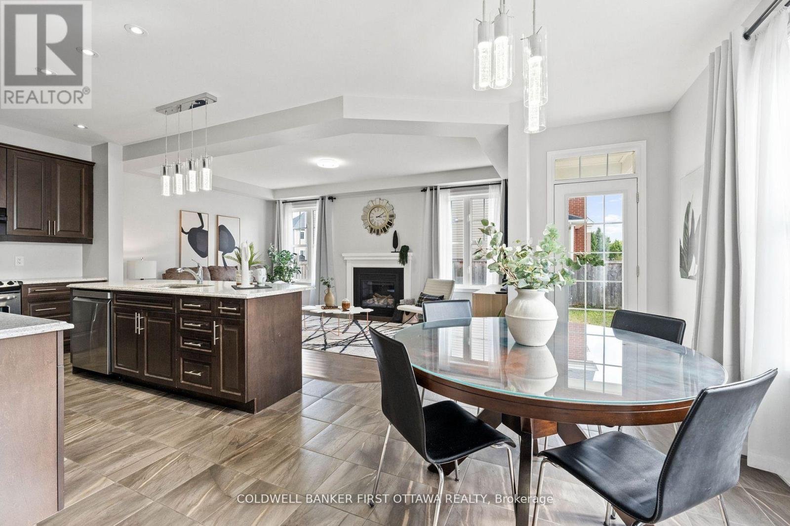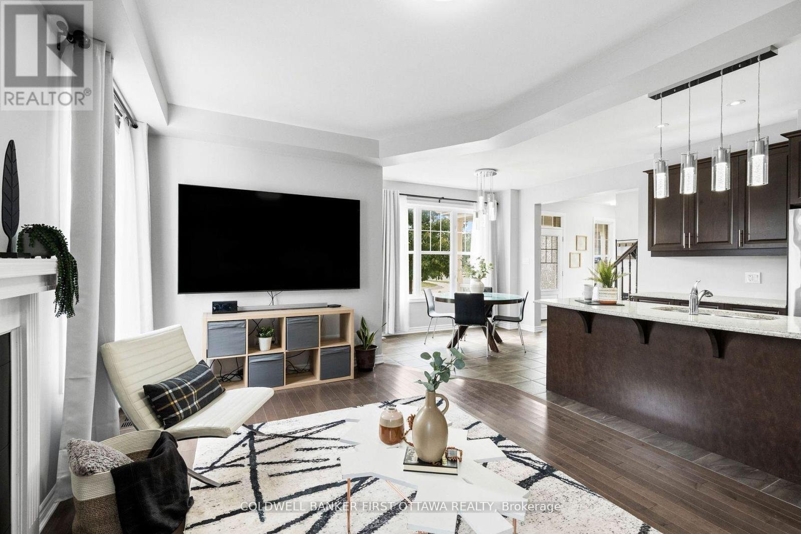Facing Lamprey park is this this amazing sun-filled residence exuding timeless charm with its inviting wraparound porch and showcases thoughtful upgrades throughout.The main level offers a seamless open-concept design with 9-foot ceilings and gleaming hardwood floors, creating an effortless flow between the elegant dining area and the spacious living room, complete with a cozy gas fireplace. The chef-inspired kitchen is a true showpiece, featuring stainless steel appliances, a sleek hood fan, quartz countertops, a large island with breakfast bar, and refined lighting with pot lights throughout. Upstairs, rich hardwood floors and a striking staircase lead to a versatile loft with soaring cathedral ceilings an ideal retreat for a home office or lounge. The serene primary suite boasts a walk-in closet and a spa-like 5-piece ensuite, complete with double granite vanities, a freestanding soaker tub, and a glass-enclosed shower. Two additional bedrooms, a stylish full bath, and a convenient laundry room complete the upper level. Outside, the PVC-fenced backyard offers privacy and low-maintenance enjoyment.This exceptional property is just steps from River Mist Park, within walking distance to top-rated schools, and only minutes from the Minto Recreation Centre, shopping, dining, and public transit. A perfect balance of elegance, comfort, and convenience this home truly has it all. ** This is a linked property.**