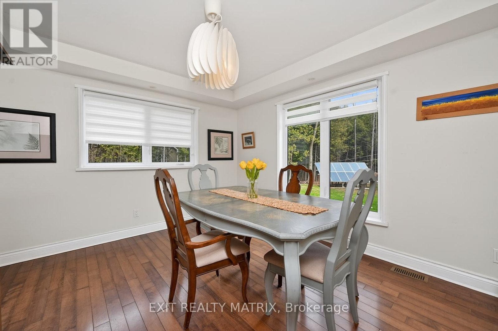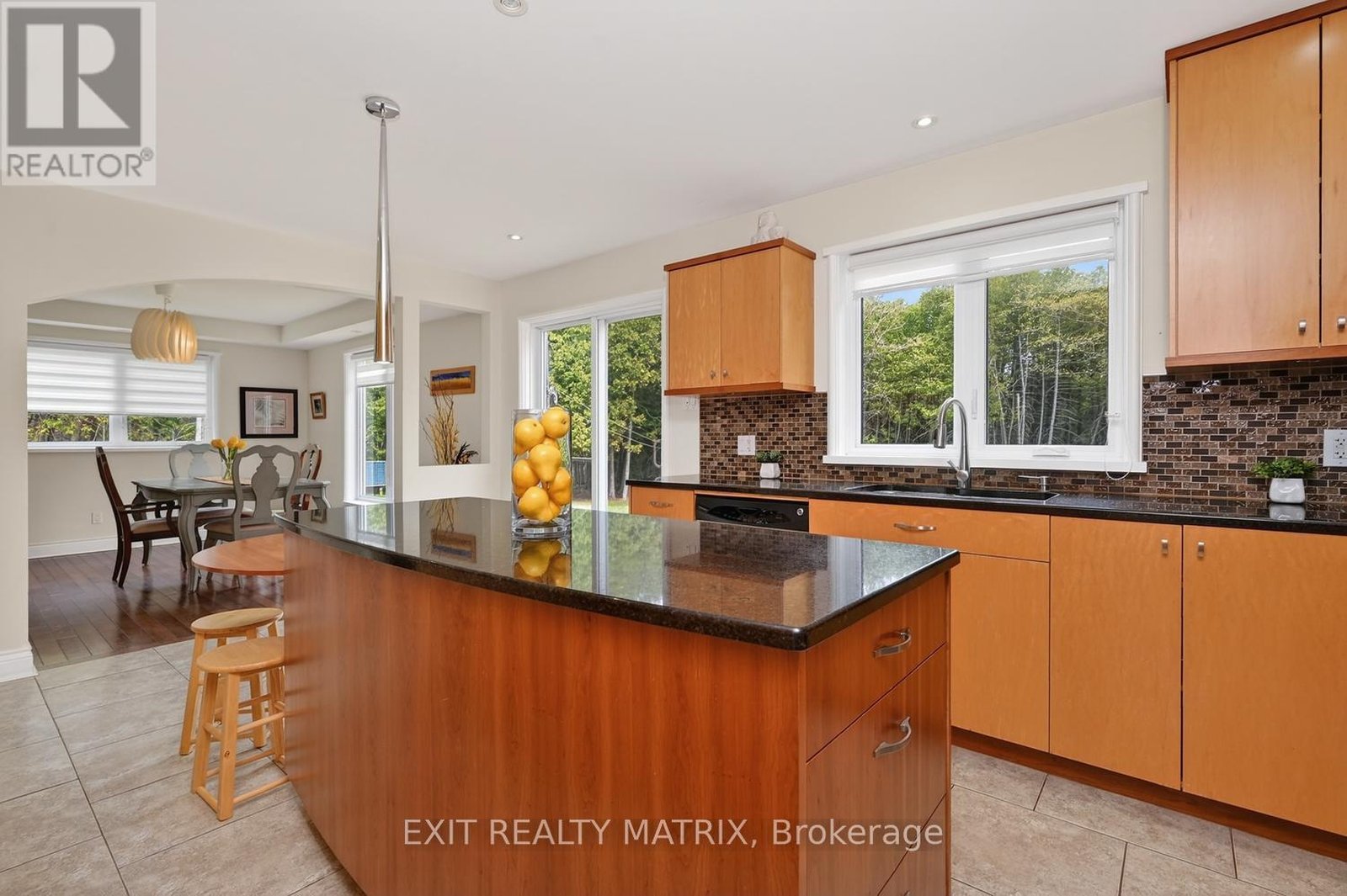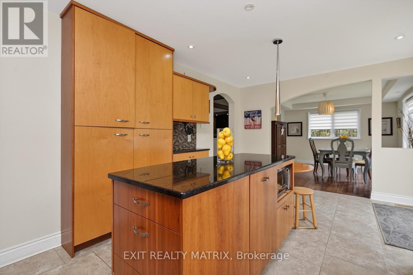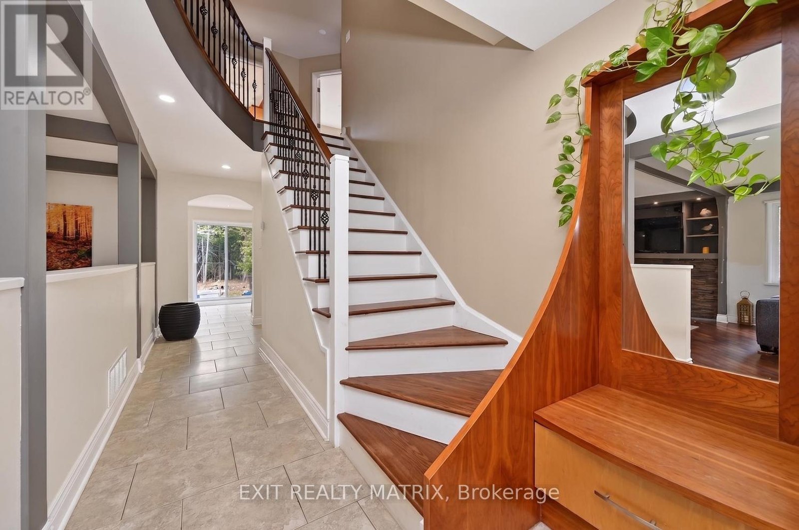 Open House Sunday, May 3rd, 2-4 PM. Welcome to 4081 Caracourt Drive in the charming village of Vernon, located in a quiet, family-oriented subdivision just a short drive to local amenities and Ottawa South. Set on nearly an acre and surrounded by mature trees, this custom 2-storey home offers a peaceful, private setting. Equipped with a solar power system that actively runs the home and only transitions to electric and gas when additional support is needed, this property offers meaningful energy efficiency and long-term cost savings. The main level features a spacious living room with custom built-in shelving, exposed ceiling beams, and a cozy c fireplace, flowing into a large dining room with ample natural light. Hardwood and ceramic tile flooring run throughout the main and upper levels. The functional kitchen is fully upgraded with stainless steel appliances, granite countertops, modern backsplash, ample cabinetry, and a central island, along with a patio door that fills the space with natural light and provides easy access to the yard. Convenient main floor laundry adds to the functionality. Upstairs offers 3 well-sized bedrooms, including a large primary suite with a sitting area and bonus room-ideal for an office or nursery. The impressive ensuite features a walk-in rain shower, soaker tub, custom ceramic tile, and thoughtful design details. The finished lower level includes a generous rec room, additional bedroom, den, and flexible space for guests, a home gym, or growing family needs. Enjoy a private setting with mature trees providing separation from neighbours, a beautiful circular driveway, and a handy storage shed. A great opportunity to enjoy space, privacy, and community living just outside the city