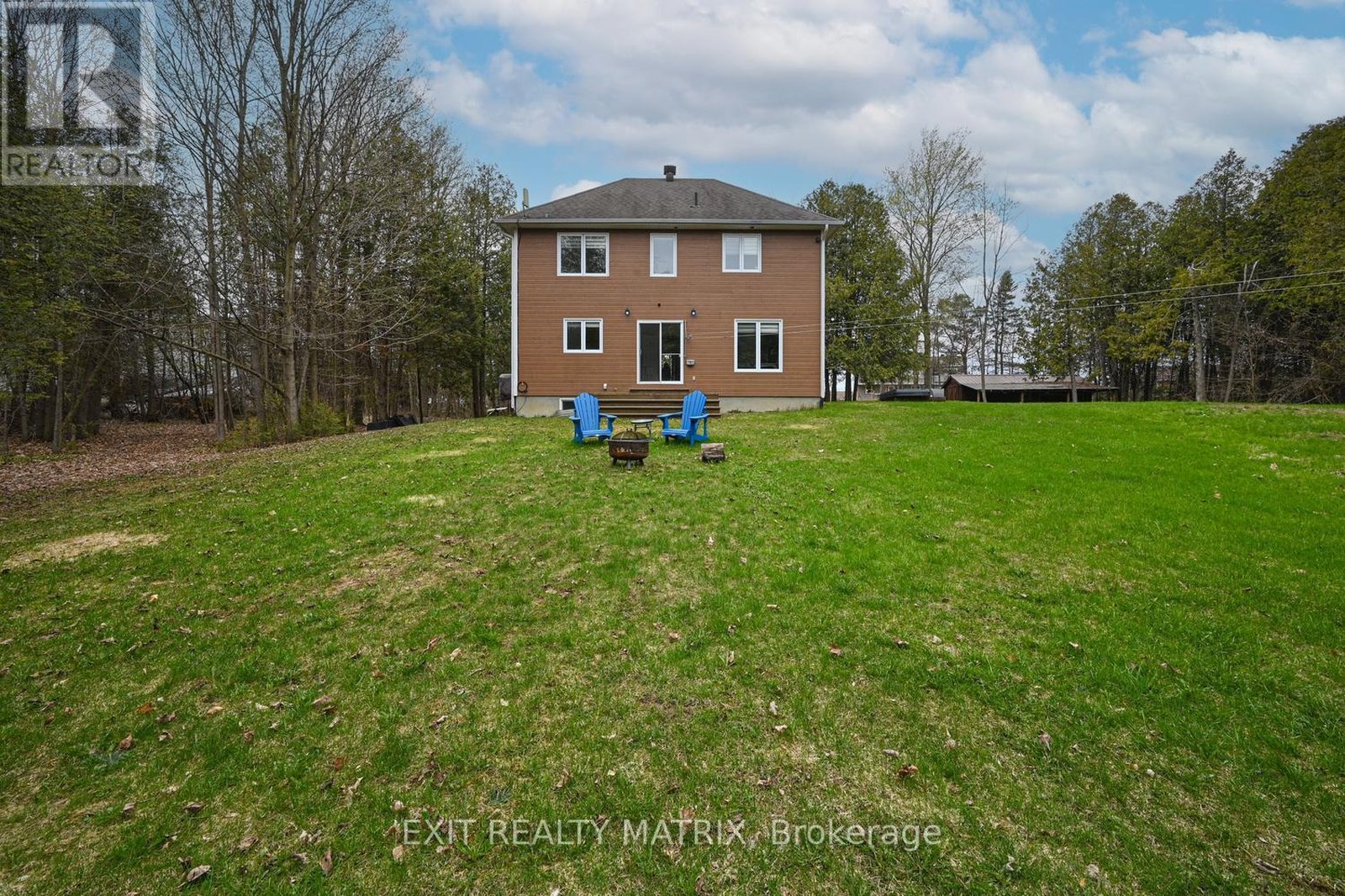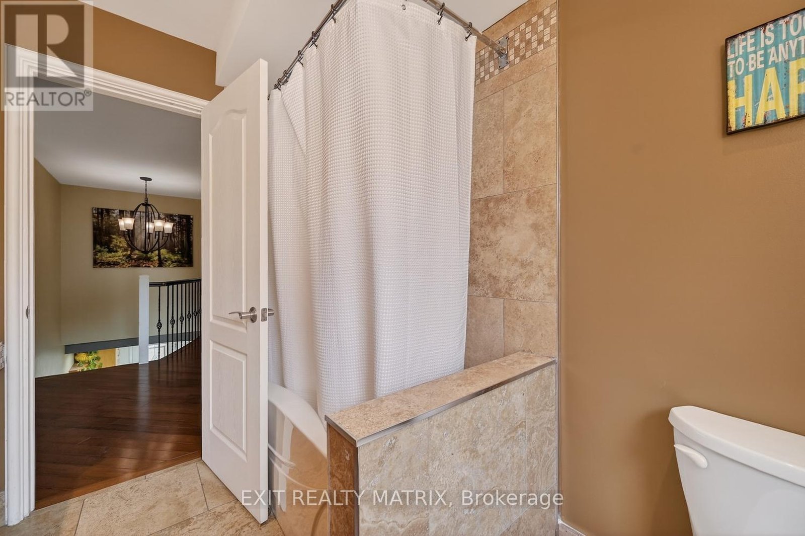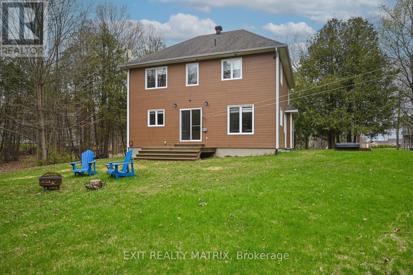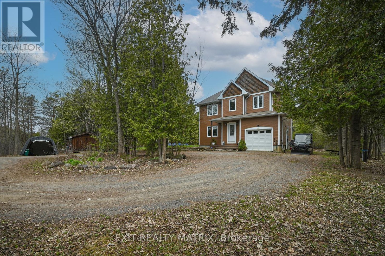 Open House Sunday, May 3rd, 2-4 PM. Welcome to 4081 Caracourt Drive in the charming village of Vernon, located in a quiet, family-oriented subdivision just a short drive to local amenities and Ottawa South. Set on nearly an acre and surrounded by mature trees, this custom 2-storey home offers a peaceful, private setting. Equipped with a solar power system that actively runs the home and only transitions to electric and gas when additional support is needed, this property offers meaningful energy efficiency and long-term cost savings. The main level features a spacious living room with custom built-in shelving, exposed ceiling beams, and a cozy c fireplace, flowing into a large dining room with ample natural light. Hardwood and ceramic tile flooring run throughout the main and upper levels. The functional kitchen is fully upgraded with stainless steel appliances, granite countertops, modern backsplash, ample cabinetry, and a central island, along with a patio door that fills the space with natural light and provides easy access to the yard. Convenient main floor laundry adds to the functionality. Upstairs offers 3 well-sized bedrooms, including a large primary suite with a sitting area and bonus room-ideal for an office or nursery. The impressive ensuite features a walk-in rain shower, soaker tub, custom ceramic tile, and thoughtful design details. The finished lower level includes a generous rec room, additional bedroom, den, and flexible space for guests, a home gym, or growing family needs. Enjoy a private setting with mature trees providing separation from neighbours, a beautiful circular driveway, and a handy storage shed. A great opportunity to enjoy space, privacy, and community living just outside the city