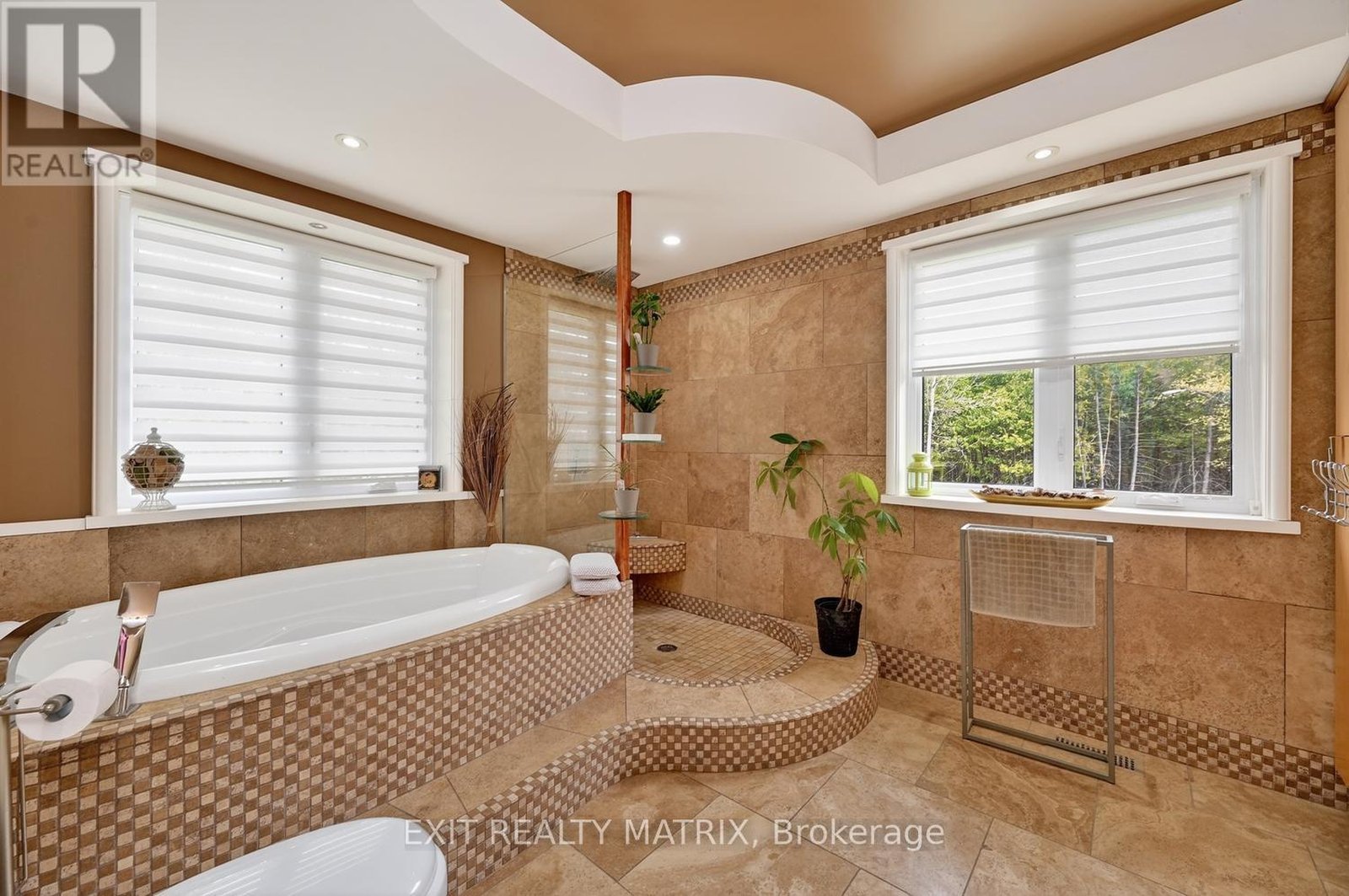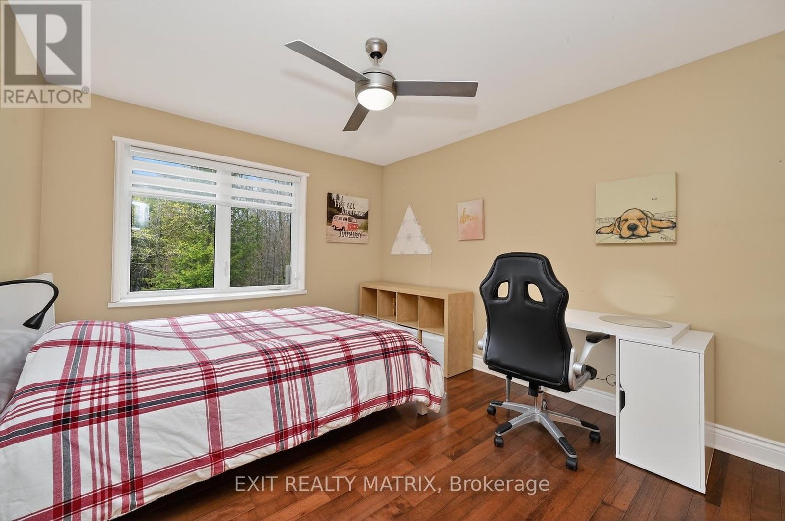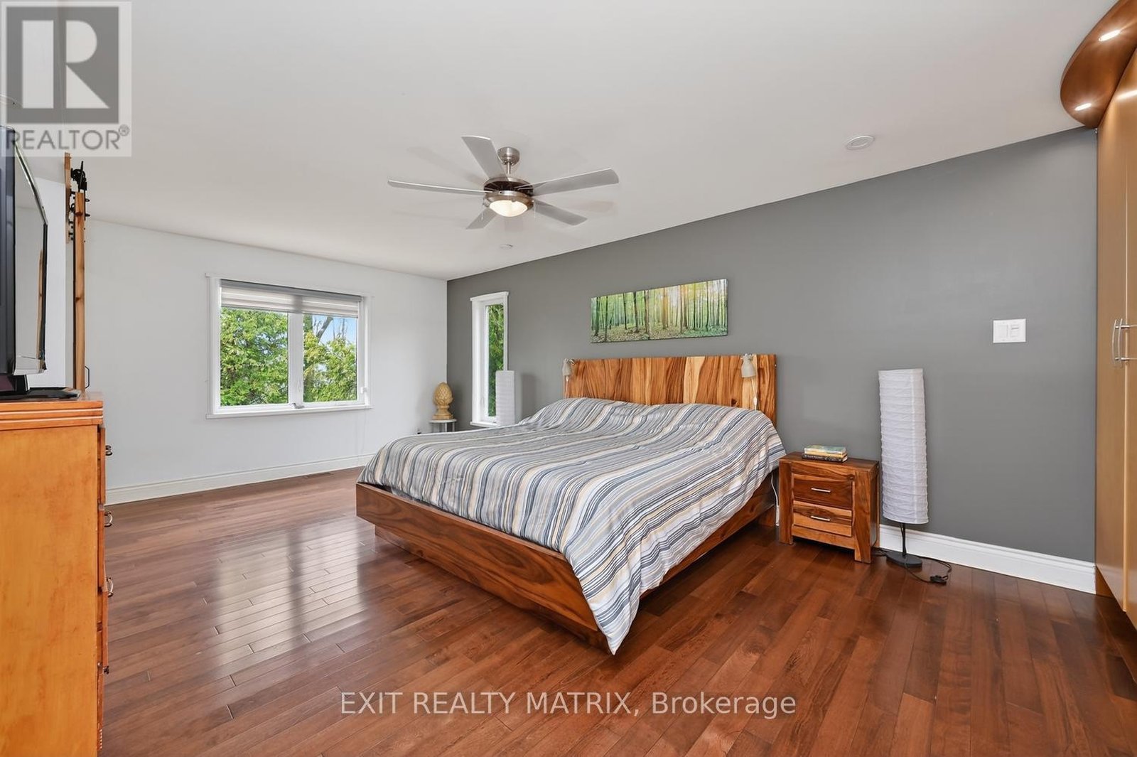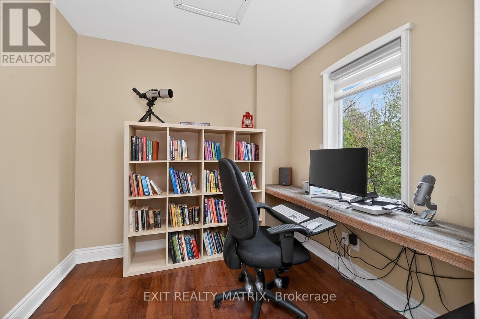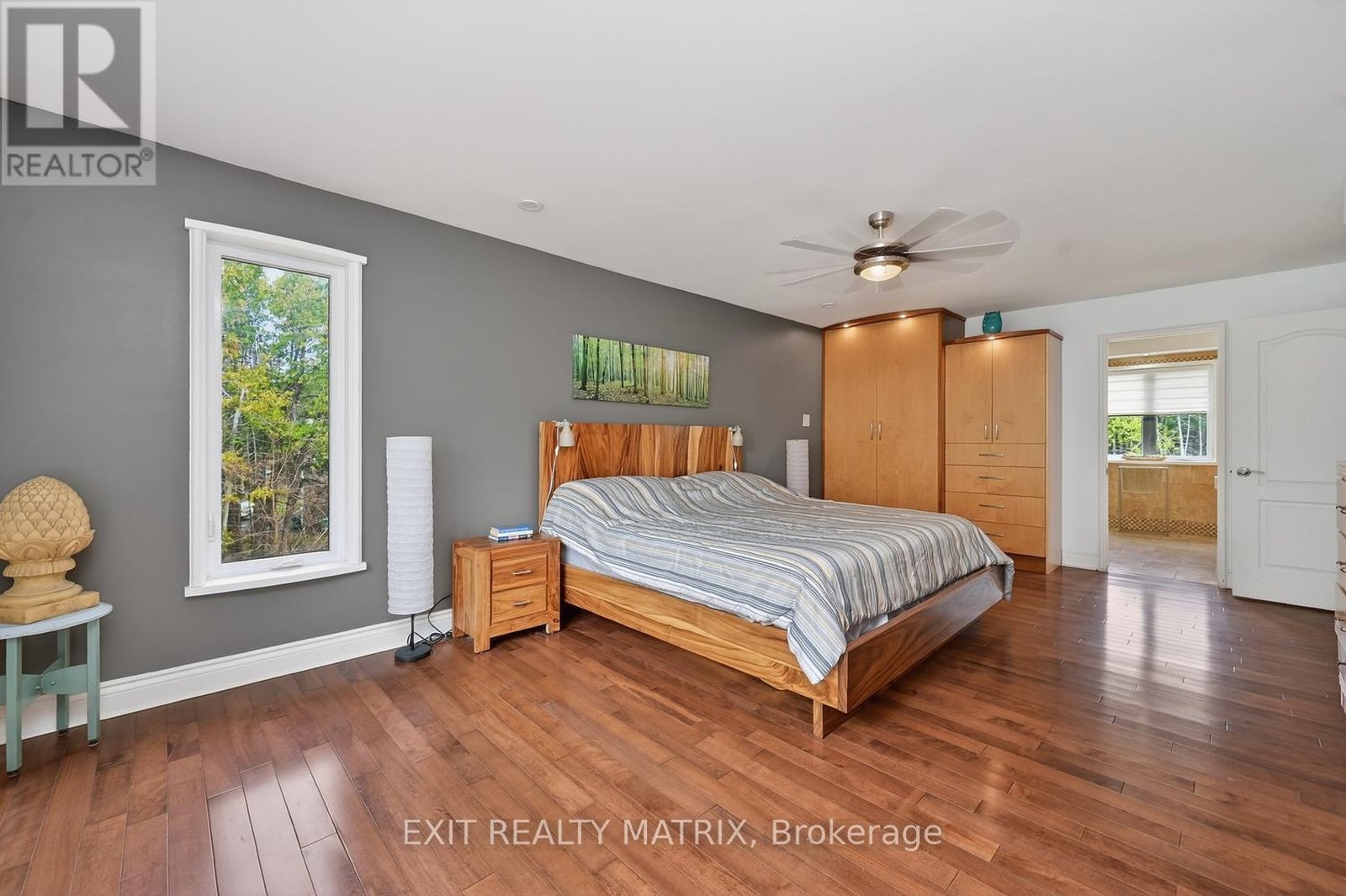 Open House Sunday, May 3rd, 2-4 PM. Welcome to 4081 Caracourt Drive in the charming village of Vernon, located in a quiet, family-oriented subdivision just a short drive to local amenities and Ottawa South. Set on nearly an acre and surrounded by mature trees, this custom 2-storey home offers a peaceful, private setting. Equipped with a solar power system that actively runs the home and only transitions to electric and gas when additional support is needed, this property offers meaningful energy efficiency and long-term cost savings. The main level features a spacious living room with custom built-in shelving, exposed ceiling beams, and a cozy c fireplace, flowing into a large dining room with ample natural light. Hardwood and ceramic tile flooring run throughout the main and upper levels. The functional kitchen is fully upgraded with stainless steel appliances, granite countertops, modern backsplash, ample cabinetry, and a central island, along with a patio door that fills the space with natural light and provides easy access to the yard. Convenient main floor laundry adds to the functionality. Upstairs offers 3 well-sized bedrooms, including a large primary suite with a sitting area and bonus room-ideal for an office or nursery. The impressive ensuite features a walk-in rain shower, soaker tub, custom ceramic tile, and thoughtful design details. The finished lower level includes a generous rec room, additional bedroom, den, and flexible space for guests, a home gym, or growing family needs. Enjoy a private setting with mature trees providing separation from neighbours, a beautiful circular driveway, and a handy storage shed. A great opportunity to enjoy space, privacy, and community living just outside the city
