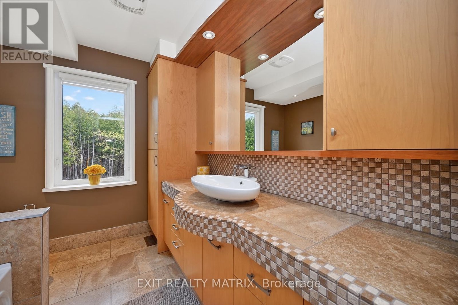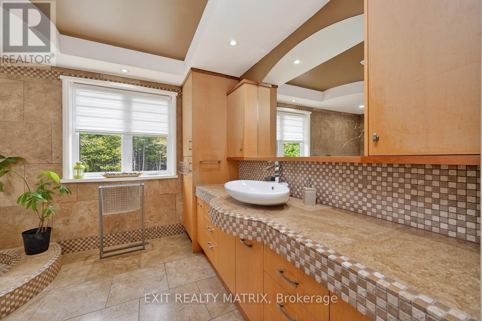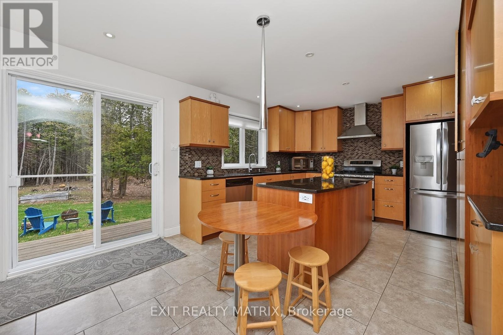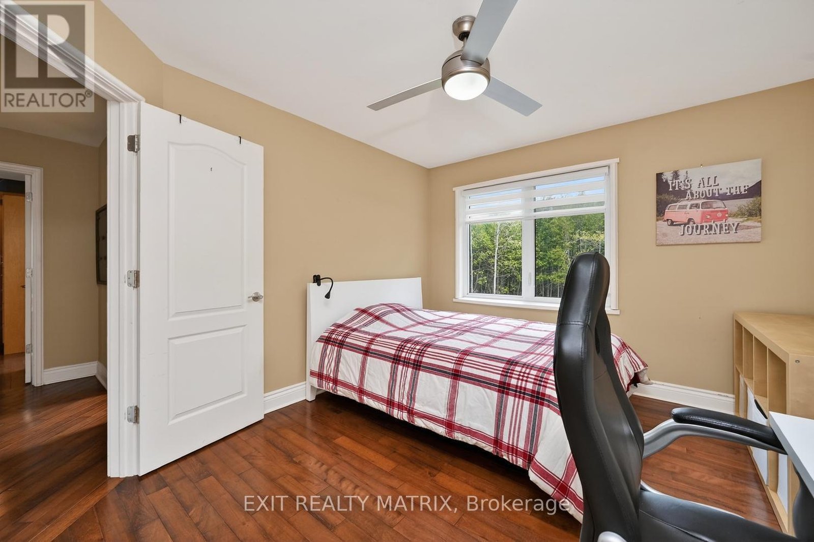 Open House Sunday, May 3rd, 2-4 PM. Welcome to 4081 Caracourt Drive in the charming village of Vernon, located in a quiet, family-oriented subdivision just a short drive to local amenities and Ottawa South. Set on nearly an acre and surrounded by mature trees, this custom 2-storey home offers a peaceful, private setting. Equipped with a solar power system that actively runs the home and only transitions to electric and gas when additional support is needed, this property offers meaningful energy efficiency and long-term cost savings. The main level features a spacious living room with custom built-in shelving, exposed ceiling beams, and a cozy c fireplace, flowing into a large dining room with ample natural light. Hardwood and ceramic tile flooring run throughout the main and upper levels. The functional kitchen is fully upgraded with stainless steel appliances, granite countertops, modern backsplash, ample cabinetry, and a central island, along with a patio door that fills the space with natural light and provides easy access to the yard. Convenient main floor laundry adds to the functionality. Upstairs offers 3 well-sized bedrooms, including a large primary suite with a sitting area and bonus room-ideal for an office or nursery. The impressive ensuite features a walk-in rain shower, soaker tub, custom ceramic tile, and thoughtful design details. The finished lower level includes a generous rec room, additional bedroom, den, and flexible space for guests, a home gym, or growing family needs. Enjoy a private setting with mature trees providing separation from neighbours, a beautiful circular driveway, and a handy storage shed. A great opportunity to enjoy space, privacy, and community living just outside the city