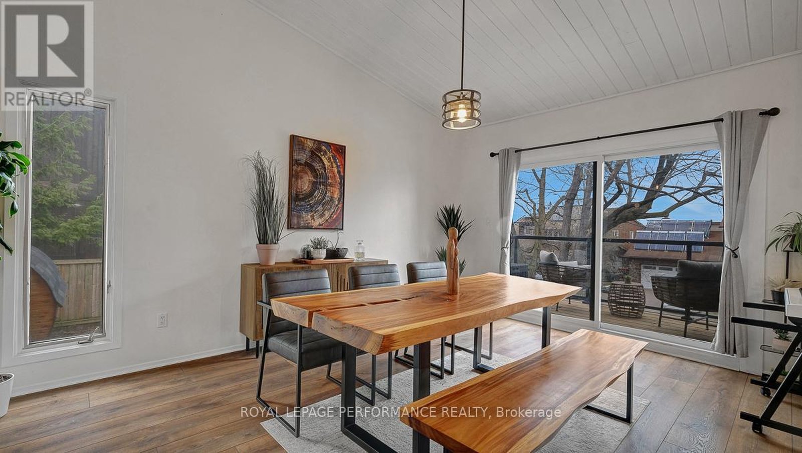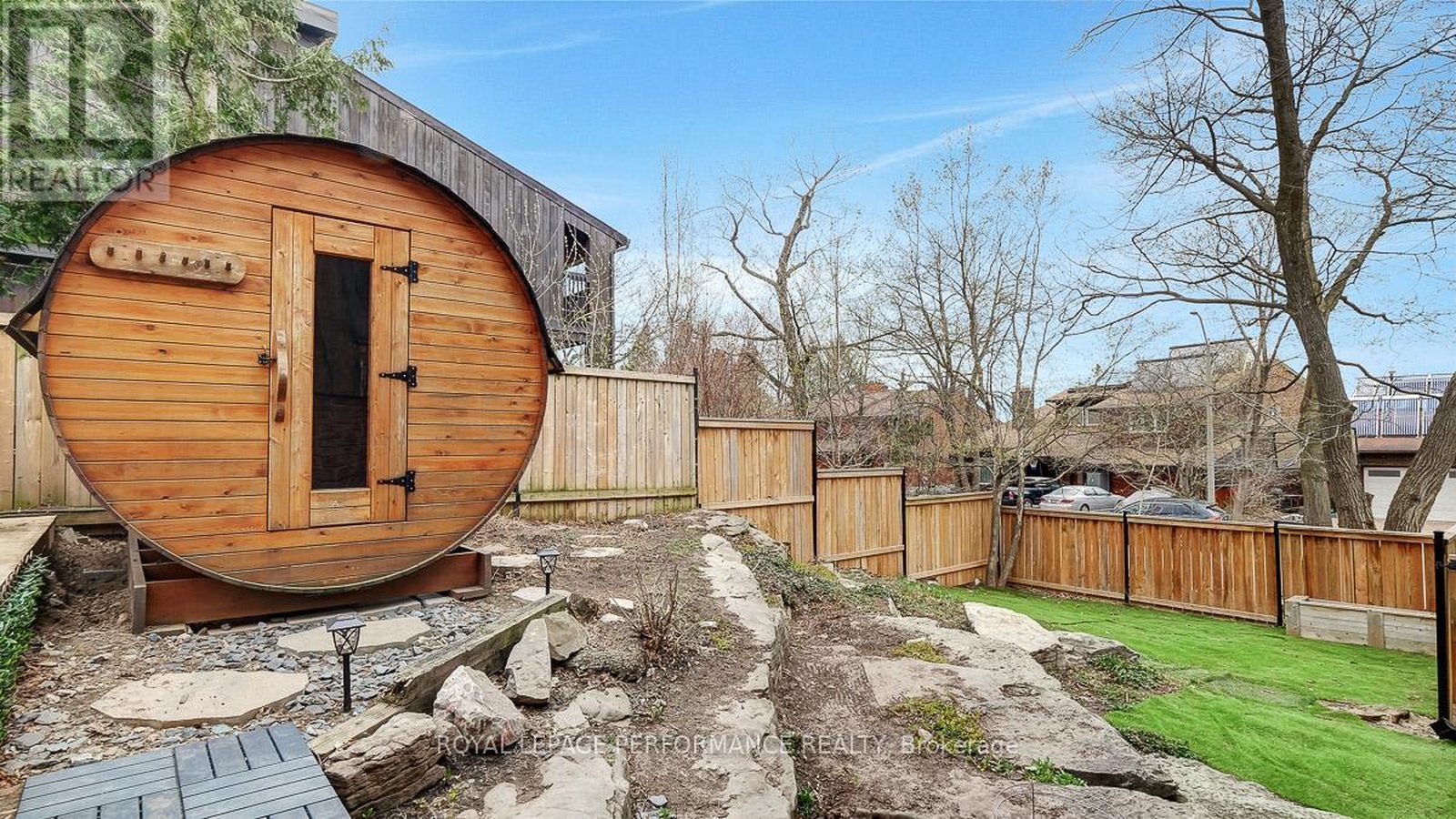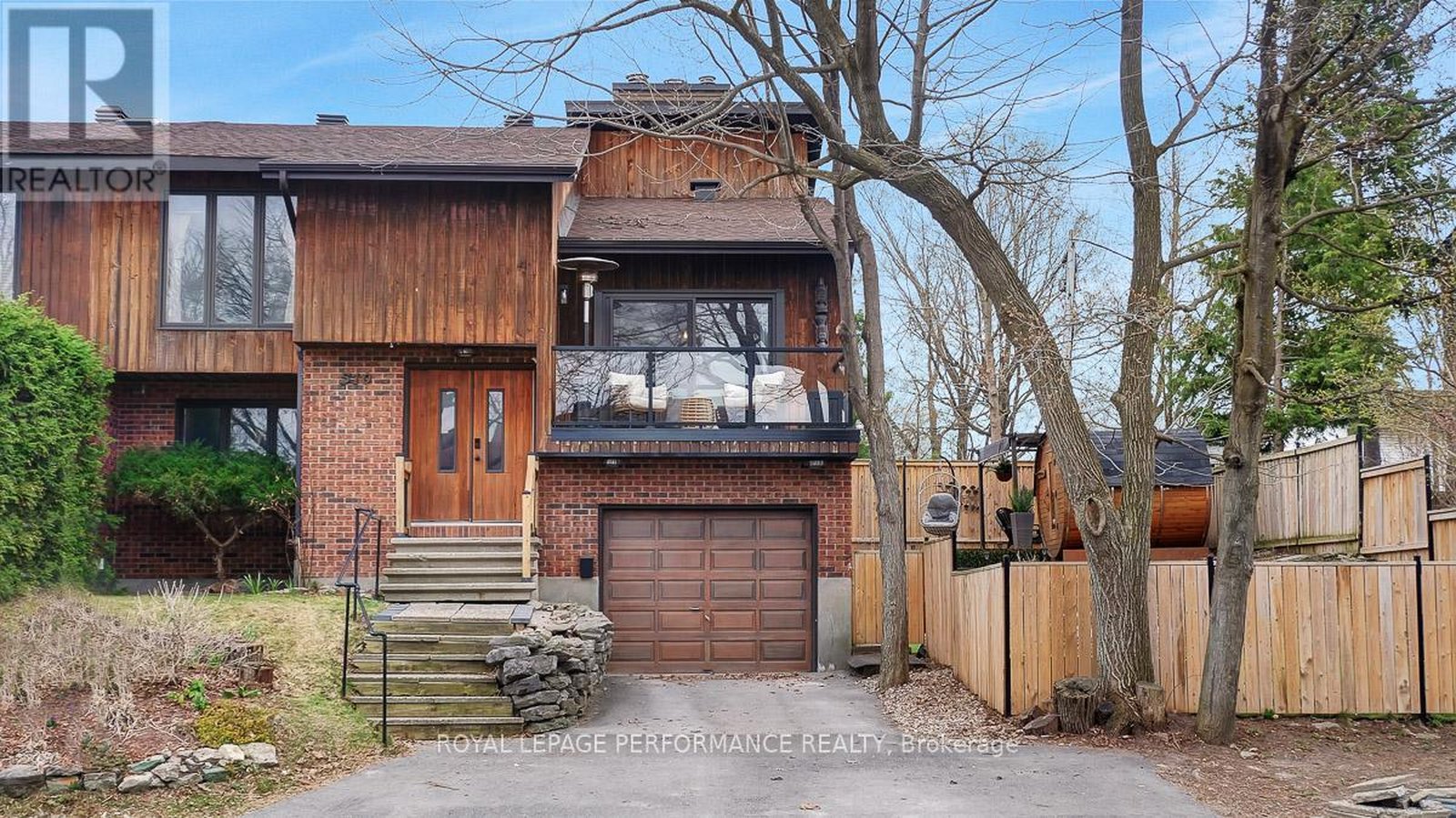 Nestled on a quiet crescent with no through traffic in CFB Rockcliffe, this 2336 sq.ft mid-century modern 4bed/4bath semi-detached infill is the perfect fit for the design oriented buyer who wants a spacious, thoughtfully updated, and architecturally interesting home that perfectly incorporates indoor and outdoor living. Warm and inviting front foyer with impressive sightlines of the open staircase and cathedral ceilings. Stunning chef's kitchen with sleek low-profile black cabinetry, quartz countertops, stone backsplash, stainless steel appliances, and oversized centre island ideal for anyone who loves to entertain. Bright and airy open-concept living area with gas fireplace, stone accent wall, and patio doors that lead to outdoor living area. Striking sun-soaked dining room with vaulted ceilings, wood-burning fireplace and lovely balcony. Convenient main floor powder room. Versatile main floor bedroom ideal for guests, gym or a tucked away home office. Spacious primary bedroom retreat with walk-in closet and spa-like 3-piece ensuite with oversized vanity and walk-in shower. Well-proportioned secondary bedrooms. Updated main bathroom. Practical second floor laundry room. Fully-finished lower-level is the ideal space for guests, teenager or to enjoy quality family time with the cozy rec-room, remodelled 3-piece bathroom with oversized walk-in shower, and room for the in-laws. Inside entry to your 1-car attached garage with electric car outlet. Fully-fenced outdoor living space with patio, barrel sauna, tiered garden beds, and mature vegetation. Take advantage of this convenient central location on the perched next to the newly built sub-division at Wateridge Village. Easy access to the Montfort Hospital, CMHC, CSIS, NRC Headquarters, and just a short commute from the Nation's Capital downtown core.