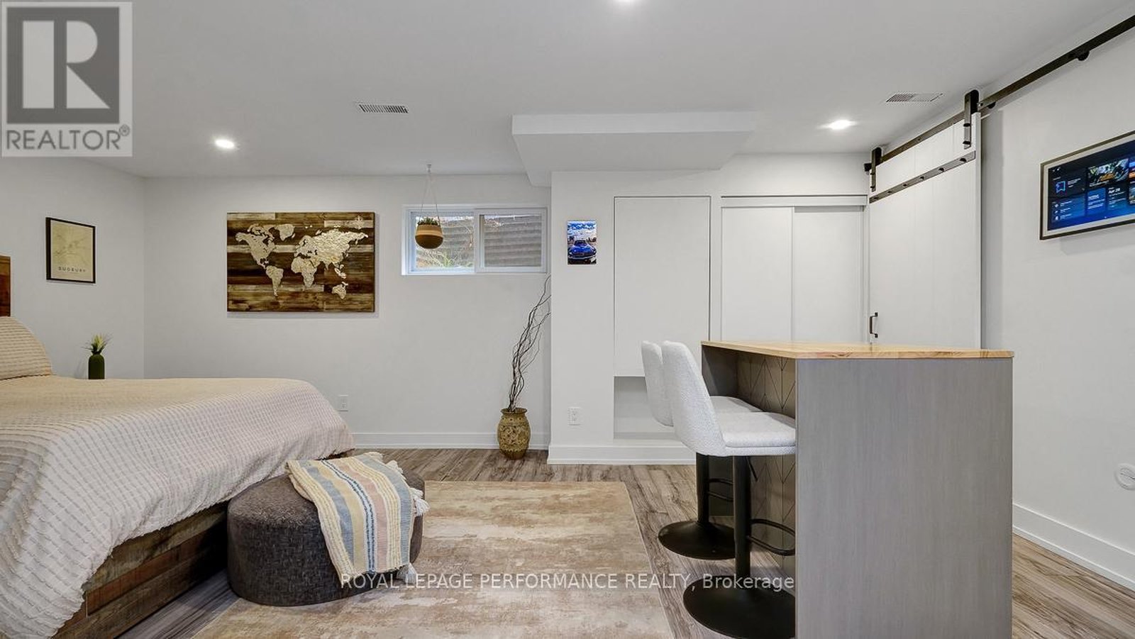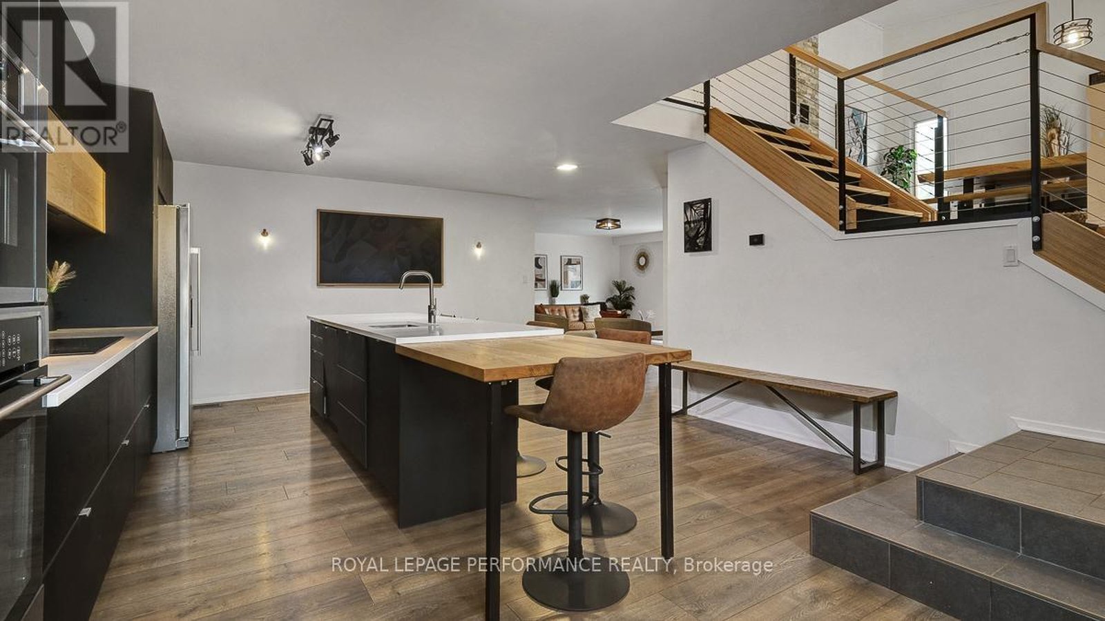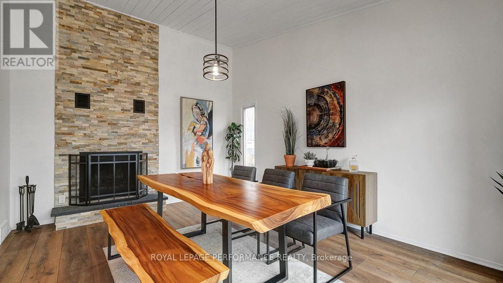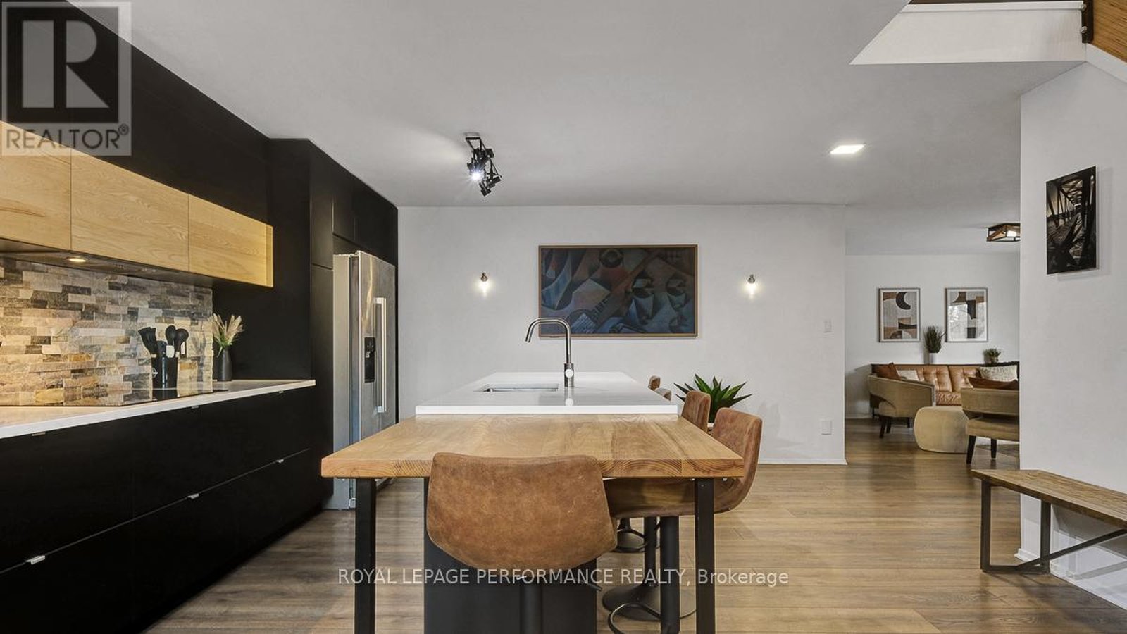 Nestled on a quiet crescent with no through traffic in CFB Rockcliffe, this 2336 sq.ft mid-century modern 4bed/4bath semi-detached infill is the perfect fit for the design oriented buyer who wants a spacious, thoughtfully updated, and architecturally interesting home that perfectly incorporates indoor and outdoor living. Warm and inviting front foyer with impressive sightlines of the open staircase and cathedral ceilings. Stunning chef's kitchen with sleek low-profile black cabinetry, quartz countertops, stone backsplash, stainless steel appliances, and oversized centre island ideal for anyone who loves to entertain. Bright and airy open-concept living area with gas fireplace, stone accent wall, and patio doors that lead to outdoor living area. Striking sun-soaked dining room with vaulted ceilings, wood-burning fireplace and lovely balcony. Convenient main floor powder room. Versatile main floor bedroom ideal for guests, gym or a tucked away home office. Spacious primary bedroom retreat with walk-in closet and spa-like 3-piece ensuite with oversized vanity and walk-in shower. Well-proportioned secondary bedrooms. Updated main bathroom. Practical second floor laundry room. Fully-finished lower-level is the ideal space for guests, teenager or to enjoy quality family time with the cozy rec-room, remodelled 3-piece bathroom with oversized walk-in shower, and room for the in-laws. Inside entry to your 1-car attached garage with electric car outlet. Fully-fenced outdoor living space with patio, barrel sauna, tiered garden beds, and mature vegetation. Take advantage of this convenient central location on the perched next to the newly built sub-division at Wateridge Village. Easy access to the Montfort Hospital, CMHC, CSIS, NRC Headquarters, and just a short commute from the Nation's Capital downtown core.
