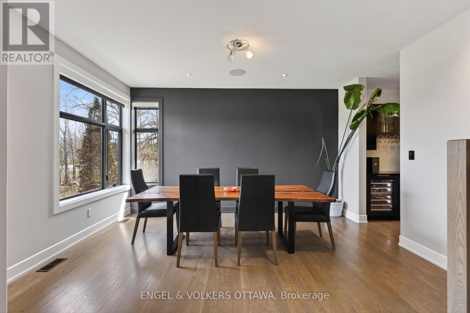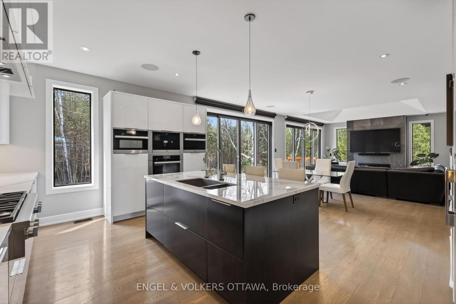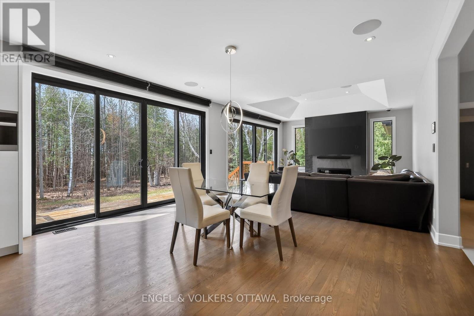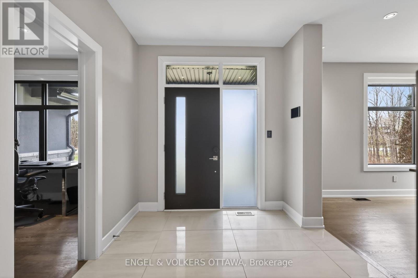 234 Ridgemont Drive is a custom-built modern home in Ashton - 15 minutes from Kanata, 10 from Carleton Place and Stittsville, but a world away from any of them. Set on 1.27 acres with 155 feet of frontage and 345 feet of depth, this is one of the larger, more private lots on Ridgemont - surrounded by mature tree privacy, with a long private drive opening to a three-car attached garage. Purpose-built in 2017 with just under 3,000 sq ft of above-grade living space and the kind of natural light that only comes from a home designed once, by people who knew exactly what they wanted. The kitchen was designed for people who actually cook. High-end cabinetry, a full Miele and Jenn-Air package - integrated side-by-side fridge/freezer, built-in oven, speed oven, espresso maker, warming drawer, and microwave. A six-burner gas range with pot filler and hood anchors the cooking wall. Quartz counters and backsplash, abundant drawers, a window over the prep space. Off the kitchen, a butler's pantry with beverage and wine fridges, plus a custom wine room. Open from the kitchen, the family room features a coffered ceiling, gas fireplace with custom stone surround, and two massive patio doors leading to a large deck. Hardwood throughout, large-scale tile in the foyer. Lutron HomeWorks lighting, integrated speakers, motorized window coverings on every window, and accent lighting up the staircase. Upstairs, the primary is a true retreat - walk-in closet, custom focal wall, spa-style ensuite with oversized shower and soaker tub, views over the back. Three more generous bedrooms. Below, nearly 1,700 sq ft of unspoiled basement with high ceilings and bath rough-in - a blank canvas for a gym, theatre, or in-law suite. The deck overlooks a fully treed, farm-bordered lot. Room for a pool, hot tub, or winter skating rink. Full irrigation, mature landscaping. Be in Carleton Place in 10mins and Kanata in 15. You're not trading convenience for acreage - you're getting both.