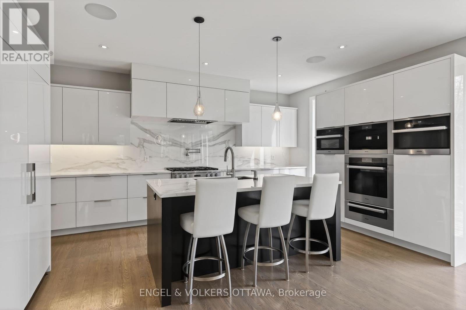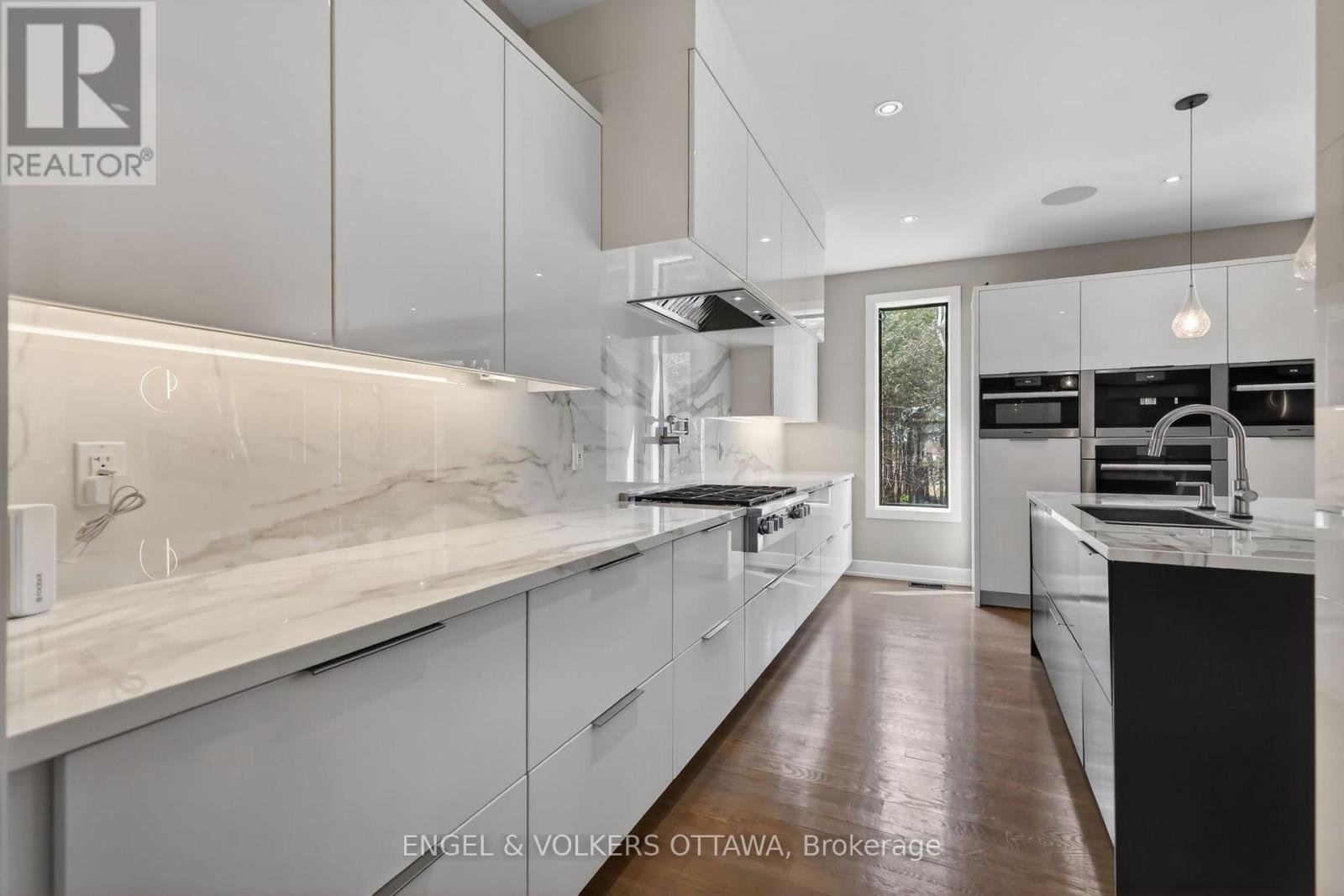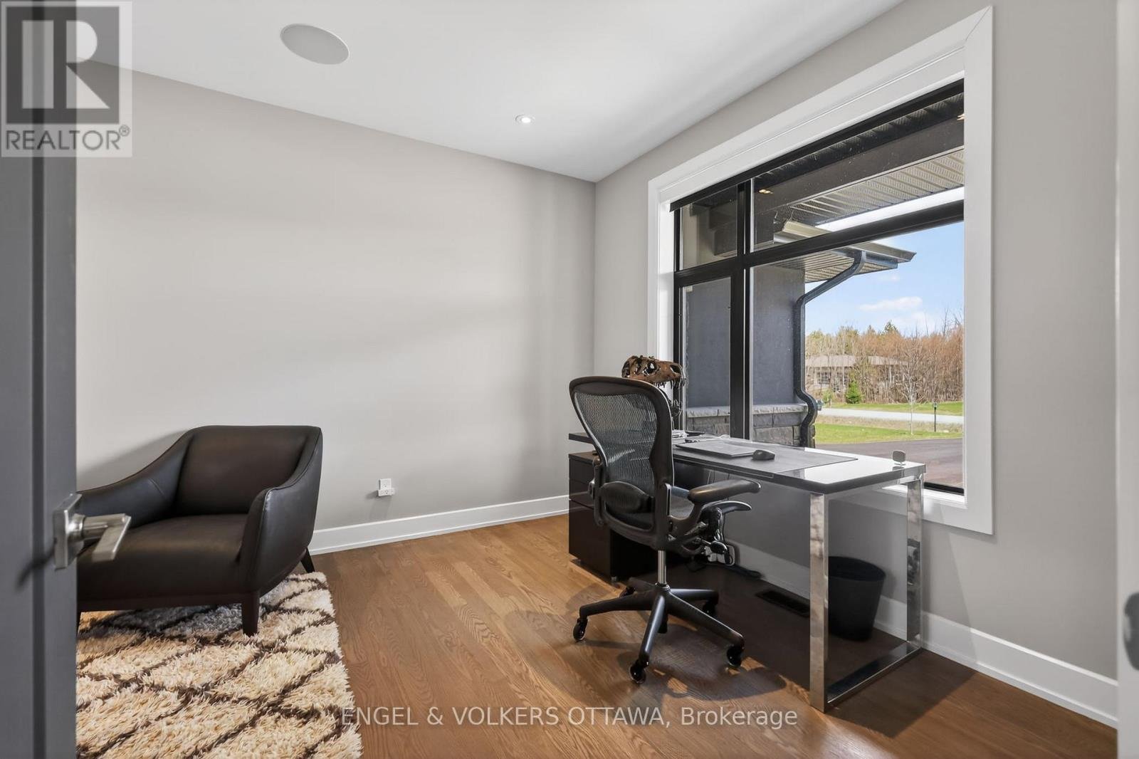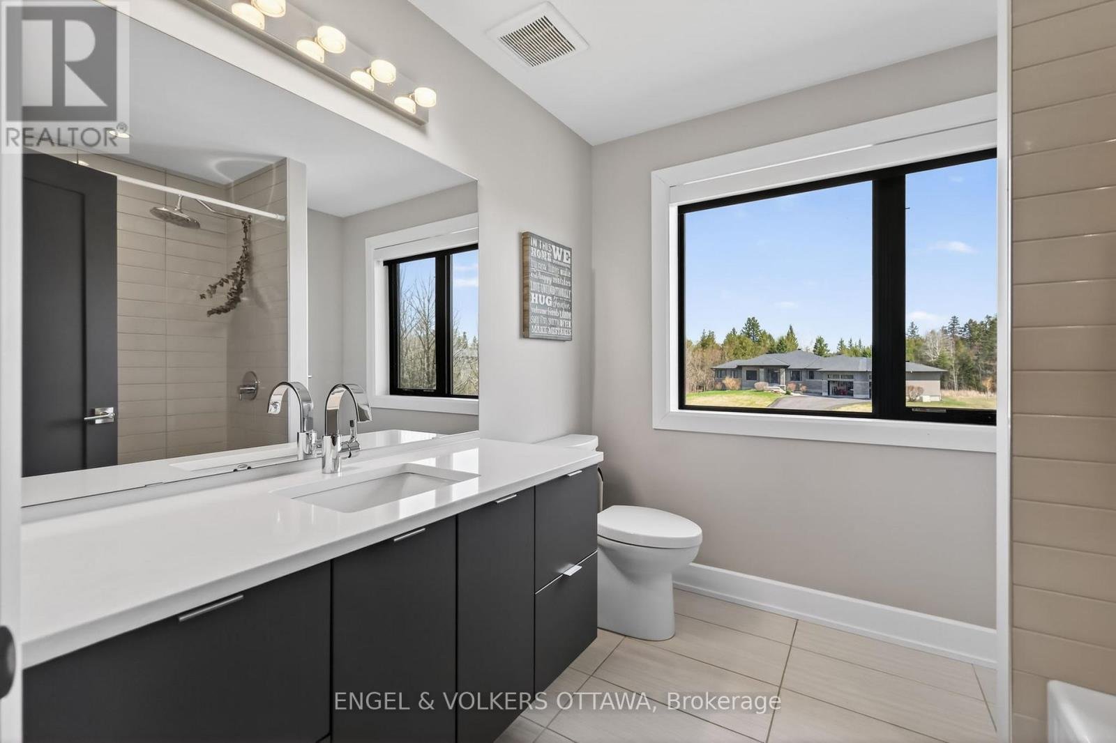 234 Ridgemont Drive is a custom-built modern home in Ashton - 15 minutes from Kanata, 10 from Carleton Place and Stittsville, but a world away from any of them. Set on 1.27 acres with 155 feet of frontage and 345 feet of depth, this is one of the larger, more private lots on Ridgemont - surrounded by mature tree privacy, with a long private drive opening to a three-car attached garage. Purpose-built in 2017 with just under 3,000 sq ft of above-grade living space and the kind of natural light that only comes from a home designed once, by people who knew exactly what they wanted. The kitchen was designed for people who actually cook. High-end cabinetry, a full Miele and Jenn-Air package - integrated side-by-side fridge/freezer, built-in oven, speed oven, espresso maker, warming drawer, and microwave. A six-burner gas range with pot filler and hood anchors the cooking wall. Quartz counters and backsplash, abundant drawers, a window over the prep space. Off the kitchen, a butler's pantry with beverage and wine fridges, plus a custom wine room. Open from the kitchen, the family room features a coffered ceiling, gas fireplace with custom stone surround, and two massive patio doors leading to a large deck. Hardwood throughout, large-scale tile in the foyer. Lutron HomeWorks lighting, integrated speakers, motorized window coverings on every window, and accent lighting up the staircase. Upstairs, the primary is a true retreat - walk-in closet, custom focal wall, spa-style ensuite with oversized shower and soaker tub, views over the back. Three more generous bedrooms. Below, nearly 1,700 sq ft of unspoiled basement with high ceilings and bath rough-in - a blank canvas for a gym, theatre, or in-law suite. The deck overlooks a fully treed, farm-bordered lot. Room for a pool, hot tub, or winter skating rink. Full irrigation, mature landscaping. Be in Carleton Place in 10mins and Kanata in 15. You're not trading convenience for acreage - you're getting both.