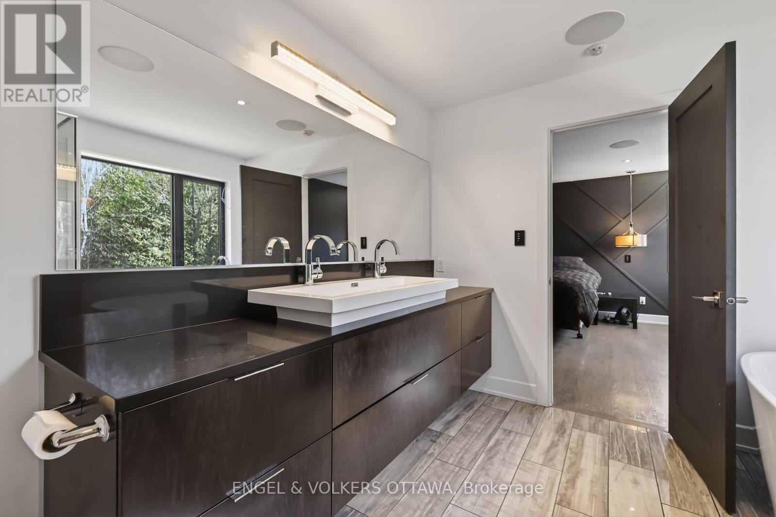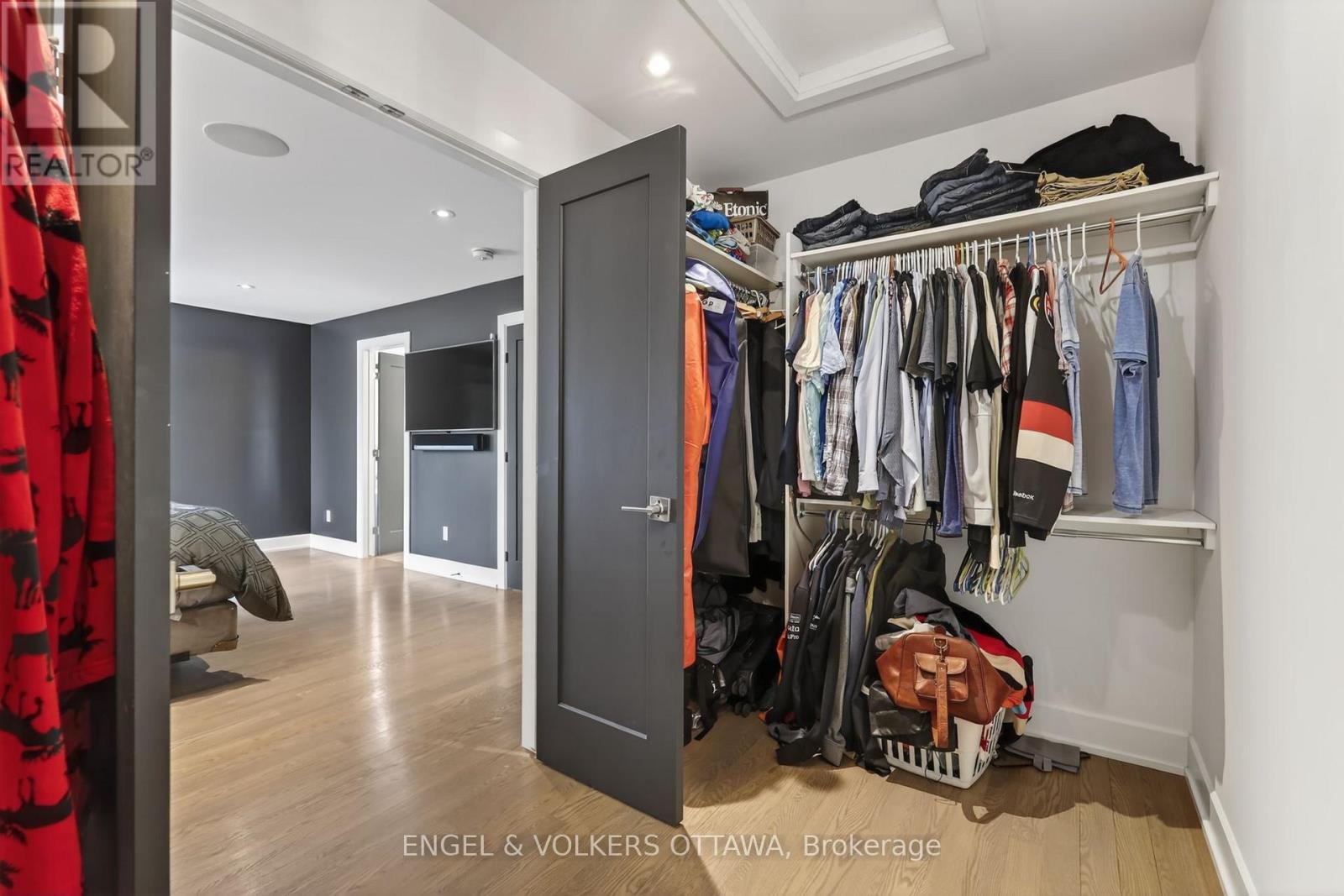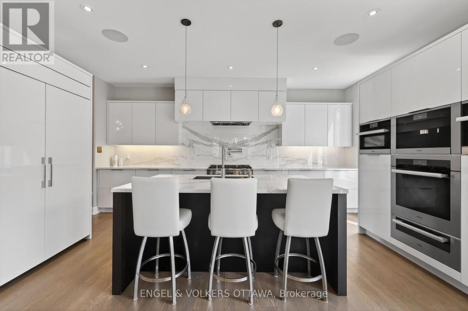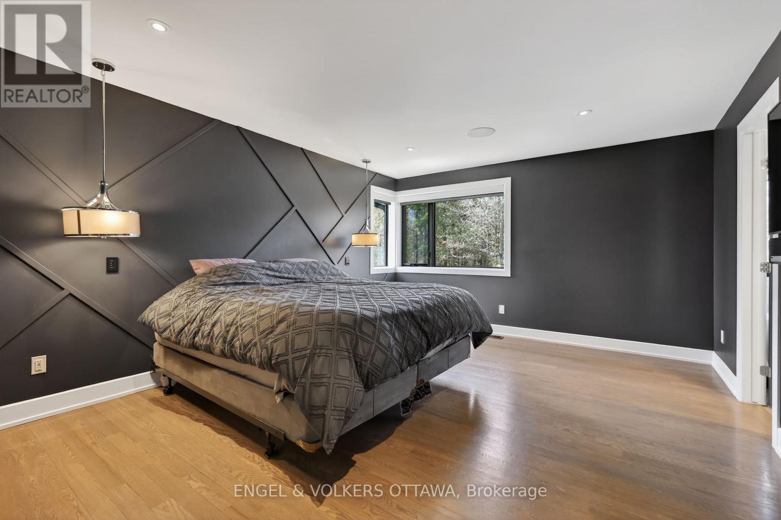 234 Ridgemont Drive is a custom-built modern home in Ashton - 15 minutes from Kanata, 10 from Carleton Place and Stittsville, but a world away from any of them. Set on 1.27 acres with 155 feet of frontage and 345 feet of depth, this is one of the larger, more private lots on Ridgemont - surrounded by mature tree privacy, with a long private drive opening to a three-car attached garage. Purpose-built in 2017 with just under 3,000 sq ft of above-grade living space and the kind of natural light that only comes from a home designed once, by people who knew exactly what they wanted. The kitchen was designed for people who actually cook. High-end cabinetry, a full Miele and Jenn-Air package - integrated side-by-side fridge/freezer, built-in oven, speed oven, espresso maker, warming drawer, and microwave. A six-burner gas range with pot filler and hood anchors the cooking wall. Quartz counters and backsplash, abundant drawers, a window over the prep space. Off the kitchen, a butler's pantry with beverage and wine fridges, plus a custom wine room. Open from the kitchen, the family room features a coffered ceiling, gas fireplace with custom stone surround, and two massive patio doors leading to a large deck. Hardwood throughout, large-scale tile in the foyer. Lutron HomeWorks lighting, integrated speakers, motorized window coverings on every window, and accent lighting up the staircase. Upstairs, the primary is a true retreat - walk-in closet, custom focal wall, spa-style ensuite with oversized shower and soaker tub, views over the back. Three more generous bedrooms. Below, nearly 1,700 sq ft of unspoiled basement with high ceilings and bath rough-in - a blank canvas for a gym, theatre, or in-law suite. The deck overlooks a fully treed, farm-bordered lot. Room for a pool, hot tub, or winter skating rink. Full irrigation, mature landscaping. Be in Carleton Place in 10mins and Kanata in 15. You're not trading convenience for acreage - you're getting both.