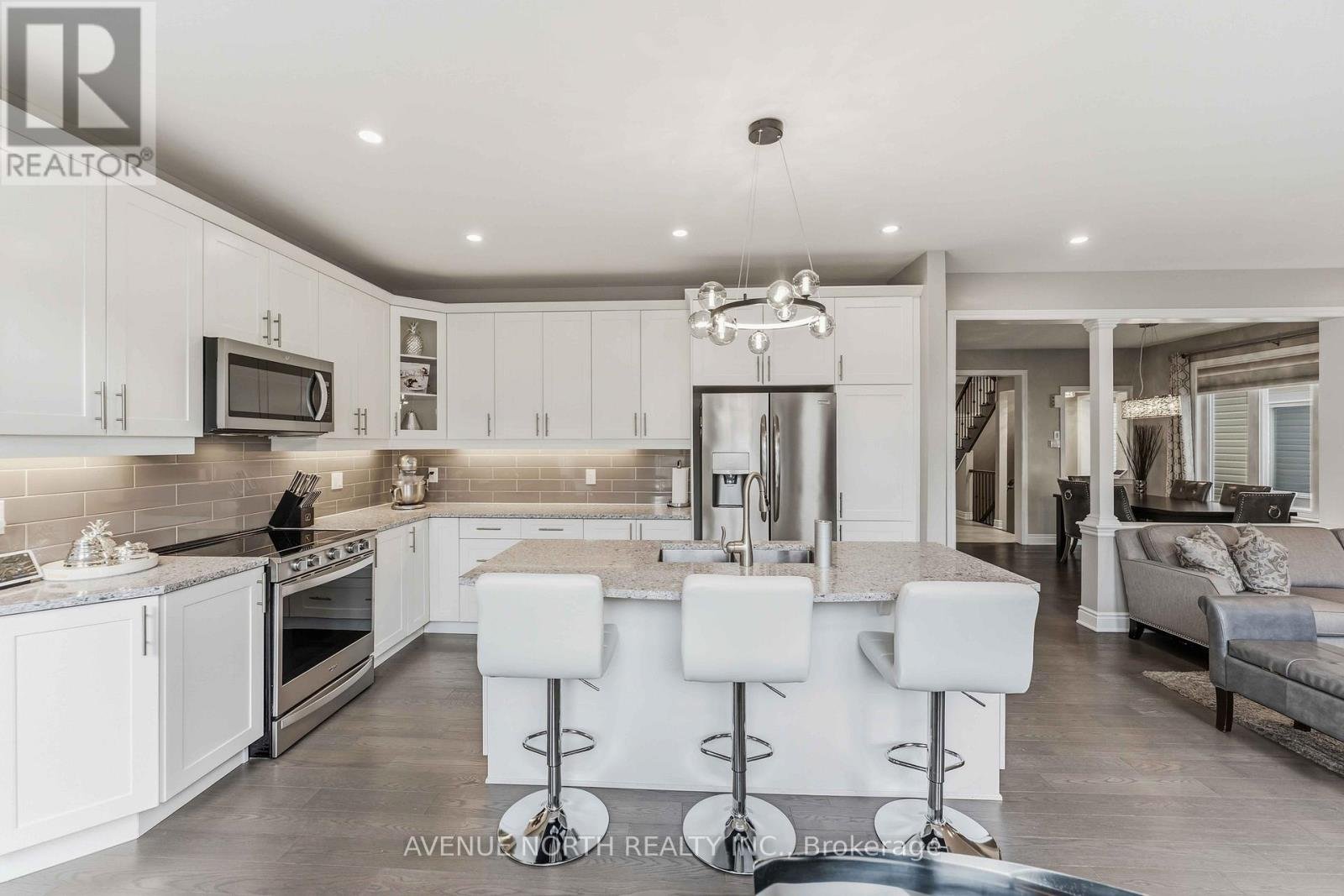 Welcome to this beautifully upgraded and well-maintained family home offering a perfect blend of style, functionality, and modern comfort. With great curb appeal, a double-car garage, and a thoughtfully designed layout, this home is move-in ready. Step inside to a bright and inviting foyer featuring a striking curved staircase and 9-foot ceilings on the main level. The open-concept layout showcases hardwood flooring and welldefined living spaces, including a formal dining area and a comfortable living room highlighted by a custom stone feature wall and cozy gas fireplace. Large windows throughout bring in an abundance of natural light. The kitchen is both stylish and functional, featuring white cabinetry, quartz countertops, stainless steel appliances, a modern backsplash, and a centre island with seating-ideal for everyday living and entertaining. The adjacent breakfast area overlooks the backyard. Upstairs, you'll find four bedrooms plus a versatile playroom, offering flexible space for family living, a media area, or a kids' zone. The primary bedroom provides a comfortable retreat, while the bathrooms are thoughtfully designed with quartz countertops and double vanities, offering both style and convenience. The main floor also includes a private office, perfect for working from home or quiet study. The unfinished basement offers excellent potential to customize additional living space to suit your needs. Located in a desirable, family-friendly neighborhood close to schools, parks, and amenities, this home offers a great balance of space, upgrades, and everyday practicality. ** This is a linked property.**