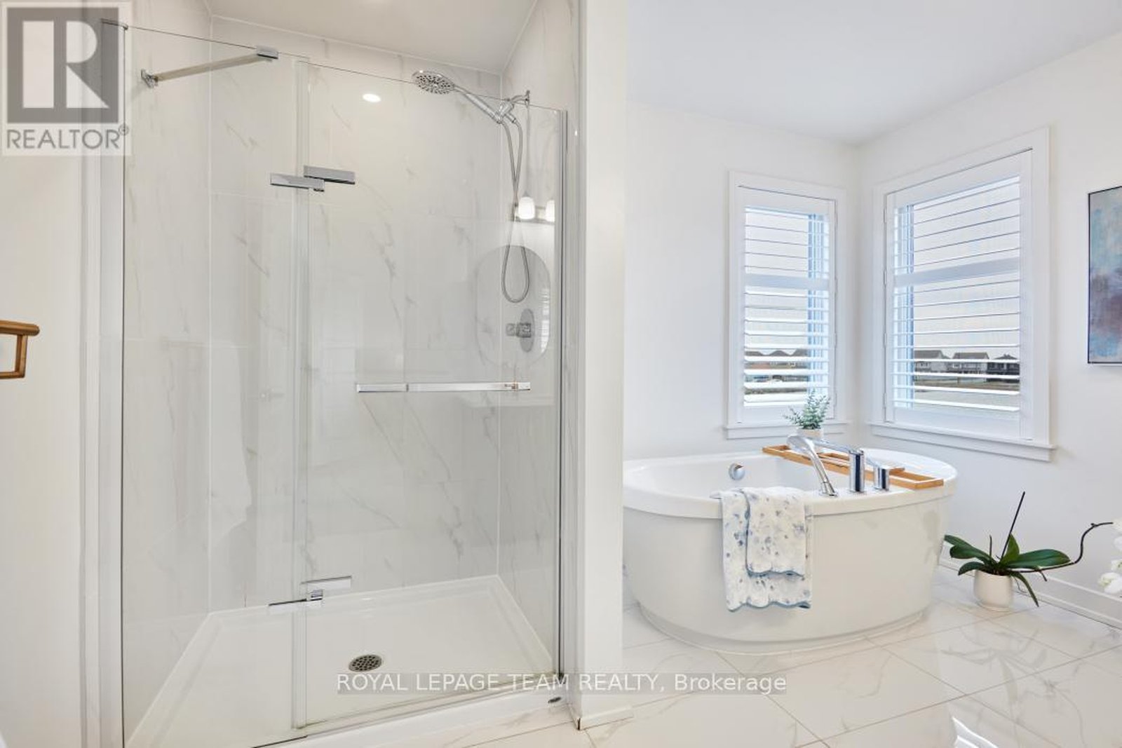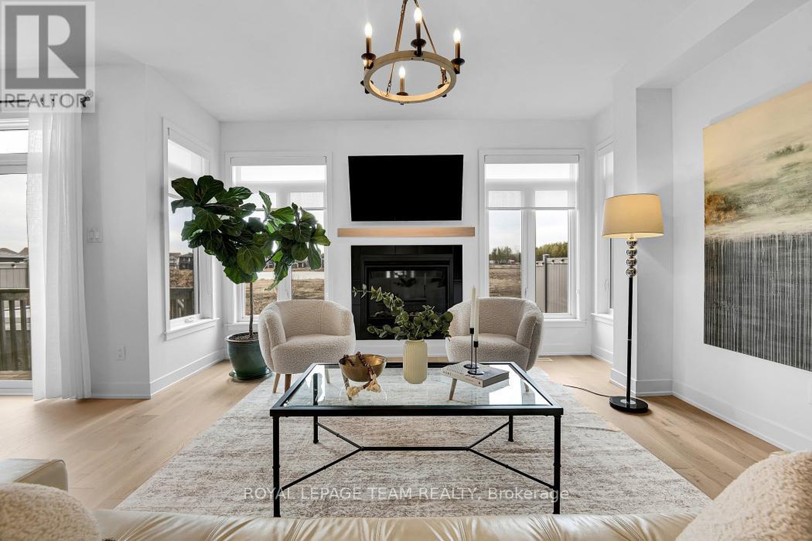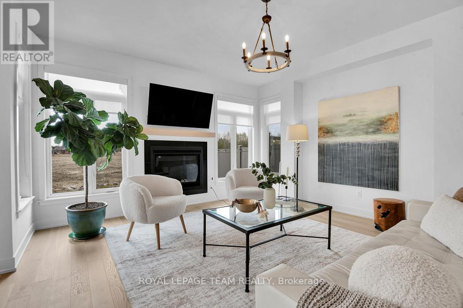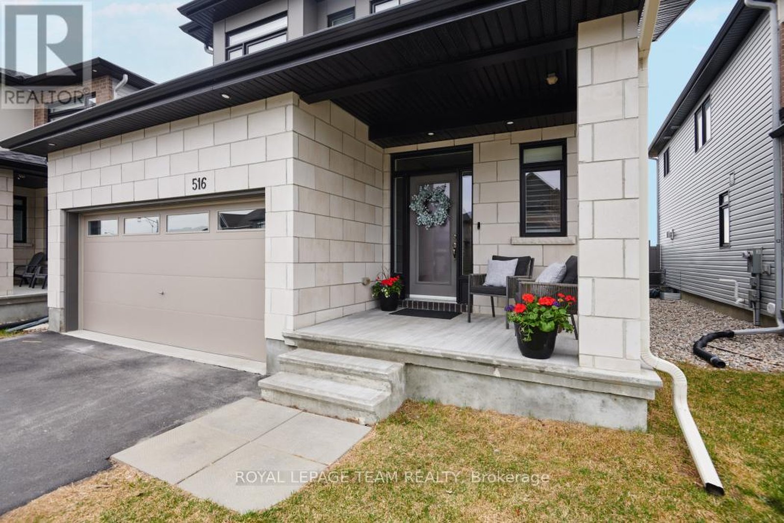 Welcome to 516 Bobolink Ridge! A pristine family home packed with luxury upgrades and ample quality of life improvements. Set on a quiet street, on a premium lot backing onto a huge park (coming soon!), and situated in Stittsville's desirable, family friendly Westwood neighbourhood, this airy 4 bed/3 bath sleek 2021 build is sure to impress. A bright and inviting main floor features a dream kitchen with high end GE Café appliances, upgraded crisp white cabinetry with copper accents, and full slab quartz countertops. Large windows bask the open living space in natural light, with solid white oak floors and fresh paint contrasting the upgraded fixtures and natural gas fireplace. Elevated living space, perfect for entertaining and everyday living, flowing effortlessly into the backyard for year round enjoyment; whether relaxing in the luxury Whirlpool spa, or backyard barbecuing with unobstructed views, the quality landscaped patio completes the outdoor space. Upstairs features three spacious bedrooms, including a primary suite with an ensuite finished with modern, cohesive details. Thoughtful lighting throughout the second level adds warmth and consistency to the space, with subtle accents. Lower level feels surprisingly open with 9ft ceilings, massive rec room space, plenty of storage, and 3pc rough-in! Comfort is covered year-round with a high-end forced air heat and A/C system, ducted Gen Aire humidifier, and an EV charger installed in the garage, adding everyday convenience. Proudly maintained and move-in ready, this home offers a great balance of comfort, style, and location in a community that continues to grow in popularity, not to mention great schools, all necessary amenities close by, off-leash dog runs, plus Trans Canada Trail just steps away! Don't miss out. Book your viewing today!