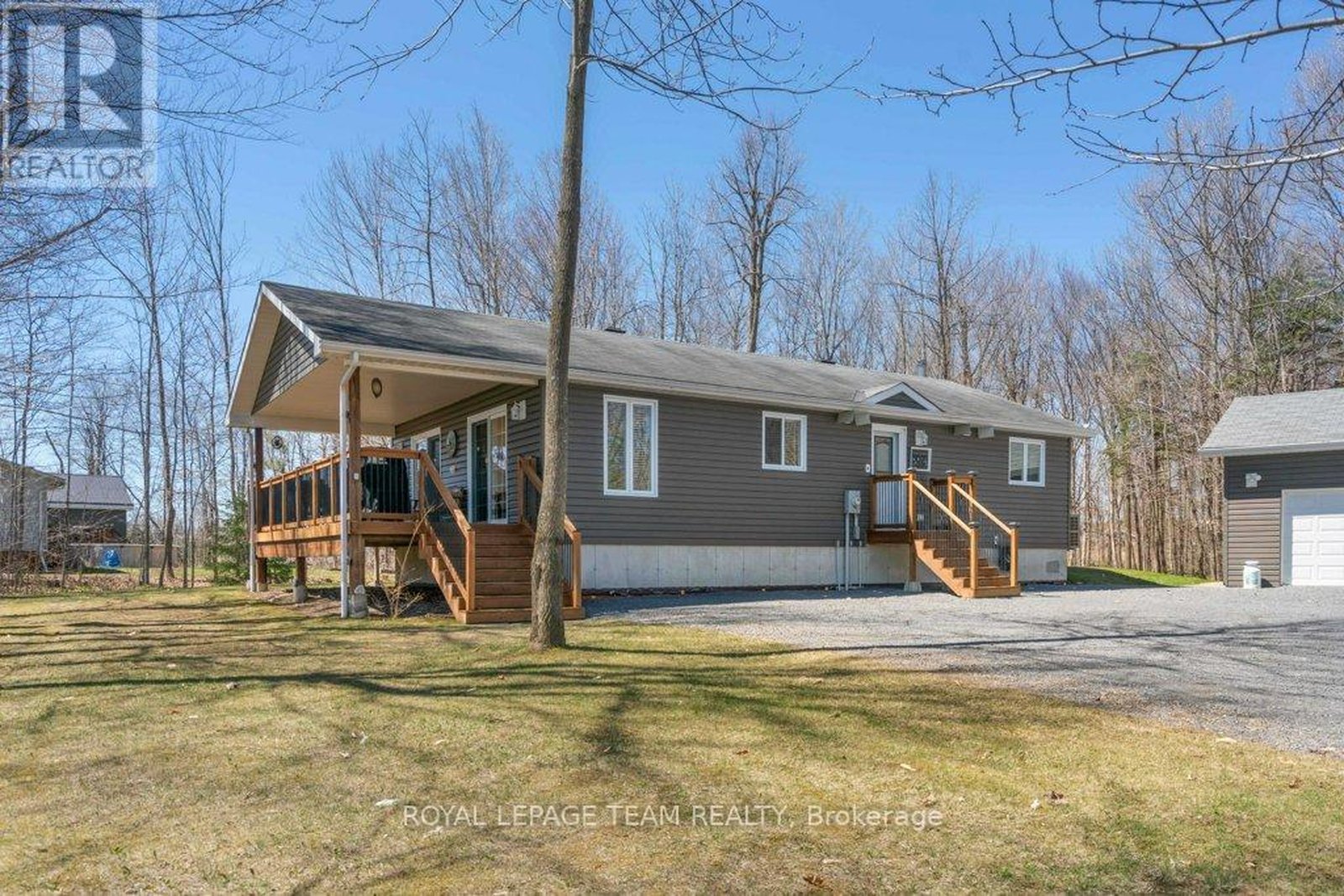 Set on an impressive 0.99-acre lot, this impeccably maintained, charming property offers the perfect blend of privacy, space, and functionality. Surrounded by mature trees that fill in beautifully during the warmer months, you'll enjoy a peaceful, tucked-away feel while still benefiting from a large driveway and ample parking for family, guests, or recreational vehicles. The inviting covered front porch with lighting is a perfect spot to entertain. A true highlight of the property is the incredible HEATED detached TRIPLE car garage/shop, featuring 9/8/7-foot doors with a deep first bay ideal for hobbyists, car enthusiasts, or anyone needing a versatile workspace. Inside, the home offers a warm and welcoming layout with thoughtful features throughout. The kitchen is both stylish and functional, complete with granite countertops, a generous island, and solid wood cabinetry, providing plenty of space for cooking and gathering. The main level is finished with durable laminate and vinyl flooring, making it both practical and easy to maintain. This home features two bedrooms on the main level and one downstairs and two bathrooms, including a spacious primary bedroom with its own 2-piece ensuite and walk-in closet and main floor laundry. A well-appointed 4-piece main bathroom serves the rest of the home. Additional conveniences include central vac and water treatment system, offering added comfort and peace of mind-even while connected to municipal water. A new (2026) Electric Furnace/Heat Pump/AC keeps the home comfortable and efficient all year long. A cozy propane cast iron stove adds both charm and efficiency. The partially finished basement adds an additional bedroom and presents a fantastic opportunity to expand your living space and bring your own vision to life-whether it's a recreation room, workshop, or additional storage. The main floor windows have all new window inserts throughout.(2024).