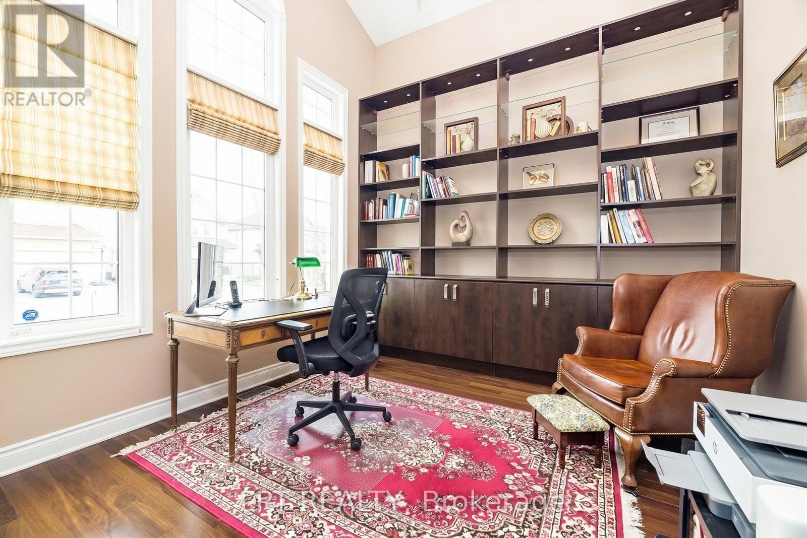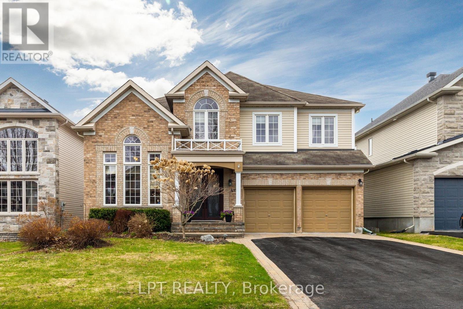 Elegant 4-bedroom, 4-bath luxury home in sought-after Stittsville, perfectly balancing formal sophistication with relaxed family living. A grand foyer with decorative glass double doors, tile and hardwood inlay, and columned entry sets a stunning first impression and draws you toward the dramatic centre staircase and open upper gallery. Formal living and dining rooms showcase rich hardwood flooring, detailed millwork and sparkling chandeliers, ideal for entertaining. At the heart of the home, a gourmet island kitchen with warm wood cabinetry, granite-surface counters, double wall oven and stainless steel appliances opens to a sun-filled eat-in area with banquette seating and to the inviting family room with striking tile-surround gas fireplace. Upstairs, the expansive primary retreat offers a sitting area, three-sided fireplace and spa-inspired ensuite. Additional bedrooms include a private ensuite and Jack-and-Jill bath, perfect for children, teens or guests. New deck and irrigation system in front. Close to parks, schools and highway. Do not delay, book your showing today!