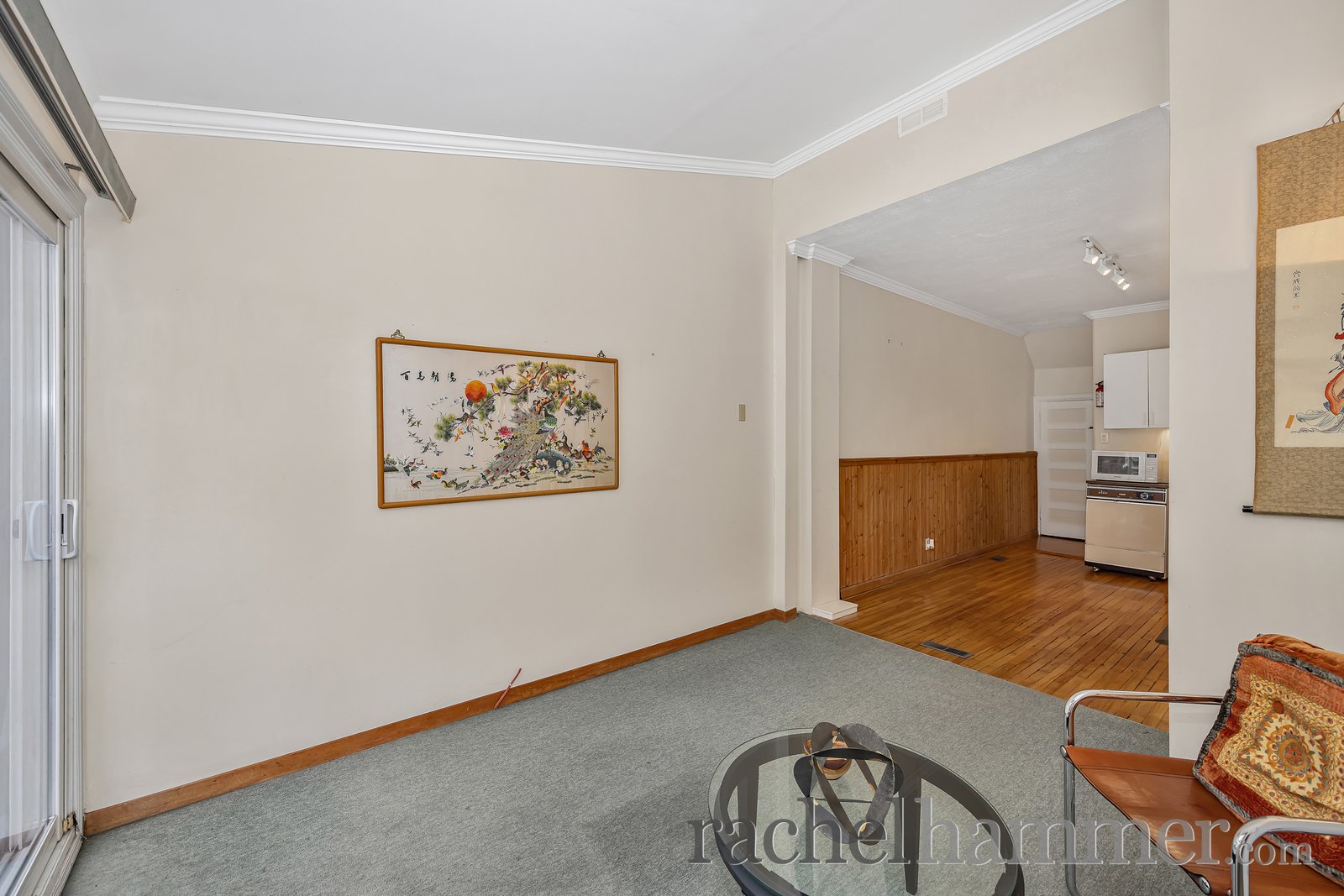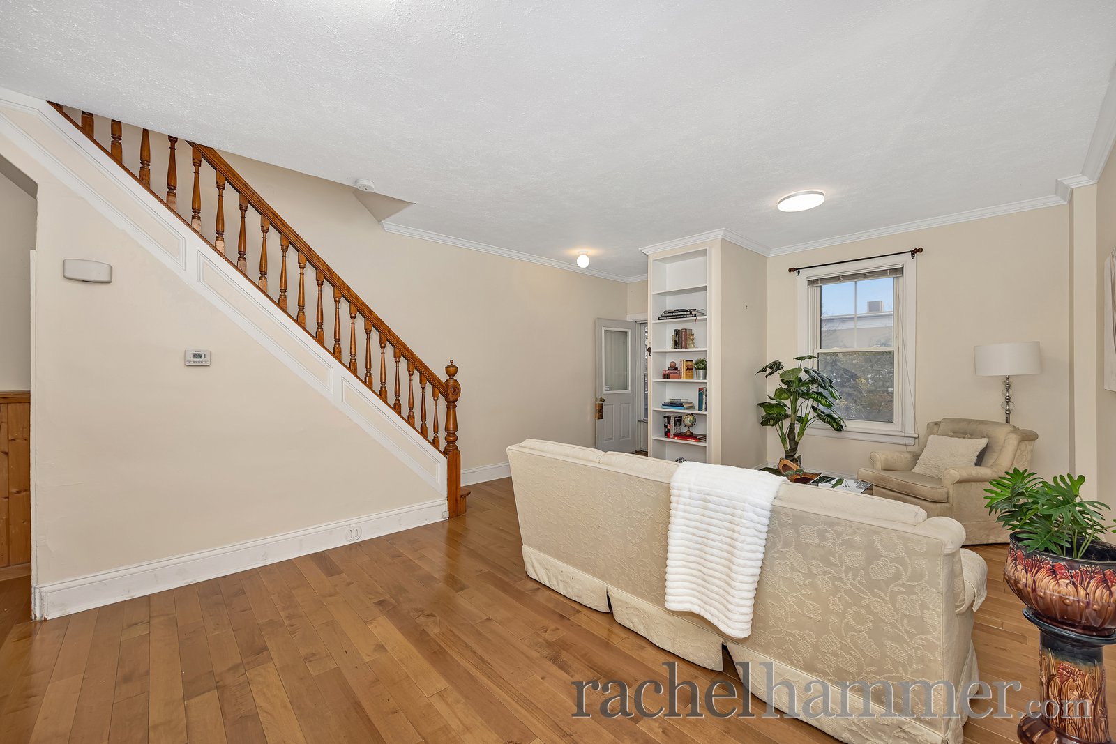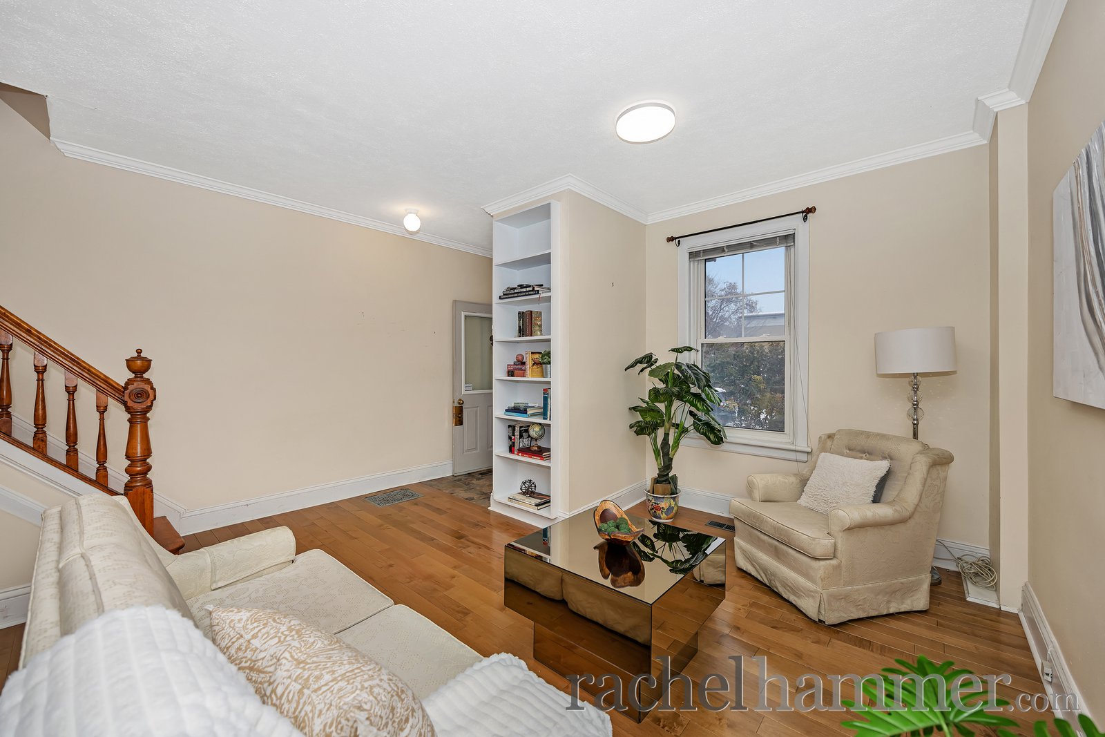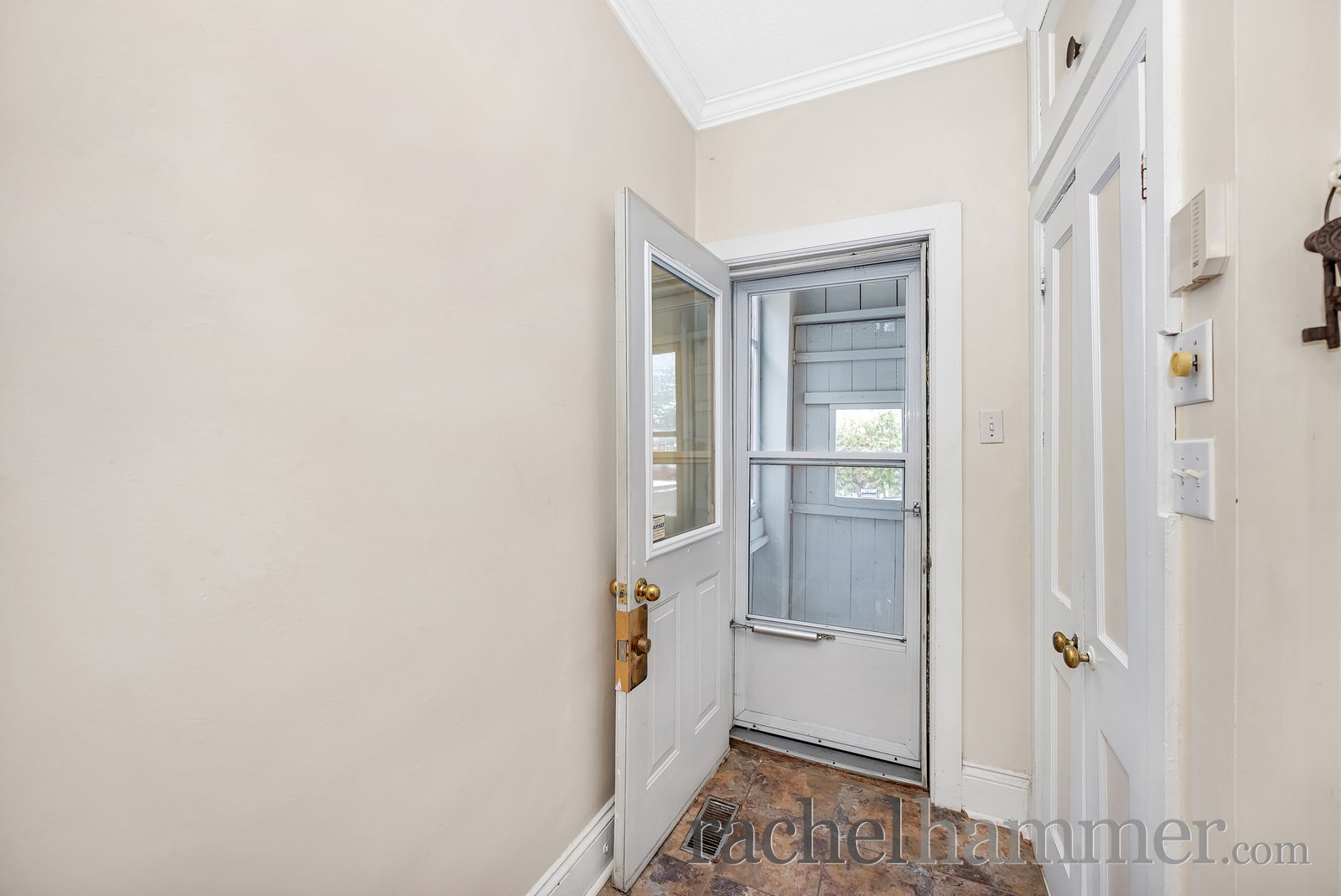 As we arrive at the home, you’re welcomed by a bright enclosed porch. It’s a wonderful transition space from outdoors to indoors. It sets the tone for the warmth and character you’ll find throughout the home.