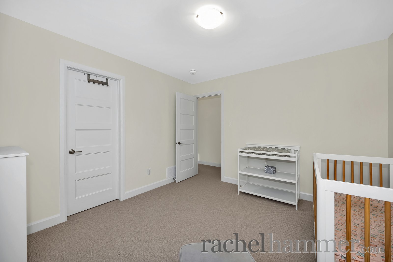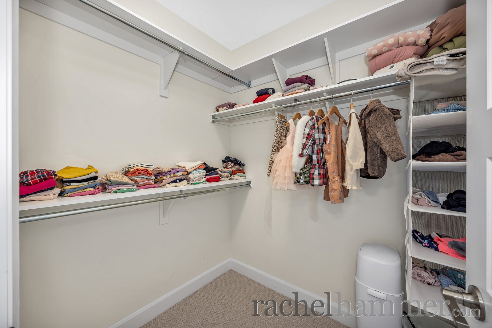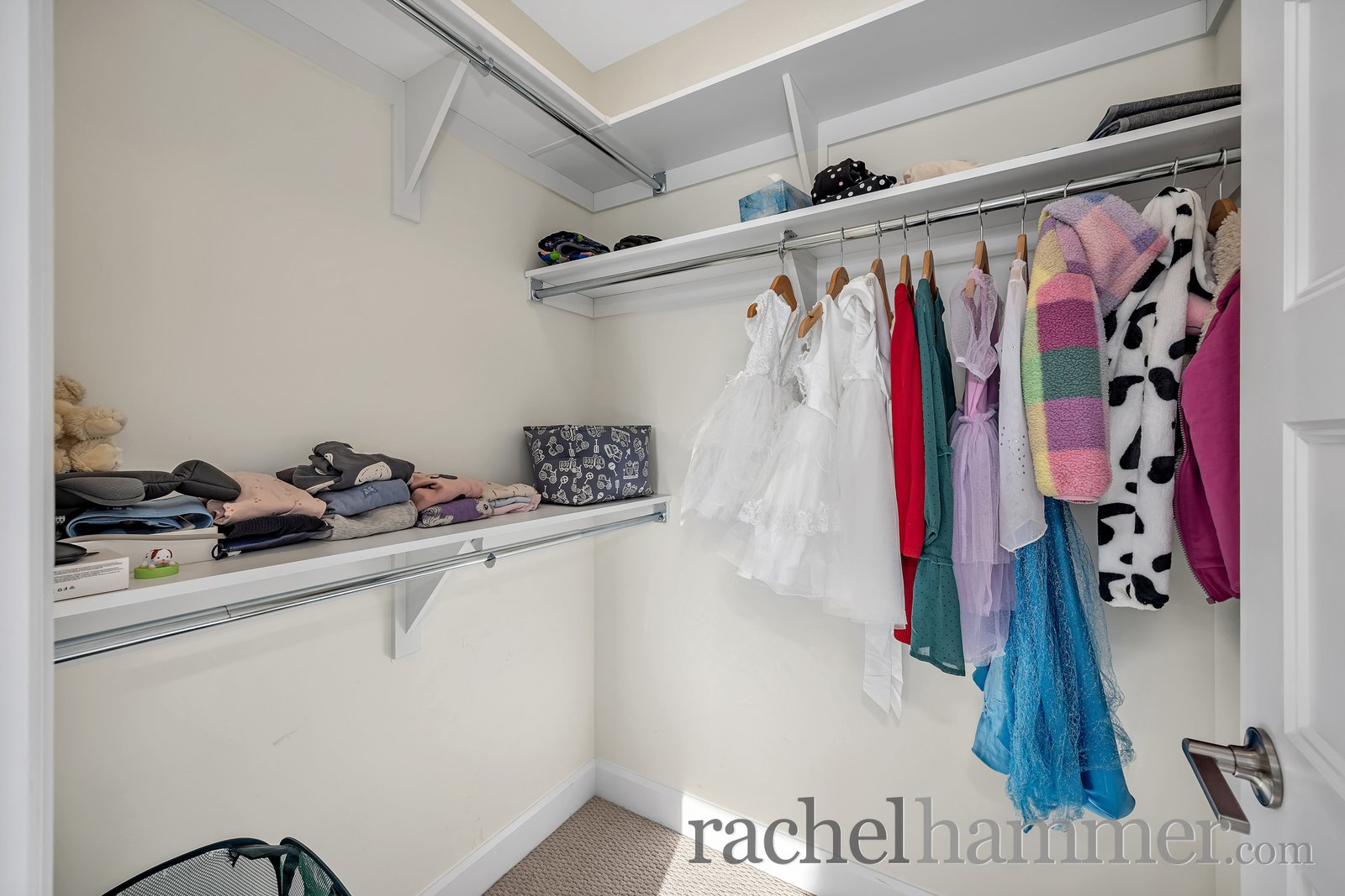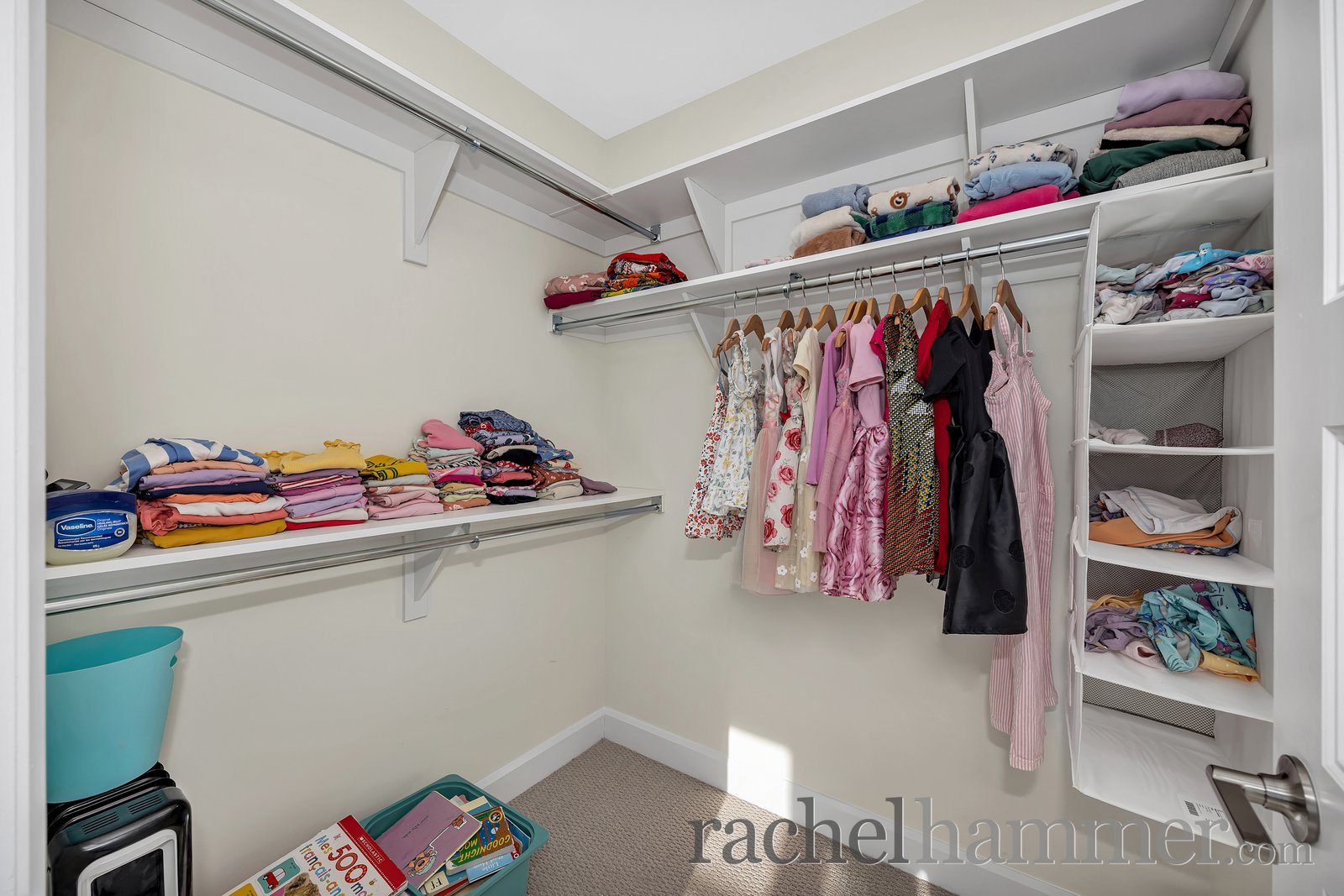Upstairs, you’ll find four spacious bedrooms, each secondary bedroom complete with its own walk-in closet. The main bathroom features modern fixtures, a tiled floor, and a tub/shower combination. The full laundry room is thoughtfully designed with cabinetry, a sink, folding counters, and plenty of space for drying clothes.
