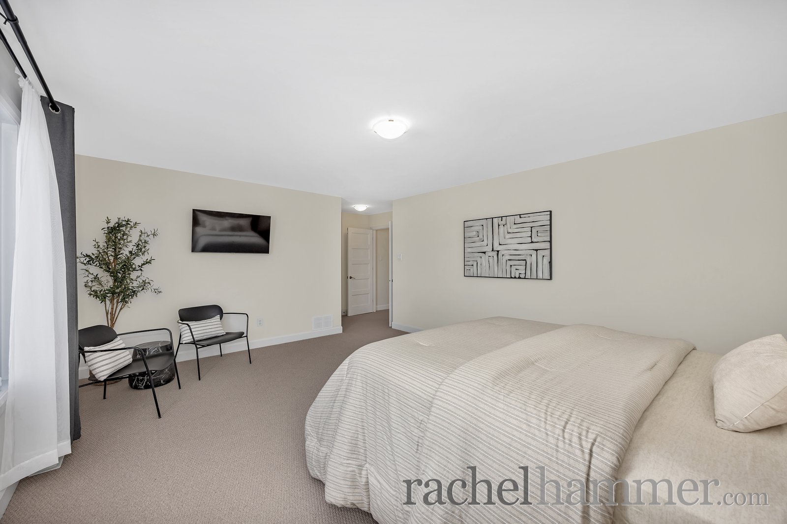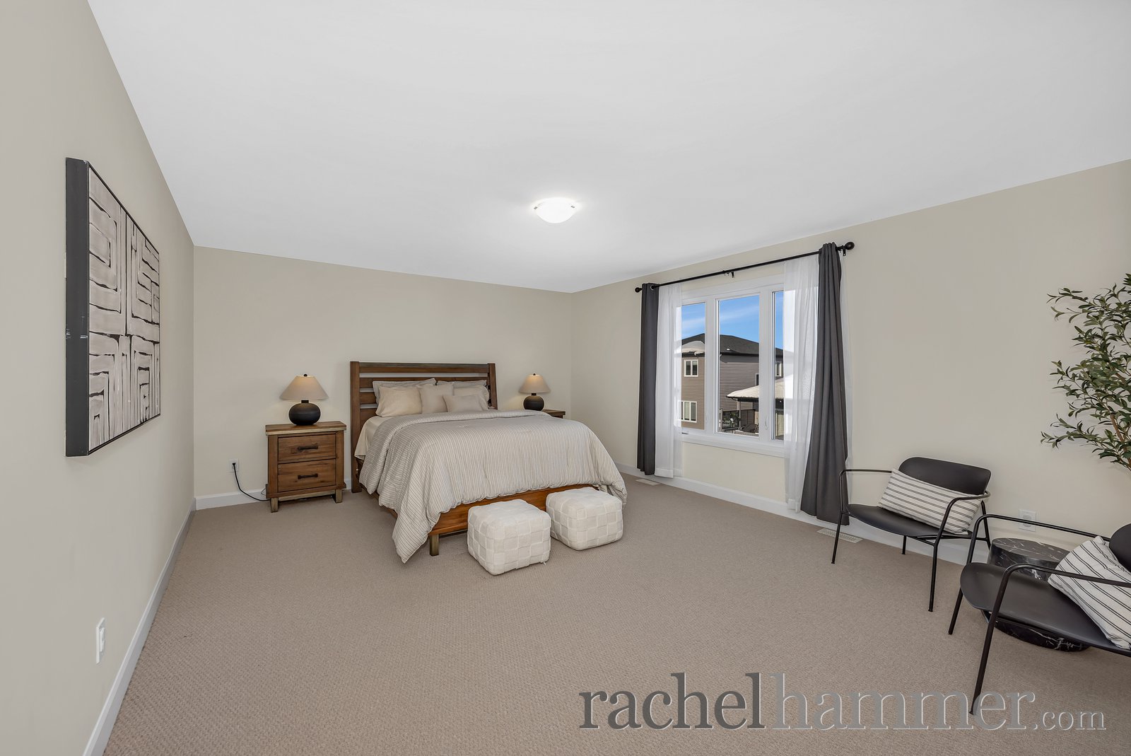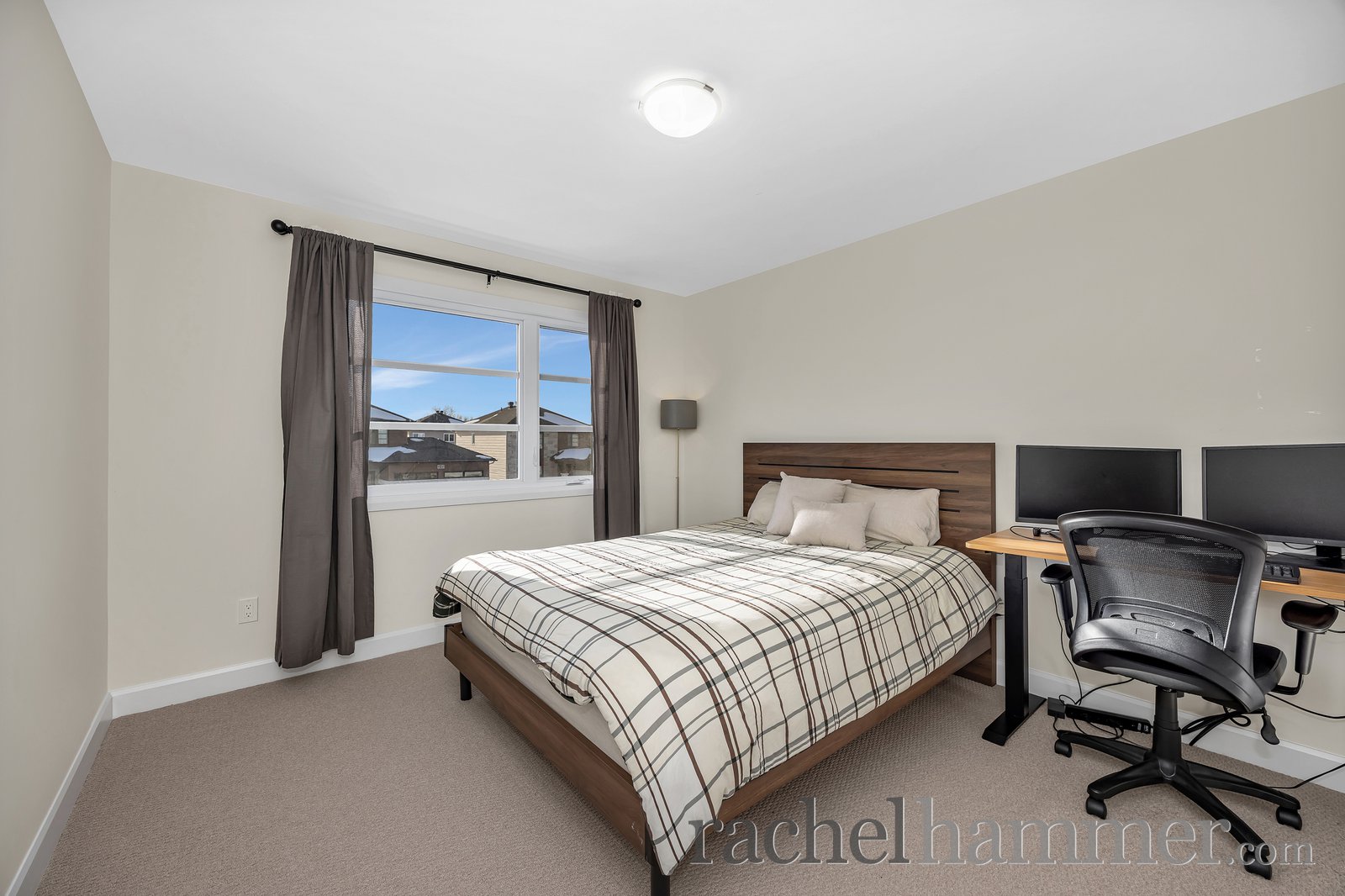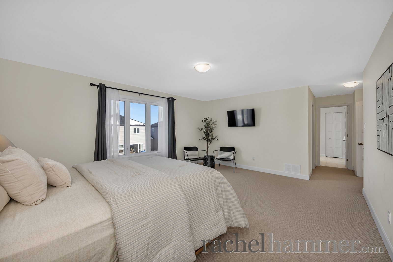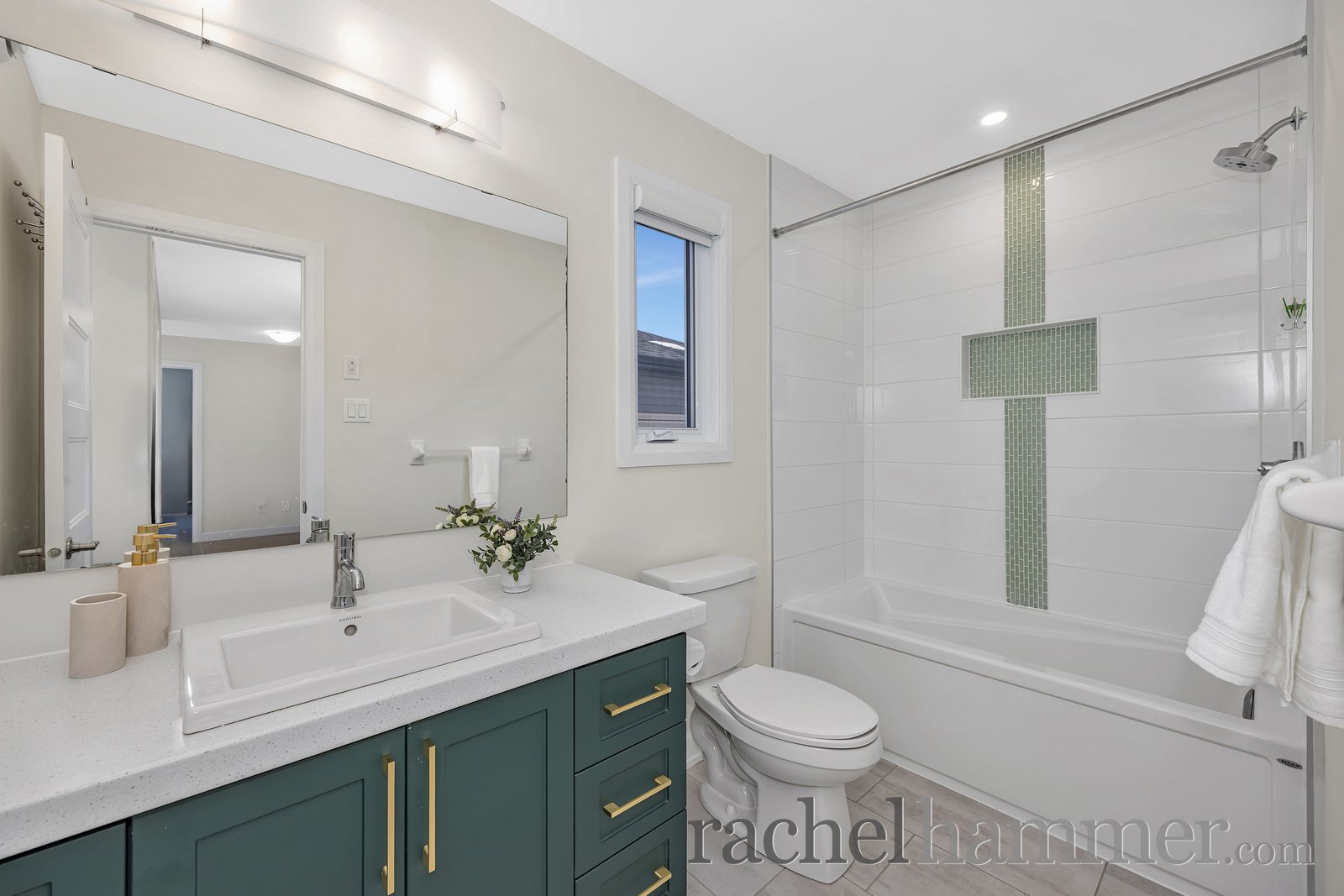 The primary suite is a true retreat, offering larger windows, a generous walk-in closet and a luxurious ensuite with his-and-her sinks, quartz countertops, a glass-enclosed shower, a freestanding soaker tub, and a linen closet.